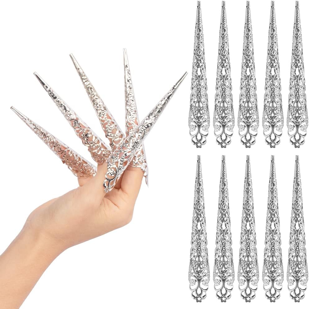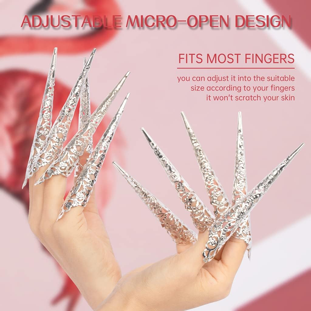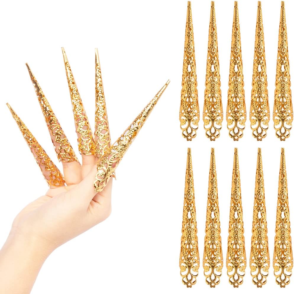 Squisito aspetto delle unghie regina, questo set di anelli per unghie è appositamente progettato come regina nei tempi antichi, lungo per estremità affilata con finitura dorata, molto imponente e attraente tra le persone. Materiale di alta qualità, questi anelli per unghie sono realizzati in materiale di alta qualità, delicati sulla pelle, non sbiaditi, antiruggine e durevoli per un uso prolungato. Si prega di tenerlo lontano dall'acqua quando si indossa o si mette da parte. Meraviglioso regalo decorativo, questo anello per unghie ha un design e un aspetto eleganti, ed è solitamente popolare tra attrici o persone che sono interessate a un ruolo teatrale in costume antico per giocare. Ti renderà più attraente. Può anche essere un bellissimo accessorio nella tua collezione o un bel regalo per la famiglia o gli amici. Adatto per molteplici spettacoli, l'anello per unghie da regina, gli artigli per cosplay sono perfetti per Bodhisattva Guan Yin da mille mani e danza del ventre, ballerina sexy, matrimonio, costumi da regina del palazzo, costumi di Halloween per donne, Natale, ecc. Non cadrà, design regolabile con apertura a micor, è possibile regolarlo in base alle dita, non scartch le dita, leggero.