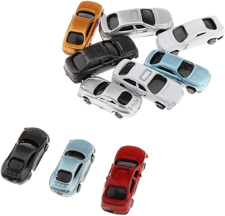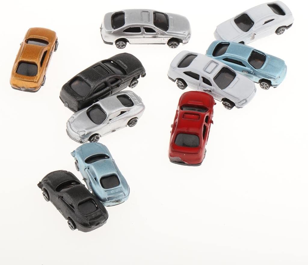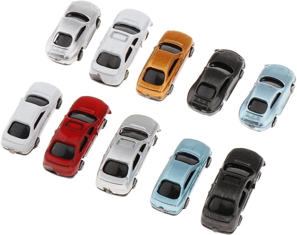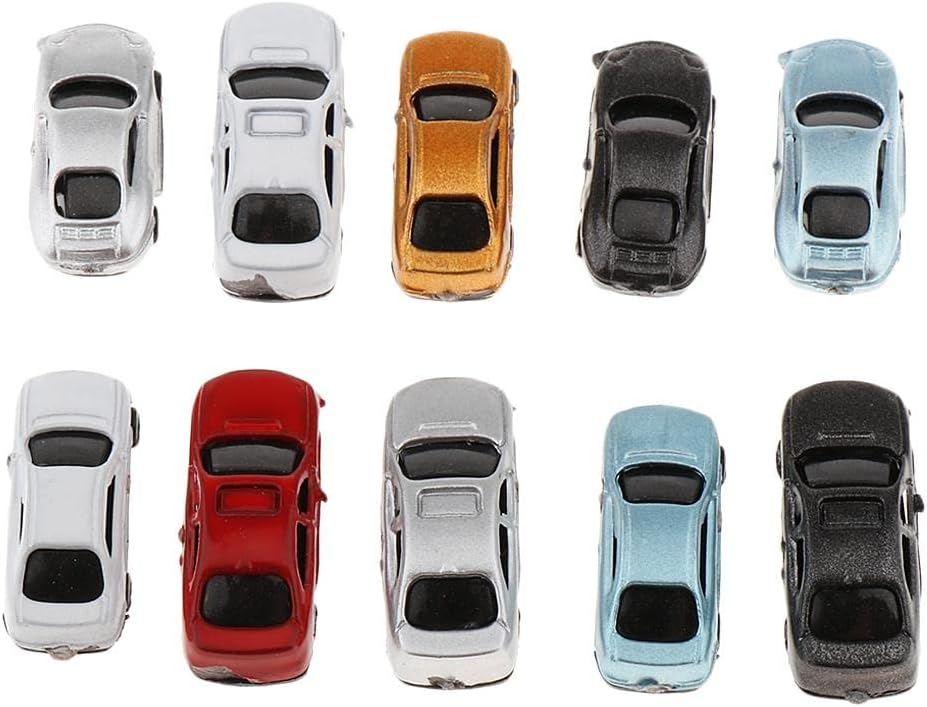 Set di 10 modellini di auto dipinte in scala 1:150 Realizzato in materiale plastico di alta qualità Perfetto per decorare tavoli di sabbia Dimensioni: 1:100 4,7 x 1,8 cm, 1:200 3,1 x 1,3 cm, 1: 150 2,5 x 1 cm Ideale per modellismo, treni e parcheggi