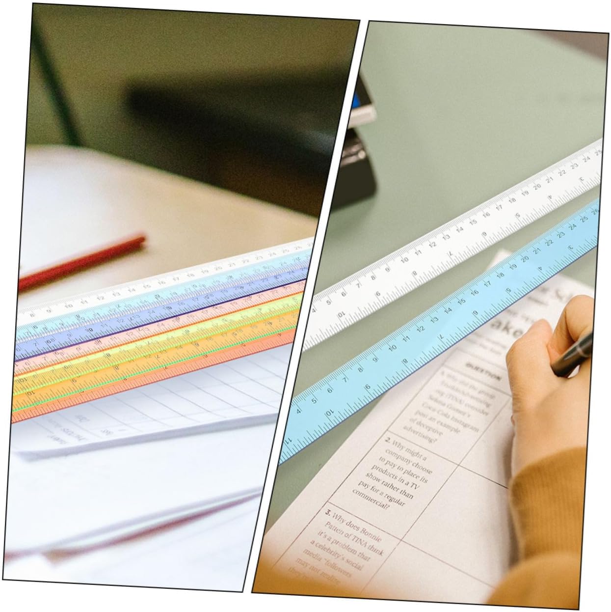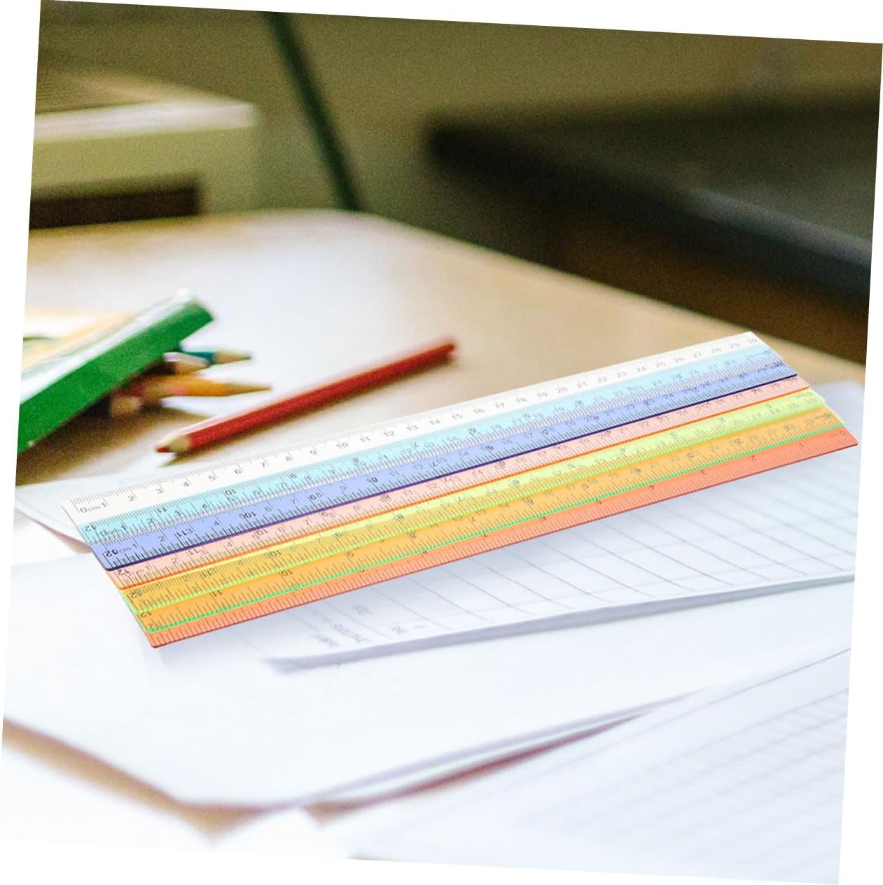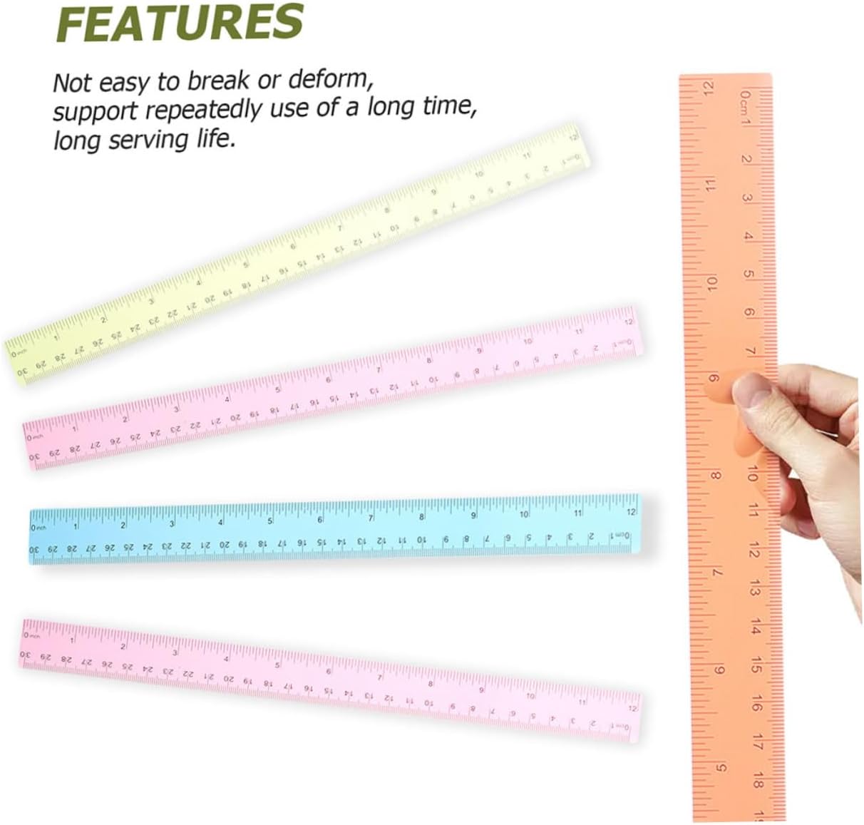 Righelli di misurazione per bambini: questo righello dritto colorato è ottimo per lettori, studenti, scrittori, laureati e così via, righello da disegno Righello per l'aula: il nostro righello colorato è di piccole dimensioni, leggero, non occupa molto spazio ed è facile da trasportare. Righelli multifunzionali creativi per bambini: non solo sono belli da vedere, ma la loro consistenza e il loro peso sono progettati per essere perfetti al tatto, righello di misurazione Righello per diario: il righello di misurazione può aiutare molto i tuoi studenti e renderli più appassionati all'apprendimento, righello multifunzione Righelli dritti multifunzione: realizzati in materiale plastico con lavorazione di alta qualità, per un uso a lungo termine, righelli dritti portatili