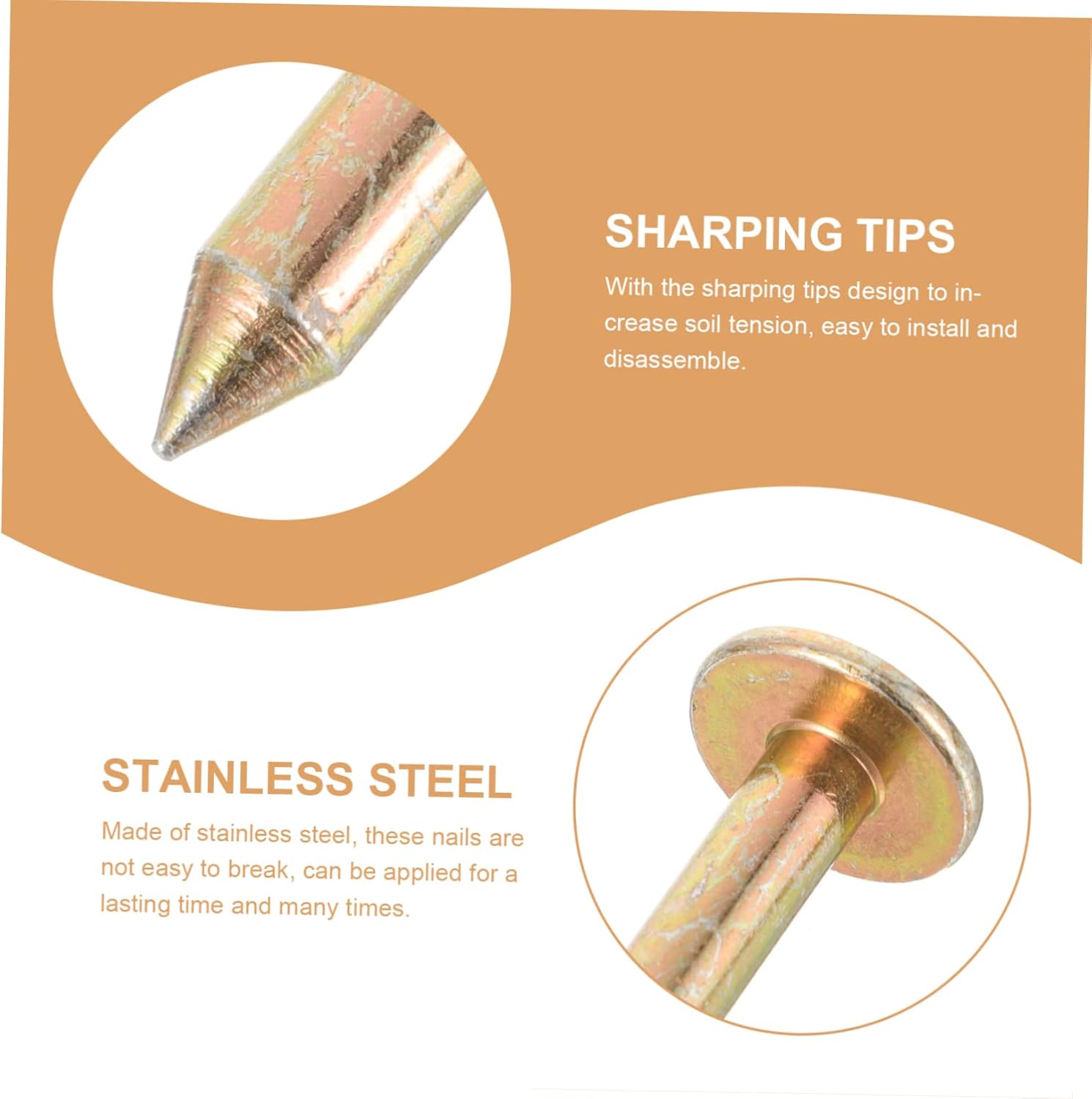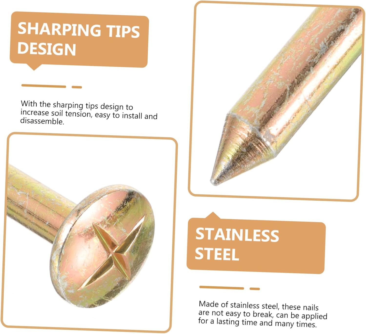 Picchetti per delimitare i confini della proprietà: questi picchetti per delimitare i confini sono comodi e pratici, segnano la tua proprietà in modo uniforme, chiodi in acciaio Picchetto per la marcatura della proprietà: si installa a filo del terreno, può essere facilmente tagliato, camminato, giocato o utilizzato sopra i marcatori per vialetti Picchetti da giardino: la raffinata lavorazione artigianale e i dettagli squisiti dei chiodi ne garantiscono la praticità e la popolarità, picchetto da Chiodi da giardino: realizzati in acciaio inossidabile, questi chiodi non si rompono facilmente, possono essere applicati per un tempo duraturo e più volte, marcatore di confine della proprietà Unghie da paesaggio: caratteristiche e squisite con design professionale, semplice e , linee lisce, picchetto con segni metallici