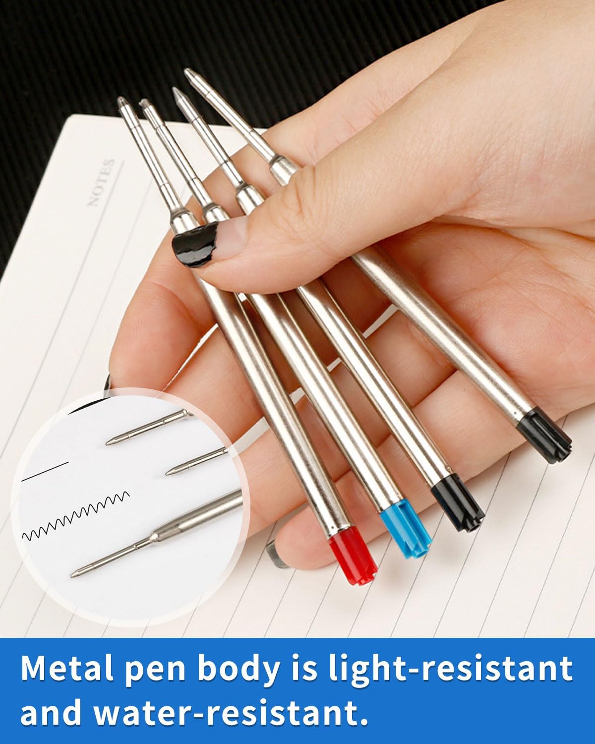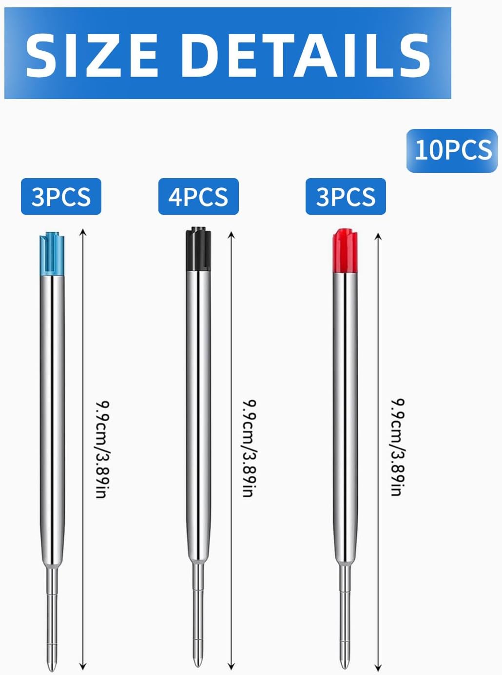 🖊️【Pacchetto】Riceverai 10 ricariche in metallo, 3 blu, 3 rosse e 4 nere in un set. La lunghezza totale della ricarica è di 9,9 cm, il diametro del corpo della penna è di 0,6 cm e la lunghezza della punta è di 2,5 cm. cm, il diametro della punta è 0,1 cm. Le ricariche universali G2 si adattano alla maggior parte delle penne a sfera. 🖊️【Design】La composizione di materiali di alta qualità e un design accurato possono rendere il tuo utilizzo più leggero, più liscio, confortevole e liscio; l'inchiostro ad asciugatura rapida non è facile da macchiare e può mantenere il polso e la carta puliti, permettendoti di scrivere di più comodamente. 🖊️【Materiale】Il guscio di ricarica è realizzato in metallo, resistente alla luce e impermeabile e comodo da tenere; la punta di ricarica è sigillata con cera, che non perde facilmente olio e inchiostro, non rompe l'inchiostro a causa della scrittura e ha una lunga durata. 🖊️ 【Ampiamente usato】 Queste ricariche intercambiabili in metallo sono facili da trasportare e facili da sostituire. Può essere applicato agli scenari più diversi, come prendere appunti, scrivere, diario, schizzi, ecc., adatto a scuola, ufficio, casa. 🖊️【Servizio post-vendita】Se hai domande sul prodotto, non esitare a contattarci e ti forniremo un servizio soddisfacente.