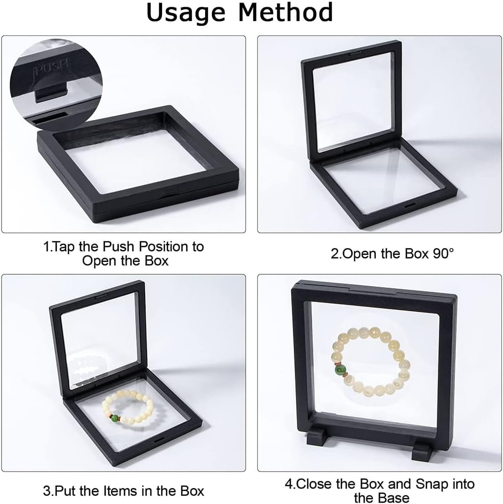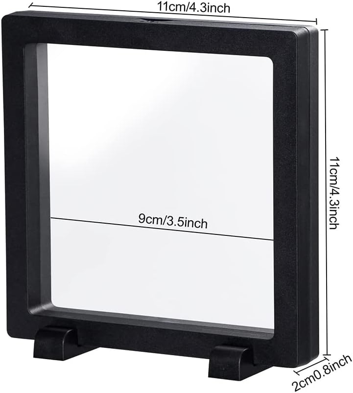 Membrana flessibile: con una membrana flessibile, la nostra vetrina per monete garantisce una vestibilità per monete, anelli, orecchini, conchiglie, ecc. Dimensioni perfette: la cornice della misura 4,3x4,3x0,8 pollici e l'area di visualizzazione è 3,8x 3,8 pollici, per la visualizzazione di monete, medaglie e campioni. Mostra il tuo articolo: questo è un buon metodo per mostrare piccoli oggetti. L'oggetto in questa cornice fluttuante 3D sembra fluttuare nell'aria. E puoi vederne tutti i lati. Riutilizzabile: design con membrana in PE, il display con cornice per monete è riutilizzabile. Puoi soffiare le membrane con un asciugacapelli. Quindi verrà ripristinato come . Ampia applicazione: le cornici del display con clip temporale non solo possono mostrare il tuo ricordo e i tuoi gioielli, ma anche preservare un esemplare di animale o un esemplare di pianta dallo schiacciamento.
