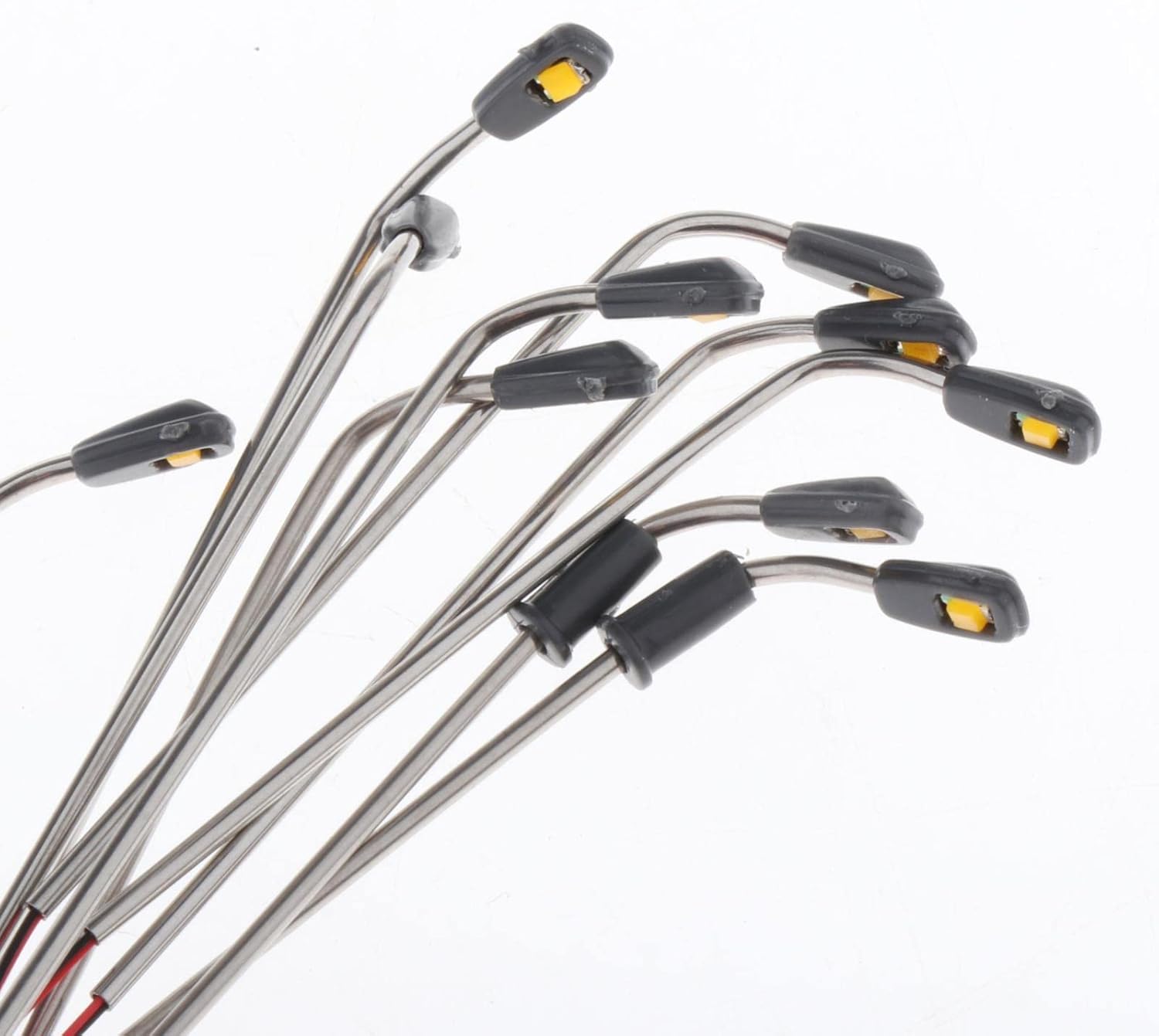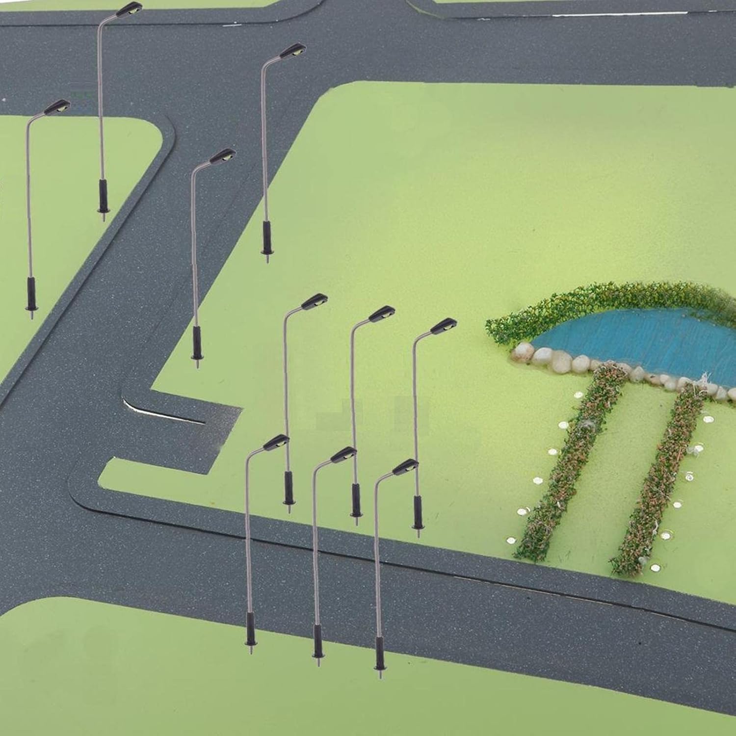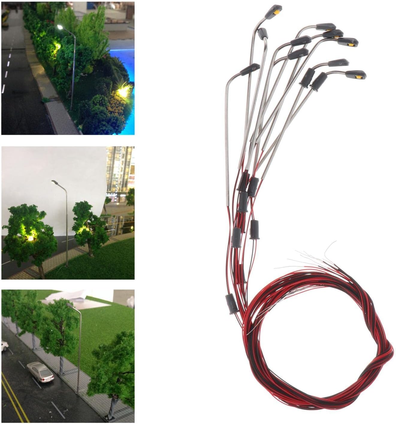 Confezione da 10 modellini ferroviari in scala 1:100, 1:500 o 1:200, lampioni da giardino in miniatura, lampioni stradali a LED. Emissione del colore: luci bianche calde; Voltaggio: 3V. Perfetto per mini giardino fatato, modello architettonico, decorazioni paesaggistiche in miniatura fai-da-te. I migliori regali per l'arredamento del tuo modello. Adatto per kit paesaggistici ferroviari in scala HO/TT/N.