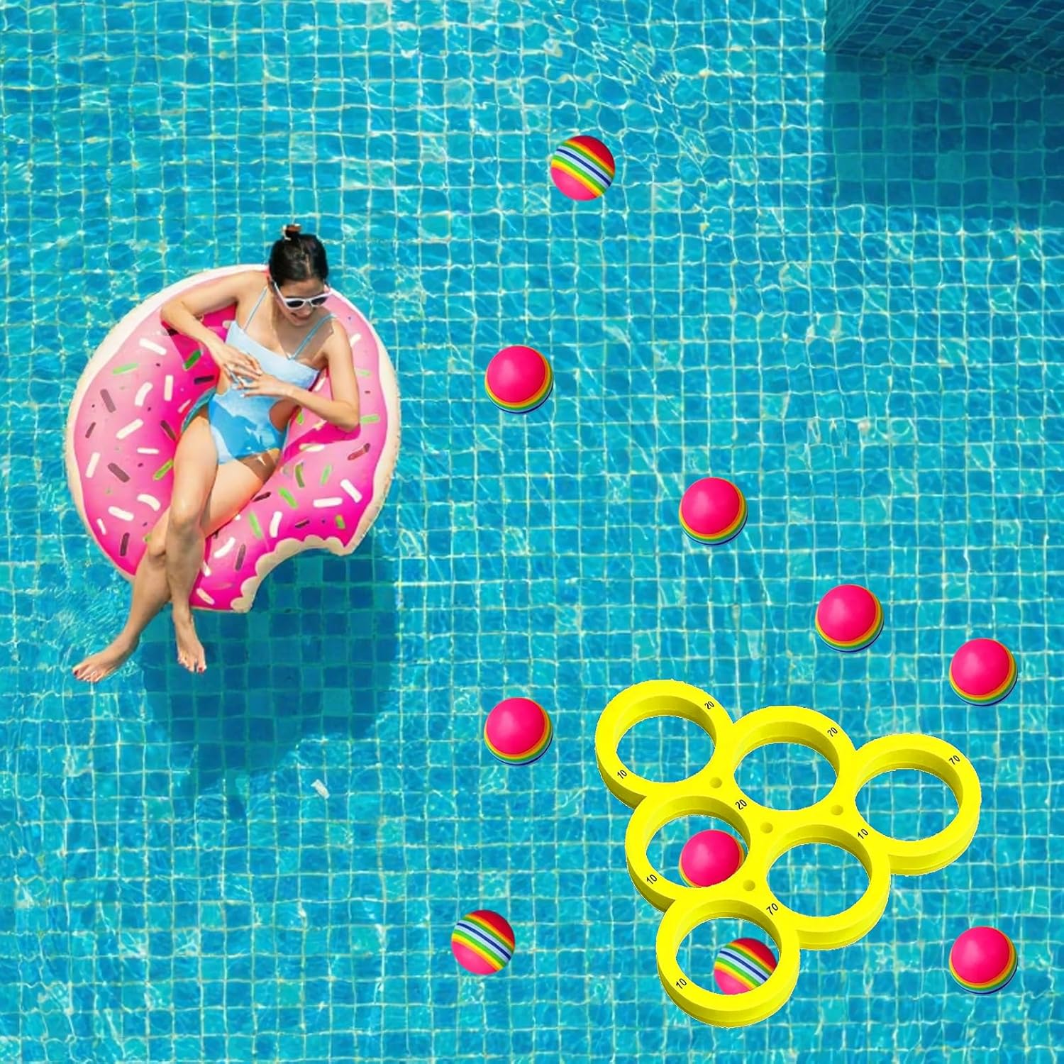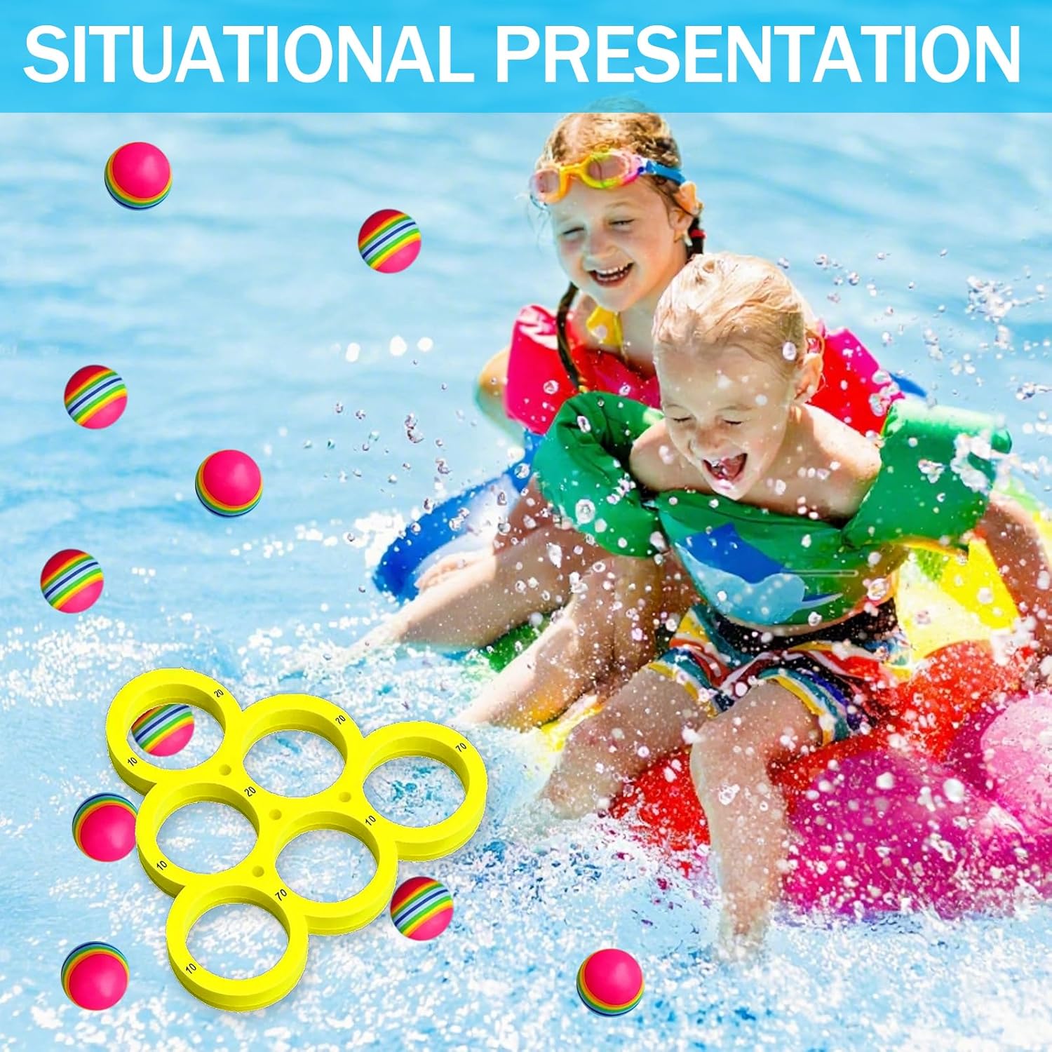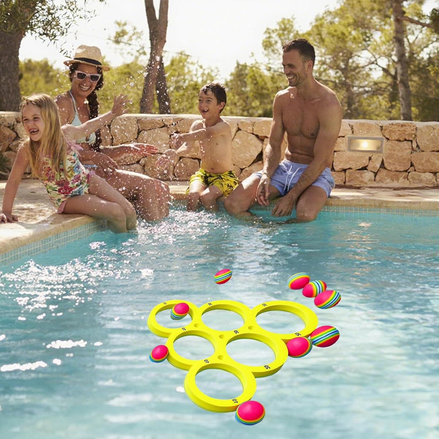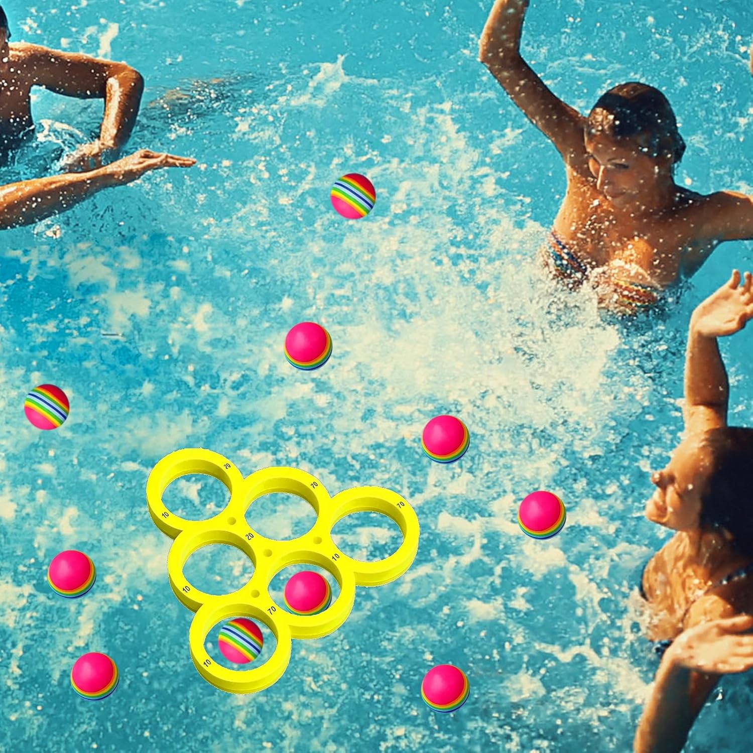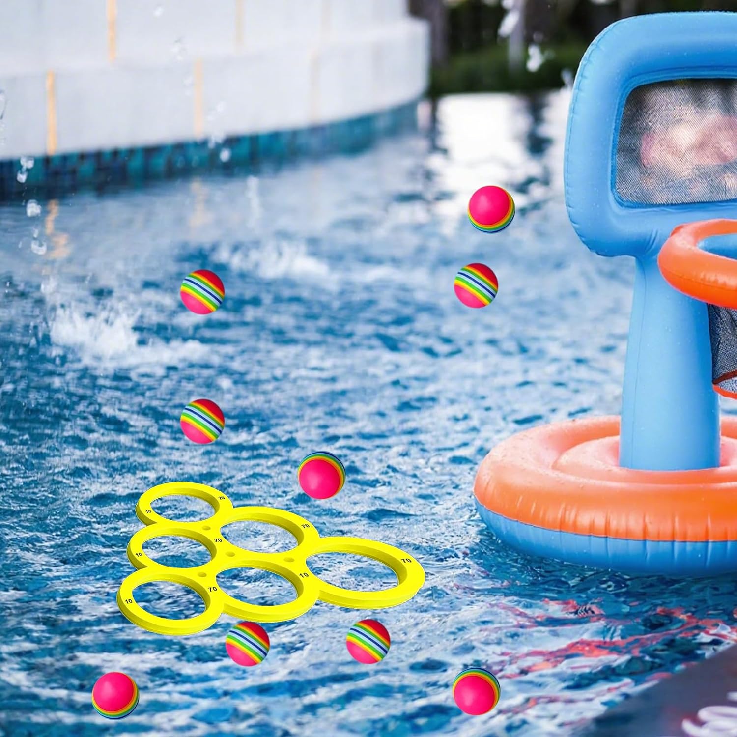 Set completo per un divertimento versatile: include 1 bersaglio rotondo galleggiante e 10 palline arcobaleno in EVA colorate; ideale per bambini dai 6 anni in su e adulti per giocare insieme in acqua e allenare la coordinazione occhio-mano Materiale di alta qualità per un piacere duraturo: le palline sono realizzate in robusta schiuma EVA, galleggiante e resistente all'acqua e ai raggi UV; il bersaglio fornisce una superficie di gioco stabile per lanci precisi e raccolta di punti Perfetto per diverse attività: in piscina, in spiaggia o nei campi estivi, questo gioco di lancio garantisce ore divertenti; regole semplici consentono una rapida comprensione del gioco e lo rendono il punto forte di qualsiasi festa in piscina o festa in famiglia Sicurezza e comfort in primo piano: tutti i componenti sono leggeri e morbidi per evitare lesioni; le palline antiscivolo sono facili da tenere in mano e sono adatte anche per lunghe stagioni senza fatica Incoraggia la convivenza sociale e l'esercizio fisico: il gioco incoraggia l'interazione e la competizione amichevole; è un ottimo modo per portare i bambini lontano dagli schermi e motivarli a giocare all'aperto attivo
