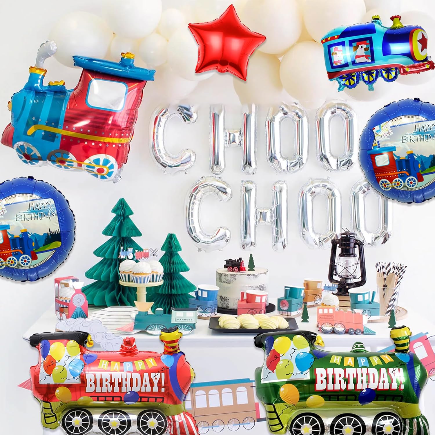 Decorazione compleanno treno: riceverai 4 palloncini Happy Birthday, 2 palloncini foil rotondi, palloncini foil a 2 stelle (blu e rossi), 2 palloncini foil a cuore (blu e rossi), 1 mini palloncino. Disegni carini: ogni palloncino è progettato con amore per incoraggiare l'entusiasmo per i treni e festeggiare un compleanno. Colori vivaci e motivi giocosi creano un ambiente accogliente per i piccoli ospiti. Meravigliose opportunità fotografiche: usa gli elementi decorativi come sfondo per le foto. I disegni colorati e i dettagli curati forniscono lo sfondo perfetto per foto ricordo indimenticabili che tu e i tuoi ospiti apprezzerete a lungo. Facilità di montaggio: gli elementi decorativi sono facili da montare e possono essere rapidamente incorporati nella tua festa. I palloncini possono essere facilmente riempiti con aria o elio, quindi puoi disporli come preferisci e il design viene realizzato secondo i tuoi gusti. Selezione di palloncini: il set comprende 11 diversi palloncini foil, inclusi palloncini rossi, blu e verdi, che riflettono perfettamente il tema del treno. Questa diversità crea un'atmosfera gioiosa e festosa.