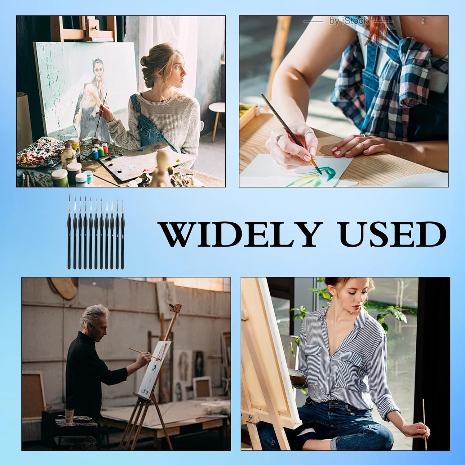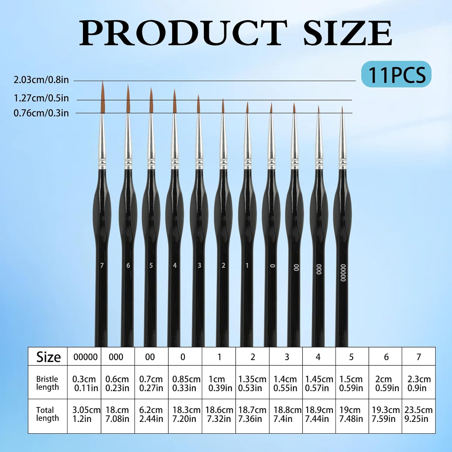 Molteplici applicazioni: questo set di 11 pennelli numerati consente di creare dettagli precisi su diversi supporti come acquerello, acrilico, tempera, pittura ad olio o inchiostro. Pennello da pittura fine ideale per miniature, modelli in scala, figurine, unghie e progetti artistici dettagliati. Varietà di dimensioni: i pennelli fini sono disponibili in 11 diverse dimensioni, identificate da numeri incisi su ciascun manico. Pennelli da pittura, questa scelta variegata ti consente di lavorare facilmente su linee sottili, contorni delicati o superfici più grandi a seconda delle tue esigenze creative. Setole in nylon morbide: ogni pennello fine ha setole in nylon flessibili e resistenti, che garantiscono una buona ritenzione dei pigmenti. I pennelli professionali permettono un contorno fluido e preciso senza dispersione di peli, garantendo un risultato omogeneo per ogni tuo lavoro artistico. Manici ergonomici in legno: i manici di queste spazzole professionali sono realizzati in legno leggero con finitura opaca, garantendo un'ottima presa. Pennelli da modellare la loro forma conica si adatta alla postura della mano, riducendo l'affaticamento e facilitandone l'uso prolungato. Ideale per modellismo e hobby creativi: questi pennelli per modellare sono adatti sia per artisti esperti che per principianti. I pennelli acrilici, la loro precisione, li rendono la scelta perfetta per dipingere figurine, modelli, unghie e progetti creativi di hobby. Possono essere utilizzati come pennelli per acrilico o acquerello.