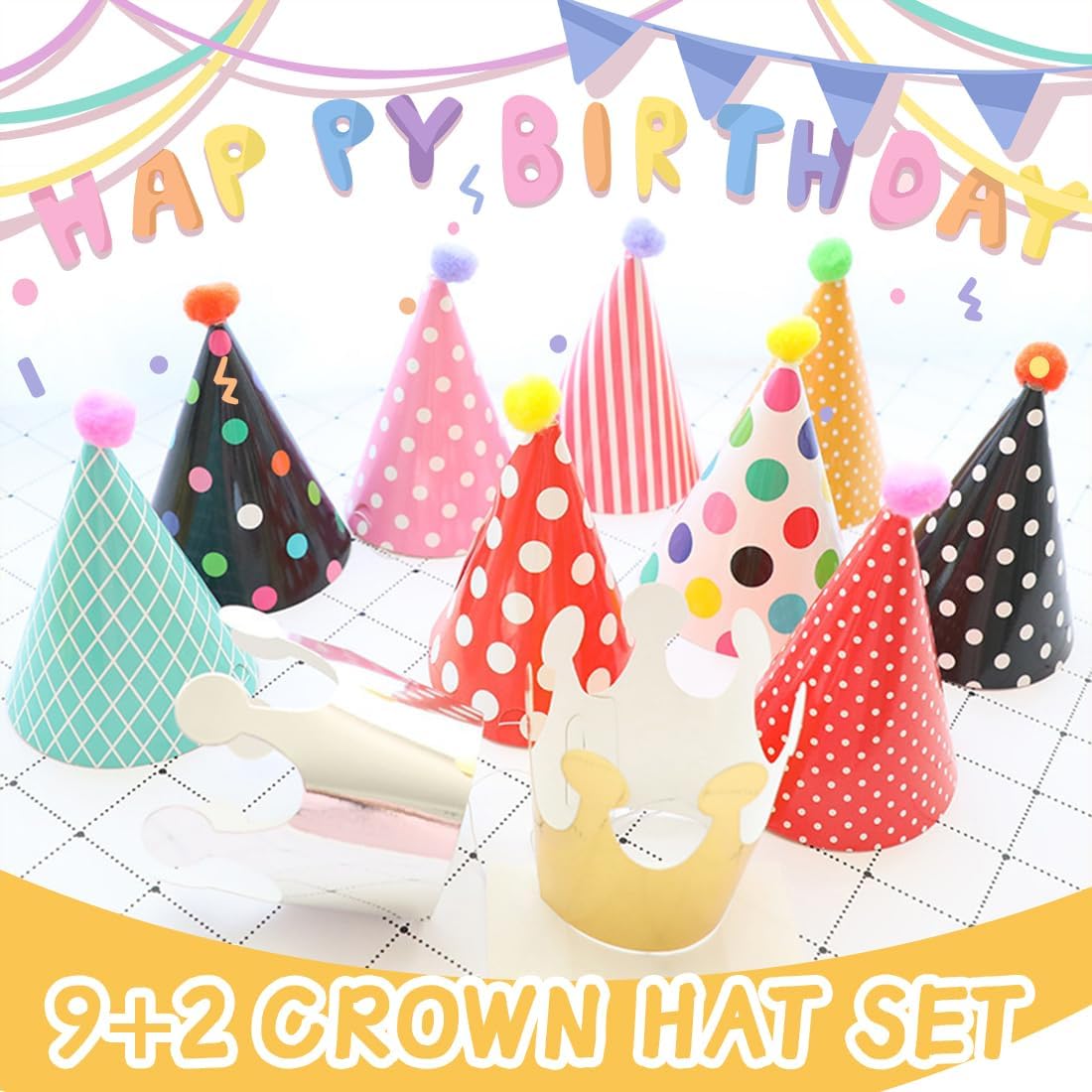 【CONTENUTO DELLA CONFEZIONE】: 12 decorazioni per feste in totale. Include 11 cappellini a forma di cono e un paio di occhiali da compleanno. 【MATERIALI DI ALTA QUALITÀ】: Realizzati in carta morbida e atossica, garantiscono comfort e sicurezza ai bambini durante l'uso. 【DESIGN PRATICO】: Struttura robusta con colori vivaci, dotata di elastici regolabili per adattarsi alla maggior parte delle taglie di testa dei bambini. 【CREATIVITÀ】: I colori vivaci creano un'atmosfera allegra, aumentando il divertimento dei bambini. I cappellini da festa sono dotati di palline decorative sulla sommità per una facile personalizzazione fai da te. 【OCCASIONI VERSATILI】: Adatti per compleanni di bambini e bambine o feste per adulti. Ideali anche per decorazioni di matrimoni, accessori per foto di neonati, feste di fine anno e altri eventi. Aggiungi colore e allegria ai tuoi incontri, abbracciando momenti di festa vivaci.