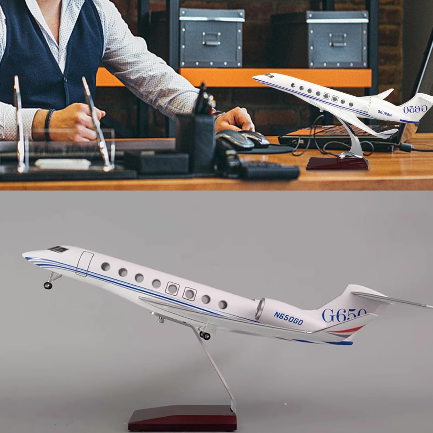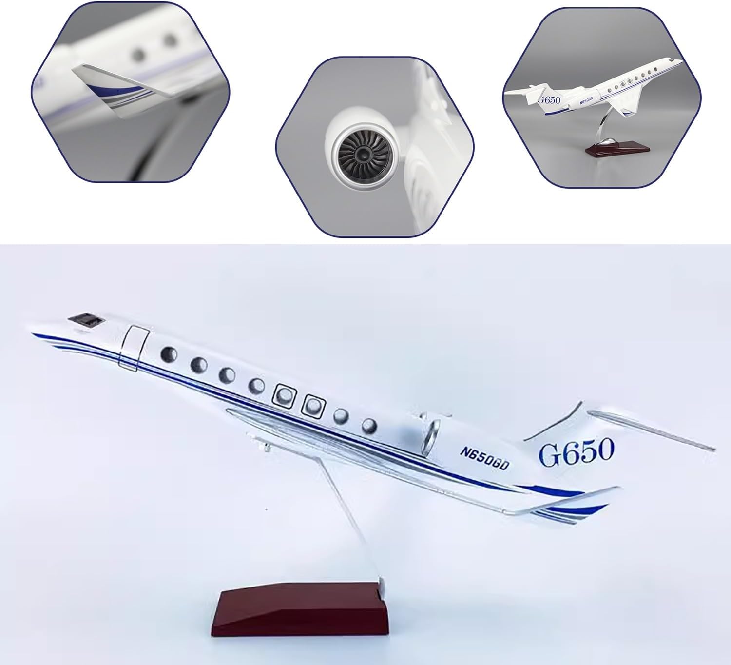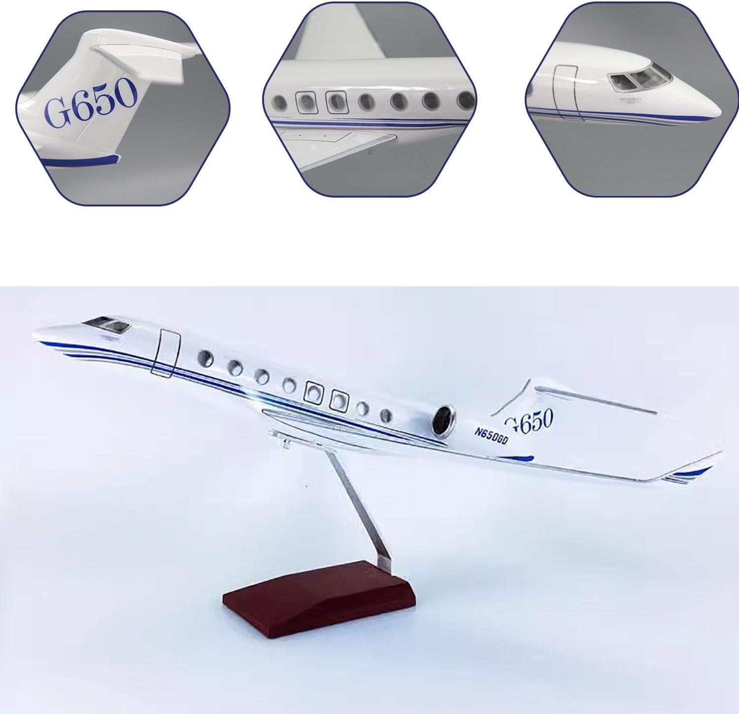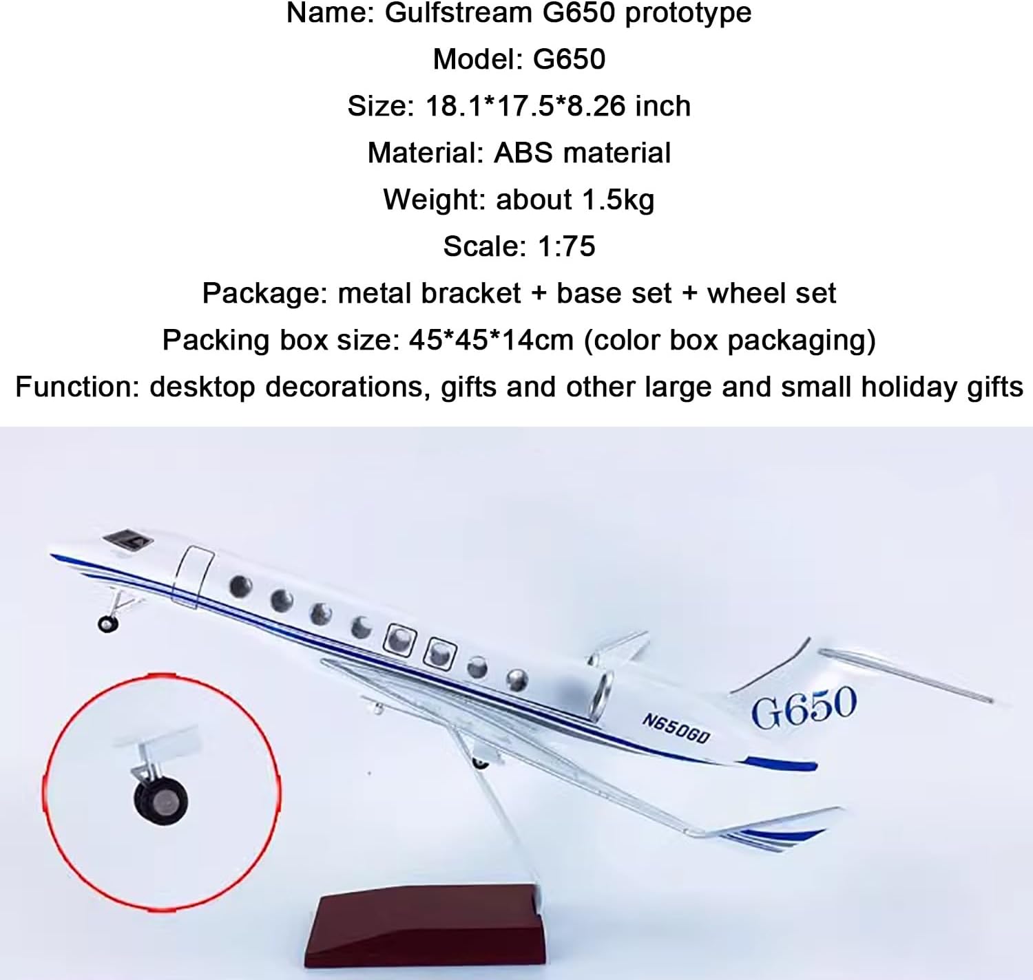 [Modellino di aereo in scala] Aeromodello Gulfstream G650 da 12 pollici in scala 1:100, 12 x 11,5 x 7,48 pollici. [Design semplice a scatto] Il modello Gulfstream g650 è facile da installare in tre passaggi. Puoi esporre un modello migliore allo stand. Il modello di visualizzazione statica è completamente ridotto al modello originale, con elevata simulazione. [Materiali dettagliati di alta qualità] Il modello di aereo Gulfstream utilizza fusoliera, base e staffe metalliche di alta qualità. Dalla scheda motore ai dettagli della verniciatura, i dettagli sono meticolosi. Il modello generale dell'aereo è molto aerodinamico. Il modello dell'aereo ha 16 finestrini ben visibili. [Conoscenza dell'aeromodello G650] L'aeromodello Gulfstream G650 è un aereo d'affari sviluppato negli Stati Uniti. È l'aereo più veloce dell'aviazione civile dopo il Concorde. Ha la cabina di pilotaggio più grande della sua categoria. [Regali da collezione] I modellini di aeroplani sono dotati di basi pronte for l'esposizione, bellissime decorazioni e oggetti da collezione for uffici, case e sono il regalo perfetto for gli appassionati di aviazione o i collezionisti.