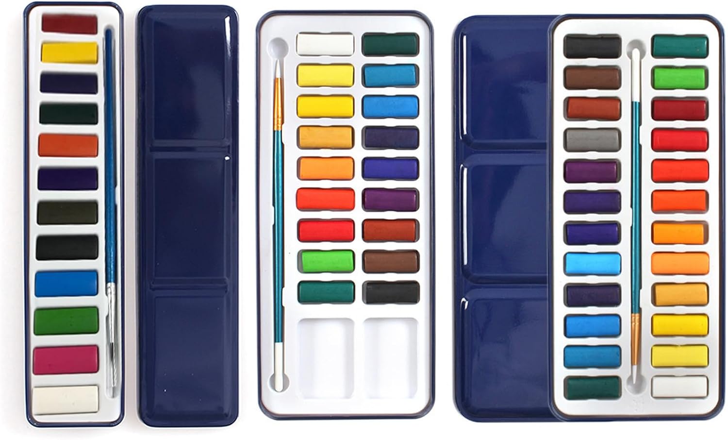 pigmenti solidi acquerello, non tossici e sicuri, molto festivi, compleanni, per studenti, principianti. Molto adatto per incoraggiare la passione dei bambini all'arte e 12 18 o 24 colori vivaci, la vernice ad acquerello ha un alto grado di colorazione, più brillante sotto una forte luce. Sia sulla carta bianca/nera, è molto piena di colore e fornisce un effetto brillante brillante La vernice solida è stata macinata finemente, solubilità rapida in acqua, grande diffusione, colore uniformemente miscelato, elevata resistenza alla luce e alta saturazione. Può essere facilmente miscelato con altri colori per effetti unici Questi acquerelli solidi professionali sono adatti a tutti i pittori, principianti, artisti, studenti e bambini che dipingono su carta, tessuto, legno, pietra, artigianato. Grande aiuto per aggiungere e brillare le loro opere d'arte Tutto ben organizzato in una custodia in metallo. Compatto e portatile. La sua consistenza liscia si asciuga in grassetto, funziona alla grande con penne a pennello e spugne per diversi effetti sorprendenti