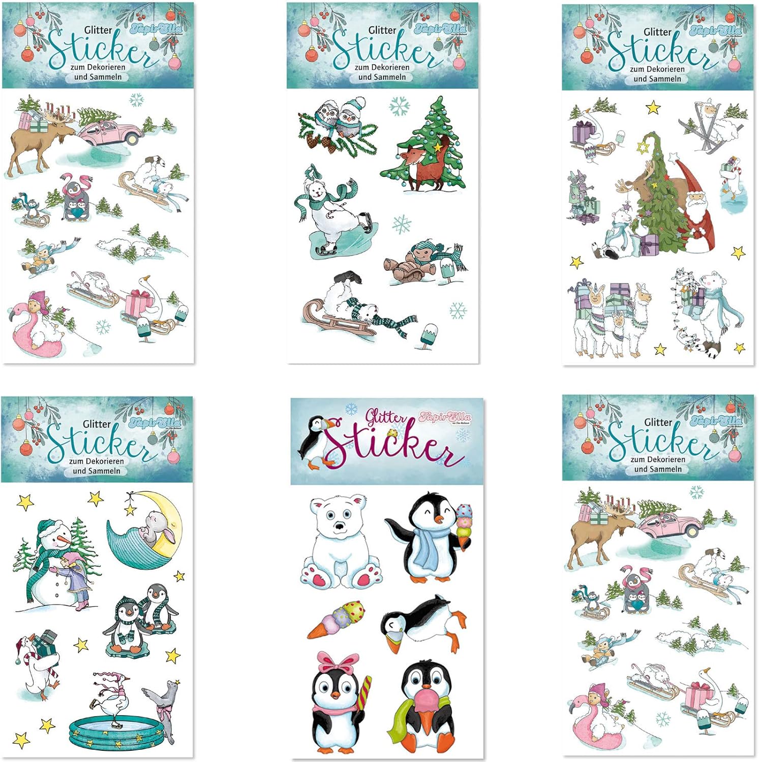 Adesivi glitter colorati, divertenti e scintillanti per bambini della Lutz-Mauder-Verlag (come mostrato nella prima immagine sopra) Divertenti adesivi glitter da collezionare, creare, progettare e ideali per. B. come piccolo regalo per il calendario di Natale Autoadesivo, parzialmente glitterato, fustellato, facile da incollare, rimovibile in qualsiasi momento Quantità: 1 foglio (dimensione: ca. 5,6 x 10,5 cm) con 12 adesivi confezionati in pellicola Ci sono molti altri adesivi glitterati di questa serie.