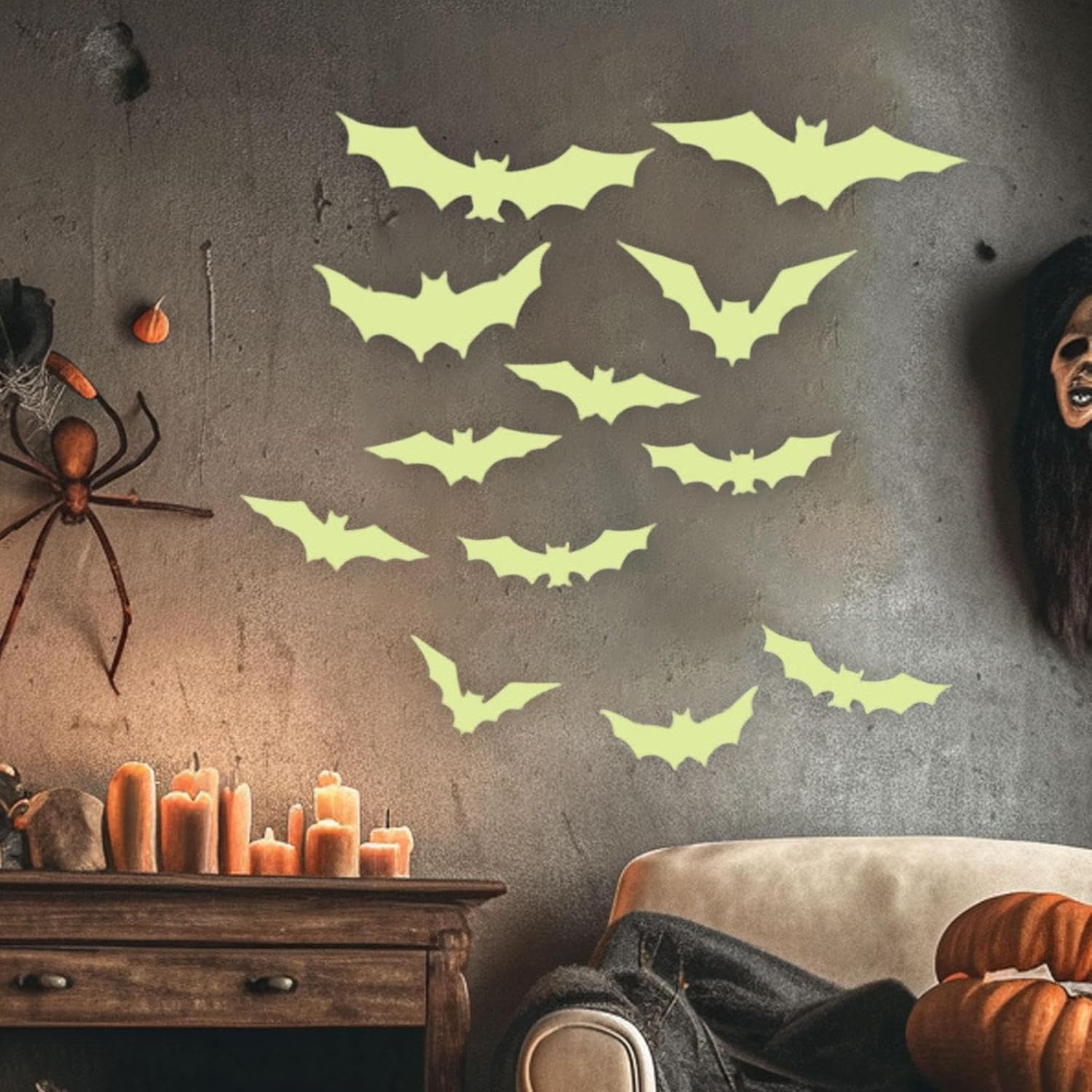【Effetto spaventoso che si illumina al buio】: questo set completo include 12 adesivi murali pipistrelli verdi di Halloween che assorbono la luce durante il giorno ed emettono un inquietante bagliore fluorescente di notte, regalandoti decorazioni sufficienti per le tue celebrazioni di Halloween. Questo set da 12 pezzi include mazze che misurano 8 cm x 3,5 cm (3,15" x 1,38"), 16 cm x 4,5 cm (6,30" x 1,77"), 12 cm x 5,3 cm (4,72" x 2,09"), 12 cm x 6,1 cm (4,72" x 2,40"), 10 cm x 2,8 cm (3,94" x 1,10") e 8 cm x 4 cm (3,15" x 1,57"). 【Decorazione fai da te senza sforzo】Staccare la pellicola adesiva e disporre gli adesivi murali in qualsiasi combinazione su una superficie pulita e asciutta. Per un look diverso, puoi anche infilarli con lo spago per creare una ghirlanda spettrale o uno striscione per opzioni di decorazione più versatili. 【Versatile per ogni occasione spettrale】: libera la tua creatività su pareti, finestre, caminetti, porte, soffitti, armadi e librerie. Questi adesivi murali di Halloween in PET di alta qualità con pipistrelli luminosi sono la scelta ideale per case infestate, feste di Halloween e aree interne ed esterne per completare la tua decorazione festiva.