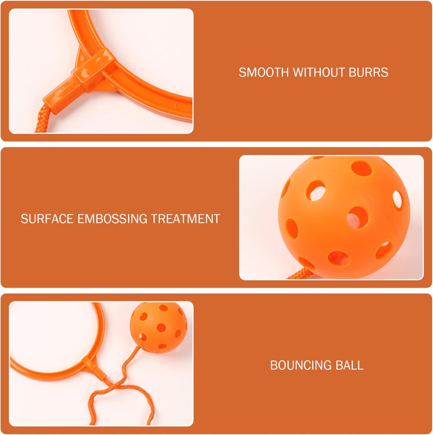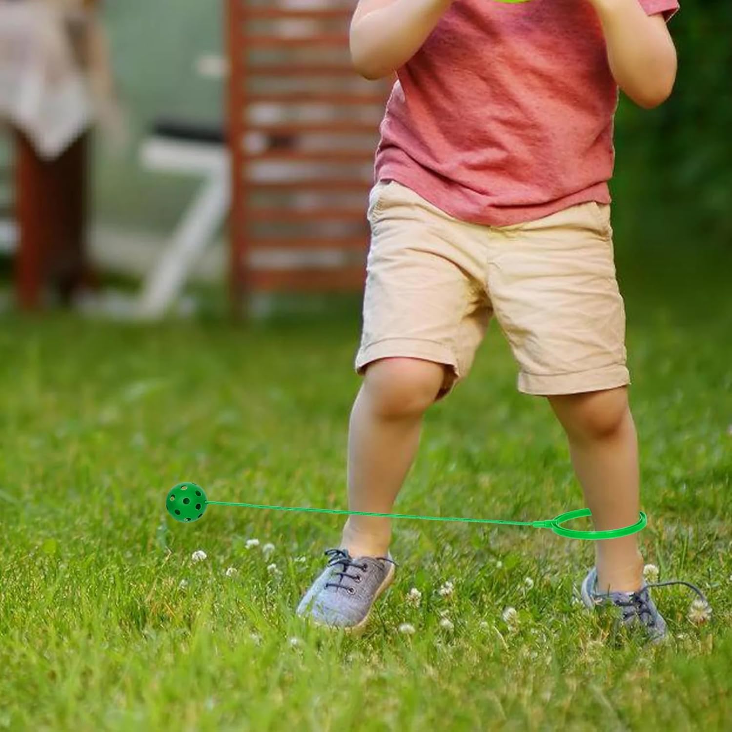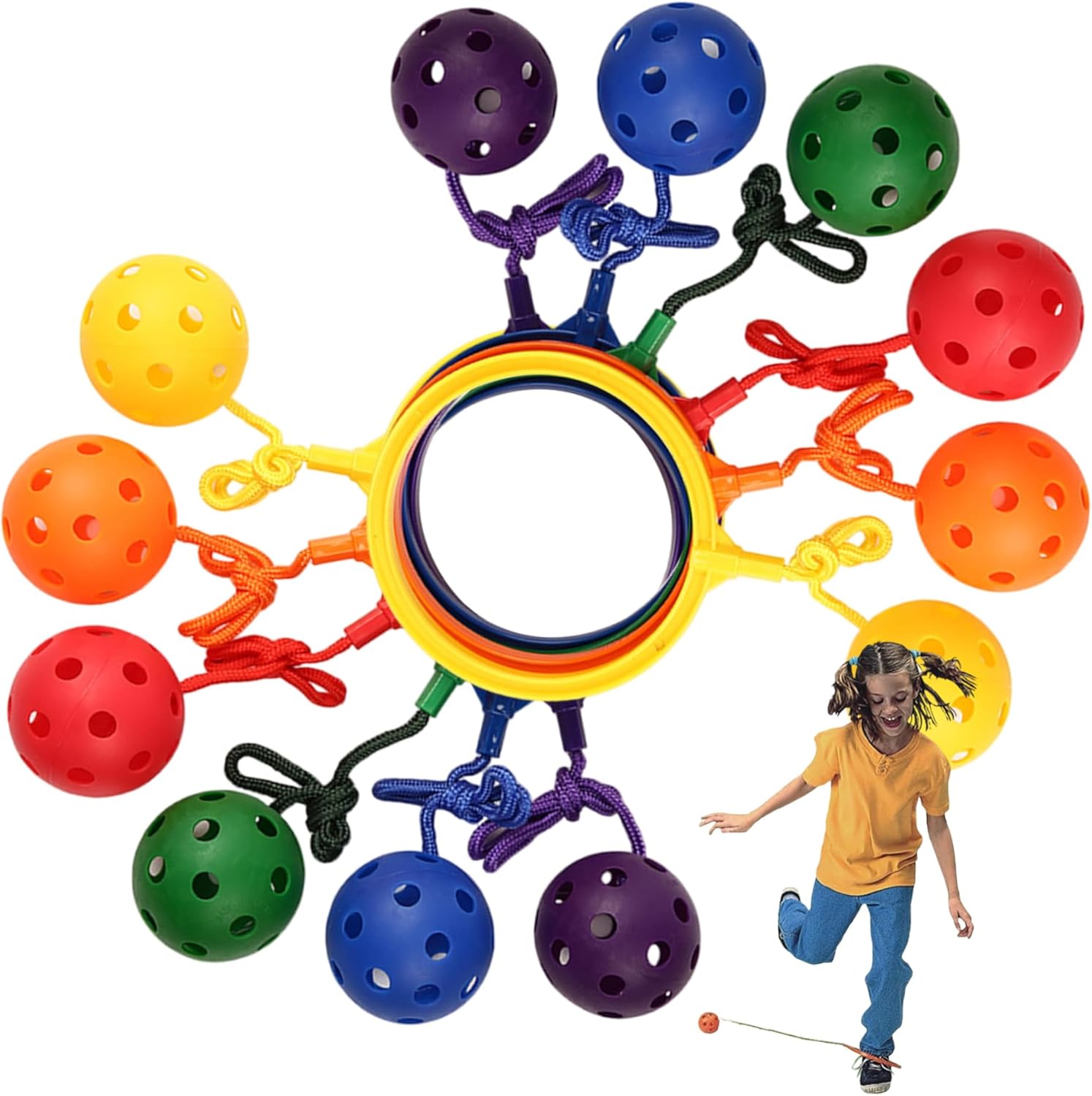 Facile da usare: con un design semplice, è facile da giocare..Basta far scivolare il piede attraverso l'anello e far oscillare la palla con filo con un movimento circolare attorno alla caviglia per saltare..Non è richiesta alcuna configurazione complessa! Adatto a tutte le età: che tu sia alle elementari o ad un adulto, questa palla da salto è perfetta per chiunque abbia più di 6 anni. È l'attività perfetta per tutti i livelli di fitness. Migliora la coordinazione: questo giocattolo con palla ad anello da salto è eccellente per sviluppare una migliore coordinazione e capacità motorie..Aiuta i giocatori a perfezionare i propri movimenti, rendendolo un ottimo strumento per lo sviluppo fisico. Materiale sicuro: realizzata con materiali sicuri per i bambini, la palla per saltare la caviglia garantisce sicurezza durante il gioco..Il design robusto consente ai bambini di saltare, saltare e giocare senza il rischio di lesioni. Palla sportiva fitness: questa palla per saltare alla caviglia non è solo un giocattolo divertente;.è anche un allenamento cardiovascolare!.Saltando e saltando, ti impegni in esercizi per tutto il corpo, migliorando la resistenza e l'equilibrio.