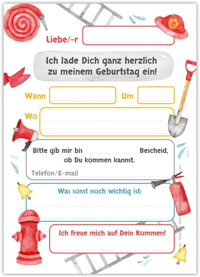 Contenuto: 12 fantastici biglietti di invito + 12 buste Pratico: campi prestampati per tutte le informazioni importanti da compilare sul retro. Dimensioni: il biglietto (10,50 cm x 14,80 cm) ha una stampa fotografica di 300 g/m ed è rivestito con vernice UV. La busta (11,40 cm x 16,20 cm) è dotata di chiusura adesiva (con striscia adesiva). Prodotti in Germania: i biglietti e le buste sono stati prodotti in una tipografia tedesca. Altro: da noi troverete anche molti altri motivi, ad esempio cantiere, ballerina, sirena.