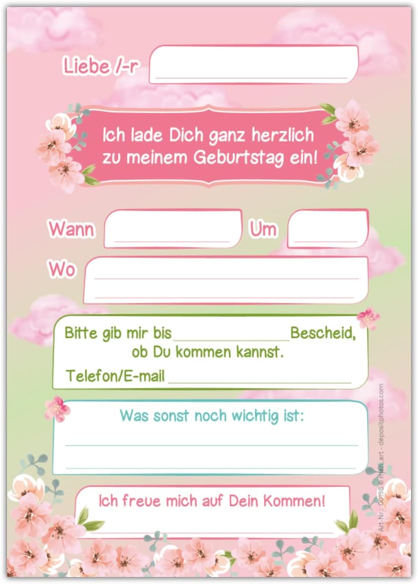 Contenuto: 12 biglietti d'invito e 12 buste Pratico: campi prestampati per tutte le informazioni importanti da compilare sul retro. Dimensioni: il biglietto (10,50 cm x 14,80 cm) ha una stampa fotografica di 300 g/m ed è rivestito con vernice UV. La busta (11,40 cm x 16,20 cm) è autoadesiva (con striscia adesiva). Prodotti in Germania: i biglietti e le buste sono stati prodotti in una fabbrica di stampa tedesca. Altri: da noi troverete anche molti altri motivi, come calcio, ballerina, sirena.