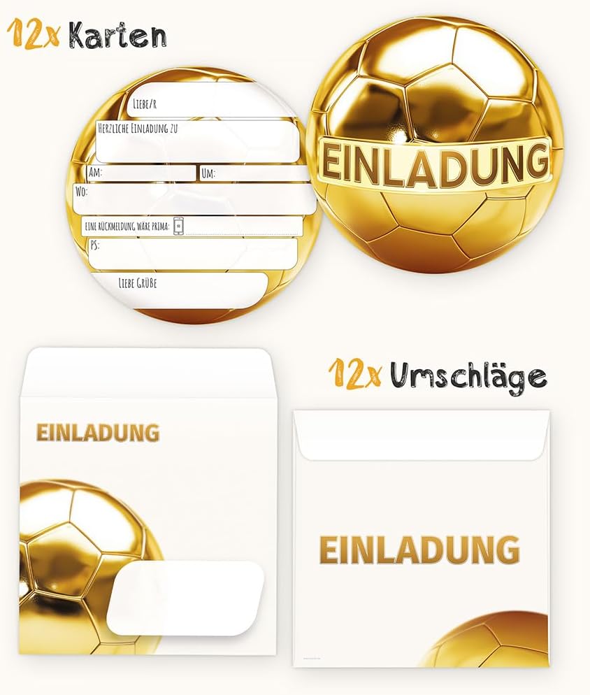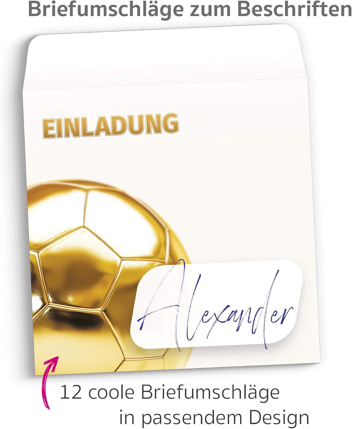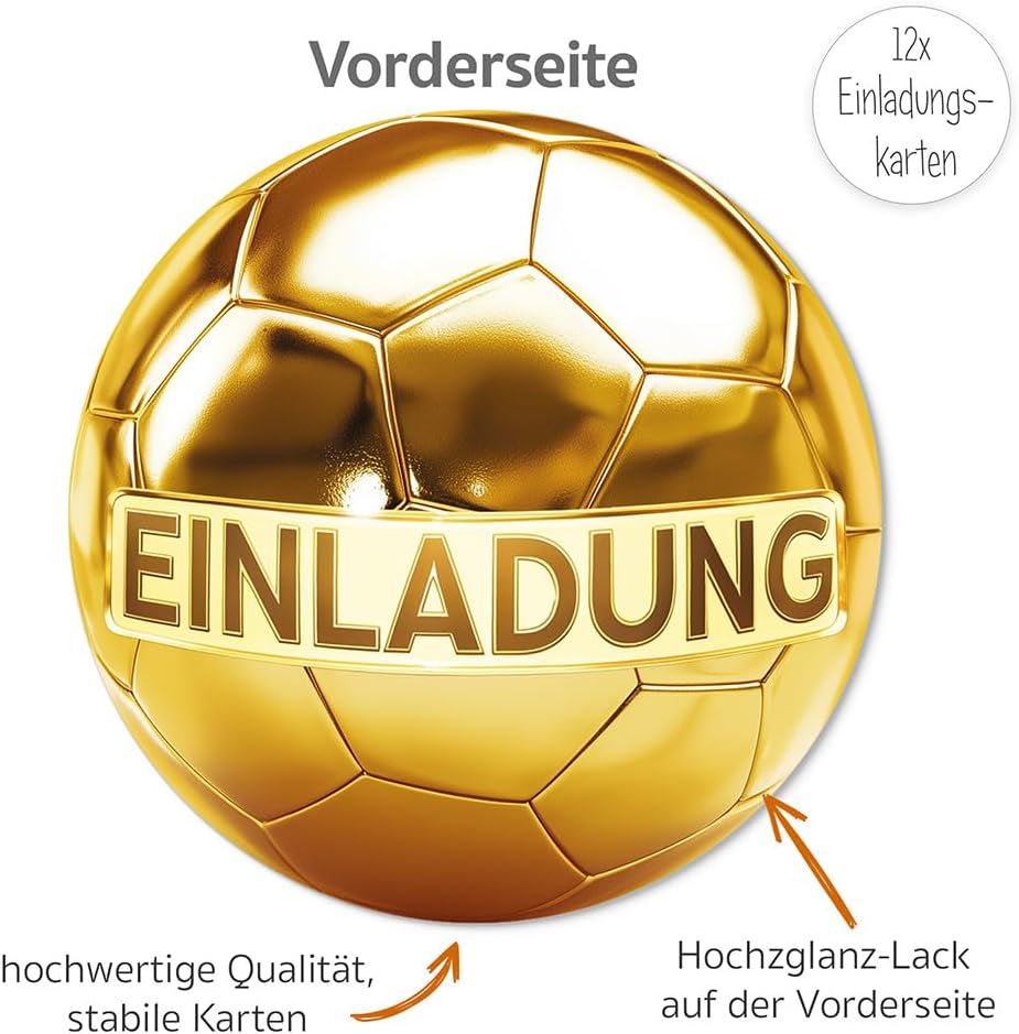 Motivo unico: il bellissimo motivo degli inviti attira subito l'attenzione. Progettato con amore con un motivo a calcio. Adatto sia per ragazze che per ragazzi, bambini e adolescenti o adulti. Prodotto in Germania: i set di biglietti sono prodotti in Germania e confezionati e lavorati con amore nella nostra piccola azienda a conduzione familiare nella Foresta Nera. Buste abbinate: sono incluse 12 belle buste stampate. Questi sono autoadesivi, basta staccare la striscia adesiva e chiudere le buste molto facilmente. Molto ben scrivibile: i biglietti sono molto scrivibili sul retro. I biglietti d'invito sono realizzati in carta di alta qualità da 300 g/m² e sono rifiniti con vernice lucida sulla parte anteriore. Dimensioni ottimali: i 12 biglietti d'invito hanno un formato rotondo (diametro 14 cm) sono maneggevoli, offrono spazio sufficiente per tutte le informazioni importanti e possono essere distribuiti bene in kita, asilo, scuola, club, famiglia o ad amici e fidanzate. Versatile: grazie al loro design neutro, i biglietti sono adatti per un compleanno, una festa di compleanno per bambini, feste a tema, pigiama party, feste di compleanno, feste di compleanno o altre feste.
