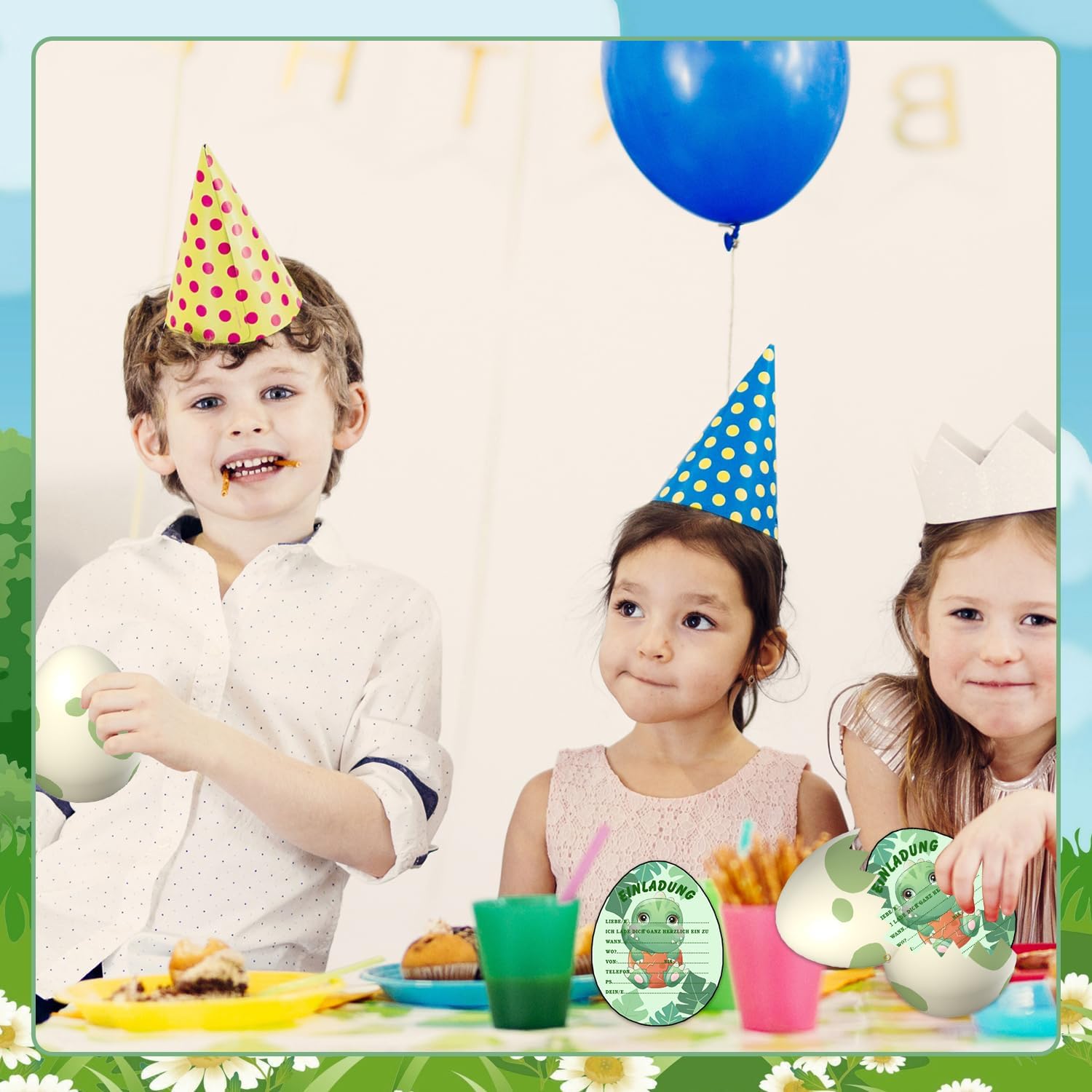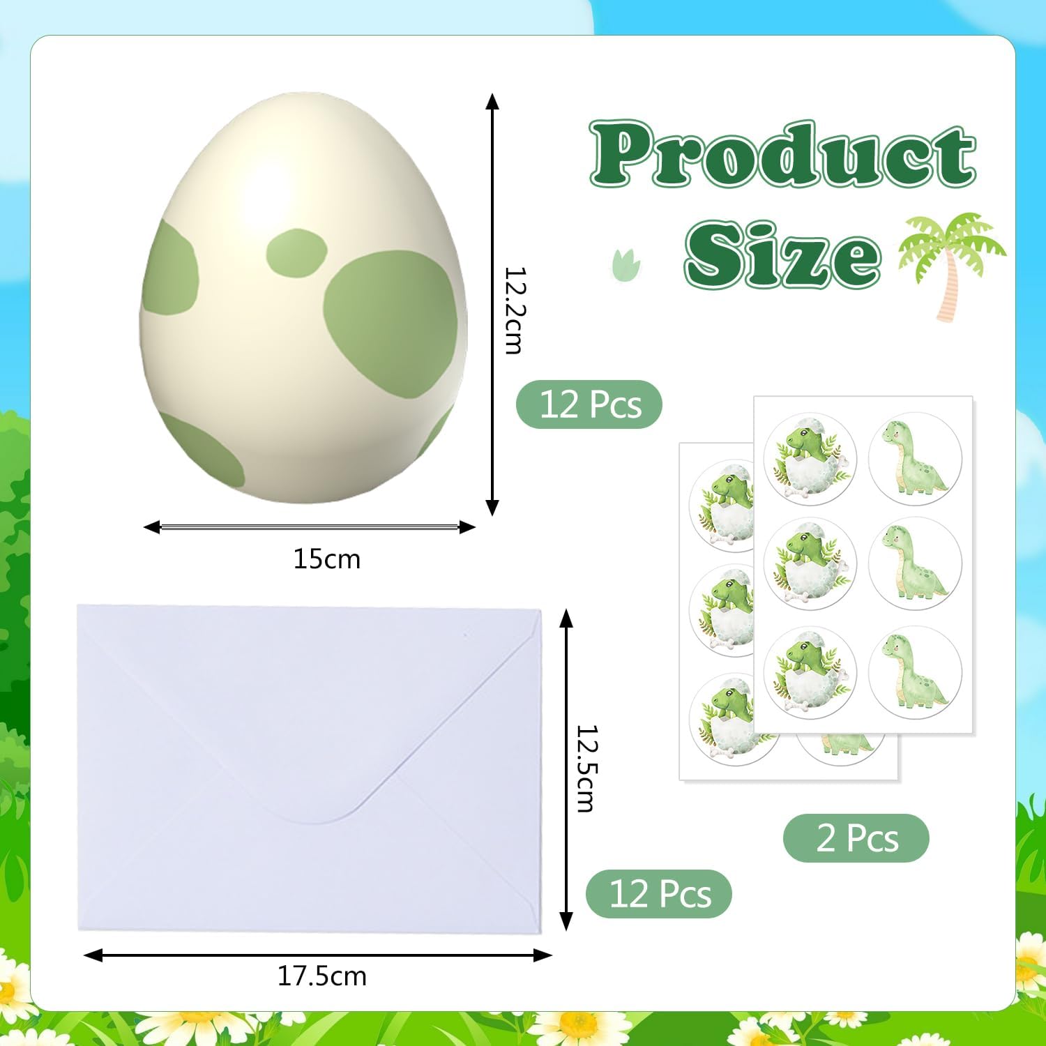 SET DI BIGLIETTI D'INVITO: 12 biglietti d'invito, 12 buste, 12 adesivi. Scegli i biglietti d'invito perfetti per la festa di compleanno dei bambini tra tanti graziosi design insieme al tuo piccolo tesoro. MATERIALE: i biglietti d'invito sono realizzati in carta di alta qualità e decorati con graziose uova di dinosauro. Sono sia attraenti che resistenti per sottolineare l'occasione speciale. FACILI DA SCRIVERE: usa questi inviti per aumentare l'attesa della festa di compleanno del tuo bambino scrivendo tutti i dettagli importanti sulla celebrazione. I dettagli includono destinatario, data, ora, luogo e risposta. Devi solo compilare le informazioni richieste per inviare rapidamente l'invito. IDEA REGALO: questi biglietti d'invito a forma di dinosauro non sono solo un invito, ma anche un regalo magico per i bambini. Garantiscono occhi luminosi e attesa per la prossima celebrazione. UTILIZZO VERSATILE: Oltre alle feste di compleanno, questi biglietti d'invito sono adatti anche per altre occasioni come feste per bambini, attività a tema T-Rex, tour del museo dei dinosauri, ecc.