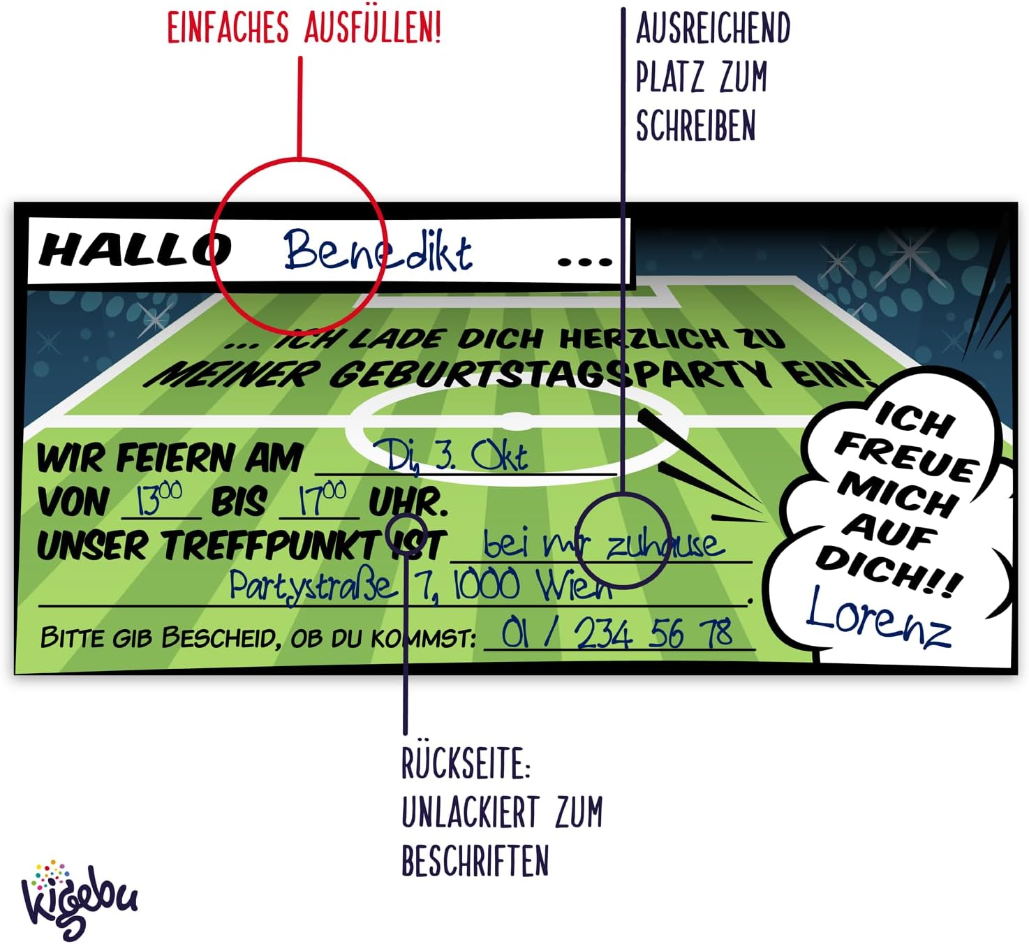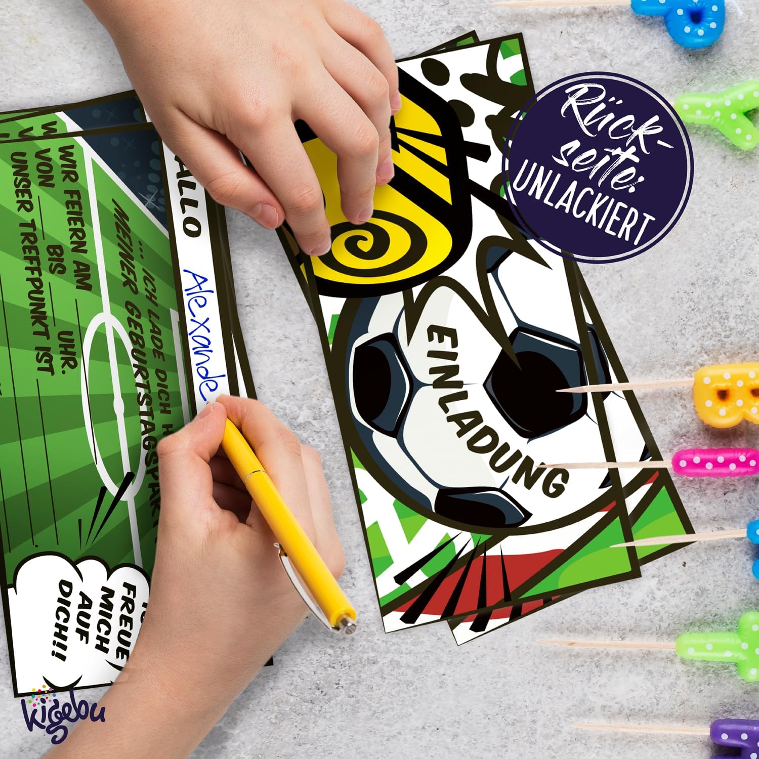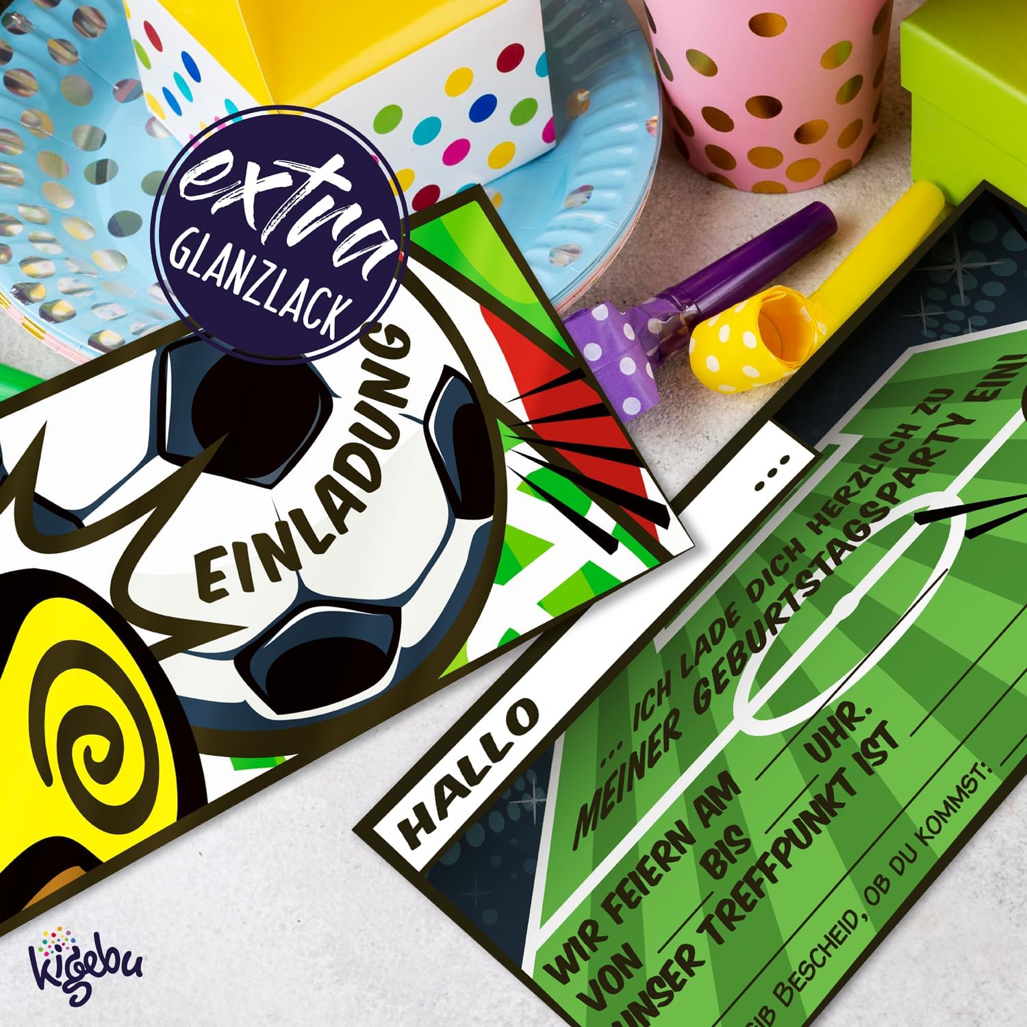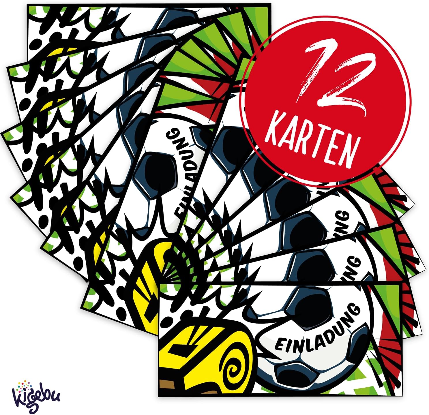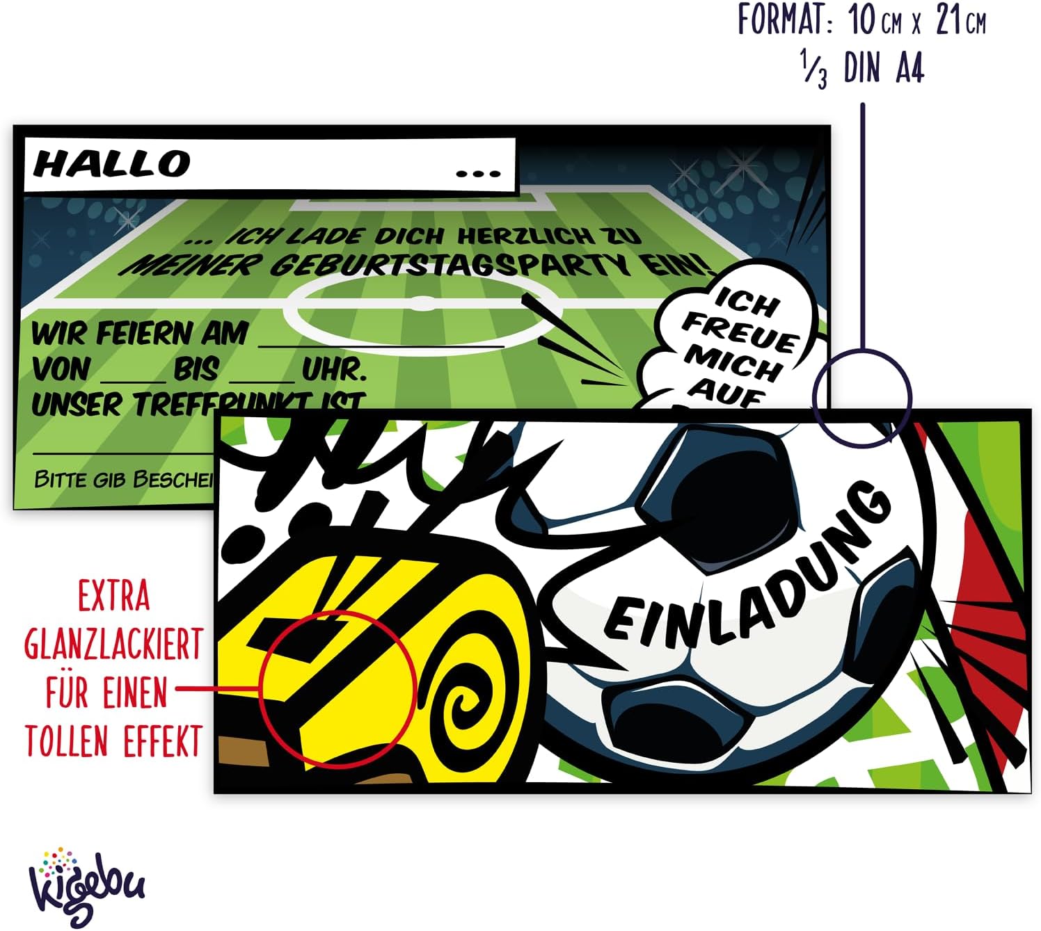🥅 SOCCER PARTY - Il biglietto d'invito perfetto per la prossima festa di compleanno di calcio per bambini, per ragazzi e ragazze di tutte le età! 🥅 RAPIDO DA COMPILARE - Grazie ai campi predefiniti, questi biglietti d'invito vengono completati più velocemente di un obiettivo perfetto! 🥅 INVITO DIVERTENTE - Con una dimensione di 21 cm x 10 cm, questi inviti per feste di calcio non sono solo originali, ma riceverai anche 12 pezzi! 🥅 ALTA QUALITÀ - I nostri biglietti d'auguri sono realizzati in carta patinata di alta qualità da 400 g/m². 🥅 STAMPATO IN GERMANIA - I nostri biglietti d'invito sono prodotti in aziende di stampa a impatto climatico zero in Germania.
