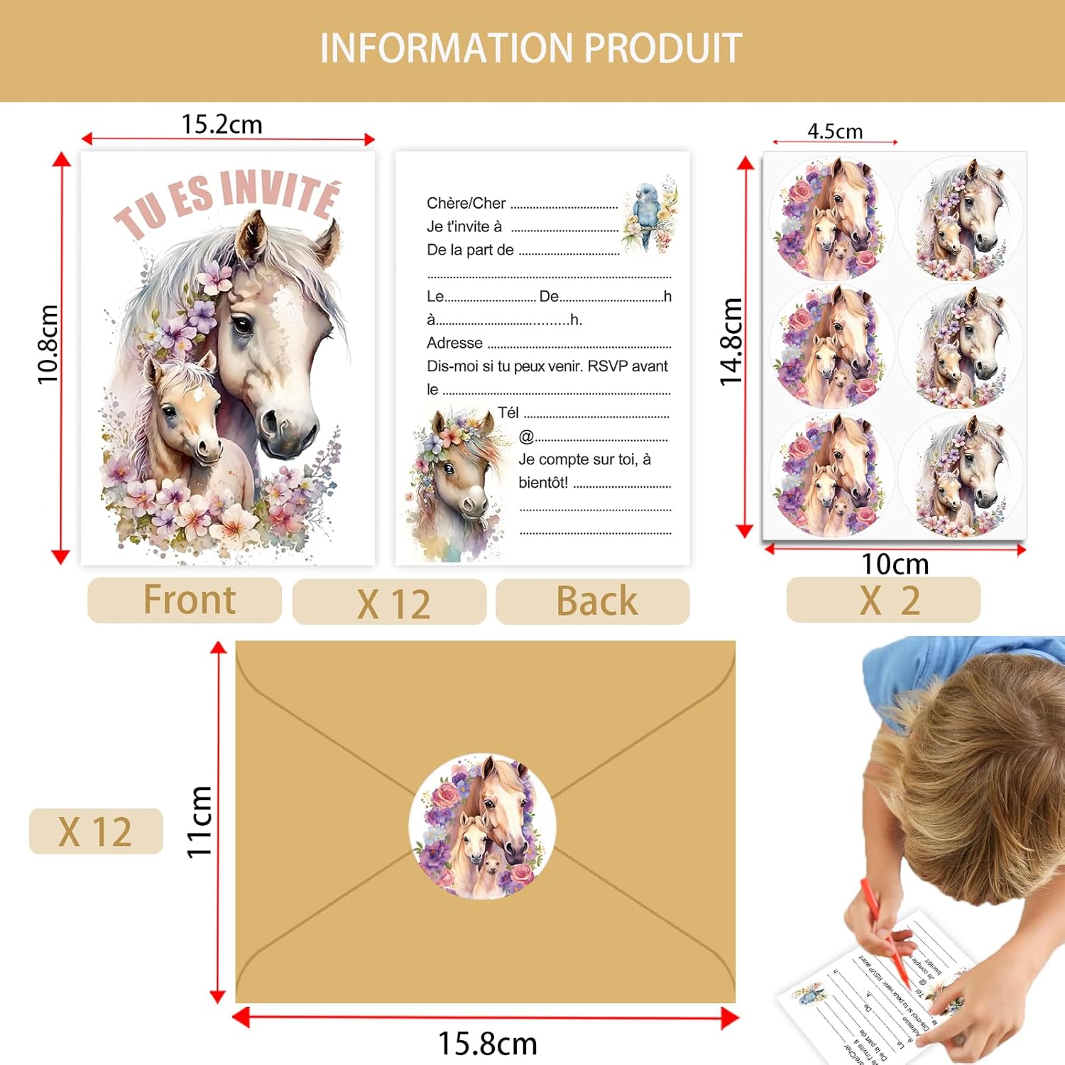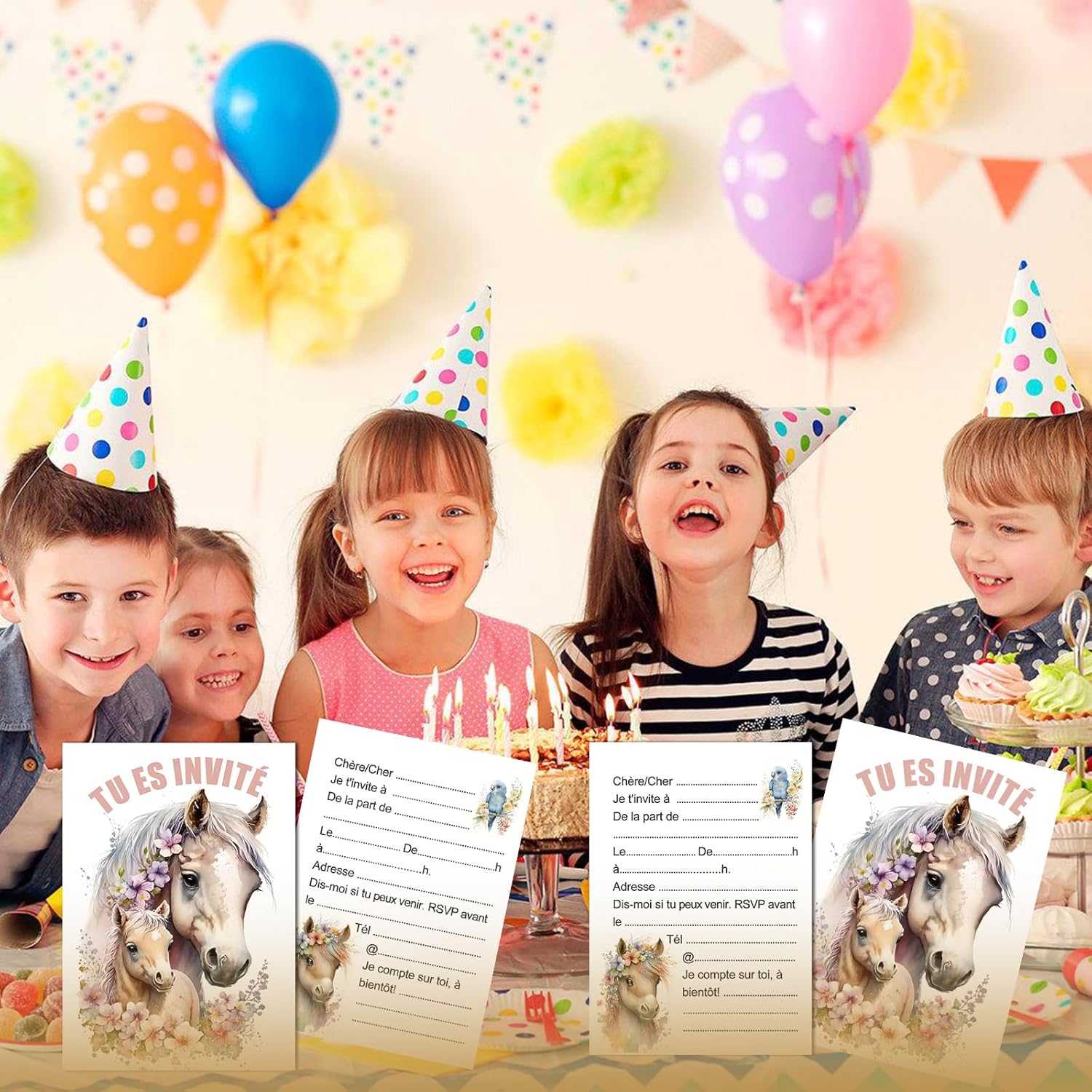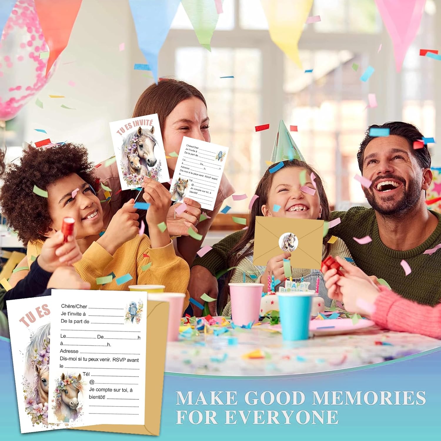 Set di biglietti d'invito per feste: 12 biglietti d'invito, 12 buste e 12 adesivi. Dimensione dei biglietti d'invito per bambini: ca. 15,2 x 10,7 cm è perfetto come biglietto d'invito per feste per colleghi e amici. (Versione francese) Facile da compilare: l'area vuota del biglietto può essere riempita rapidamente con un testo di invito di facile comprensione per inviare agli amici il tuo umore felice in parole e persino disegnare cose interessanti sulla busta. Materiale di alta qualità: i biglietti d'invito per il compleanno dei bambini sono realizzati in carta di alta qualità. La cart
