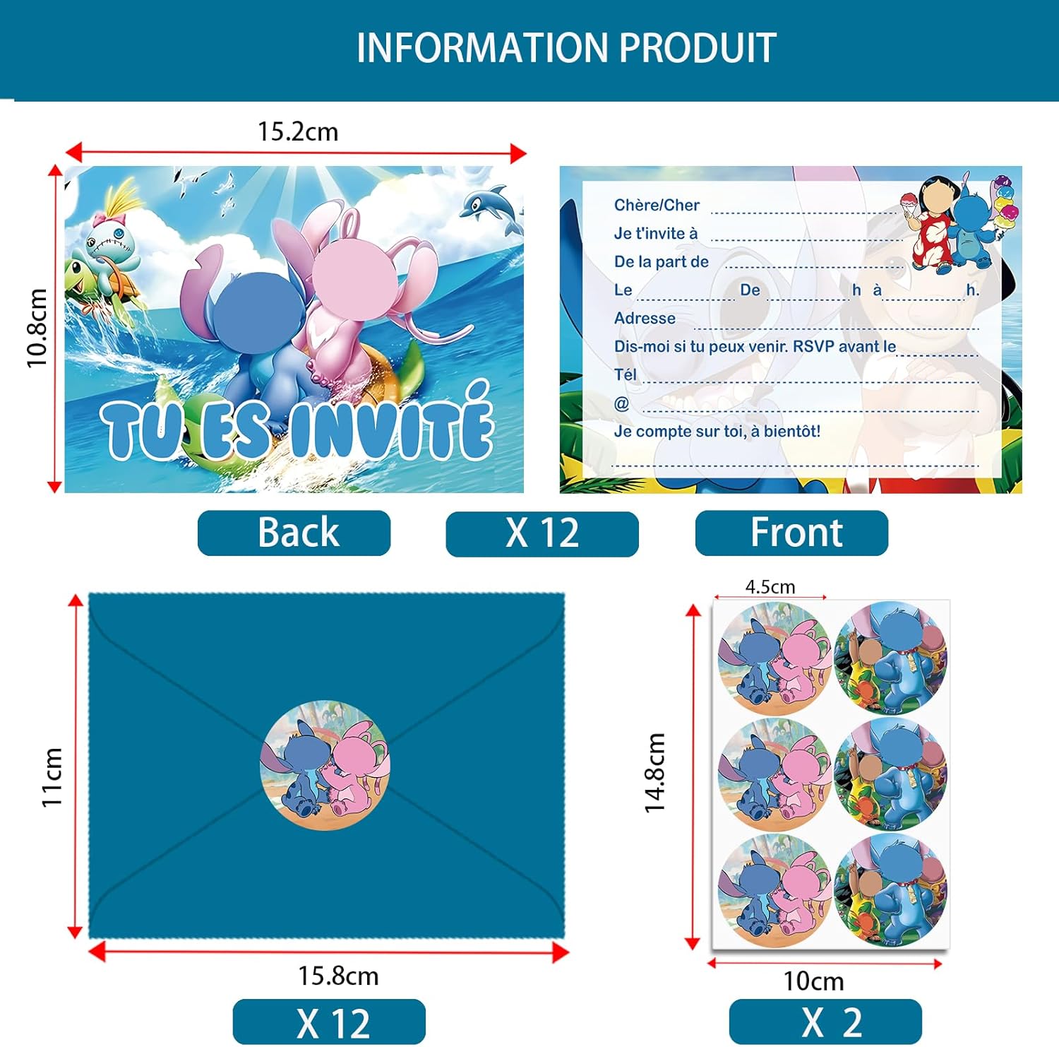 Set di biglietti d'invito per feste: 12 biglietti d'invito, 12 buste e 12 adesivi. Dimensioni dei biglietti d'invito per bambini: ca. 15,2 x 10,7 cm è perfetto come biglietto d'invito per feste per colleghi e amici. (Versione francese)
