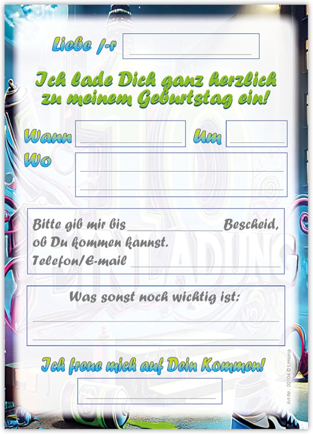 CONTENUTO POPOLARE: 12 Biglietti d'invito. Formato ideale: il biglietto d'invito misura 10,5 x 14,8 cm/DIN A6. Pratico e maneggevole. Alta qualità: stampa di alta qualità 300 g/m², rifinita con vernice UV lucida. Prodotto in Germania Design e personalizzazione: i biglietti d'invito hanno campi prestampati sul retro da compilare e personalizzare. Disponibile anche in altre quantità e in altri motivi popolari per bambini progettati individualmente nel nostro negozio.