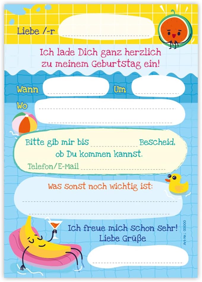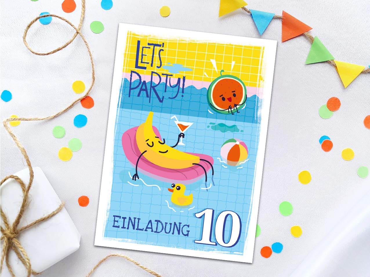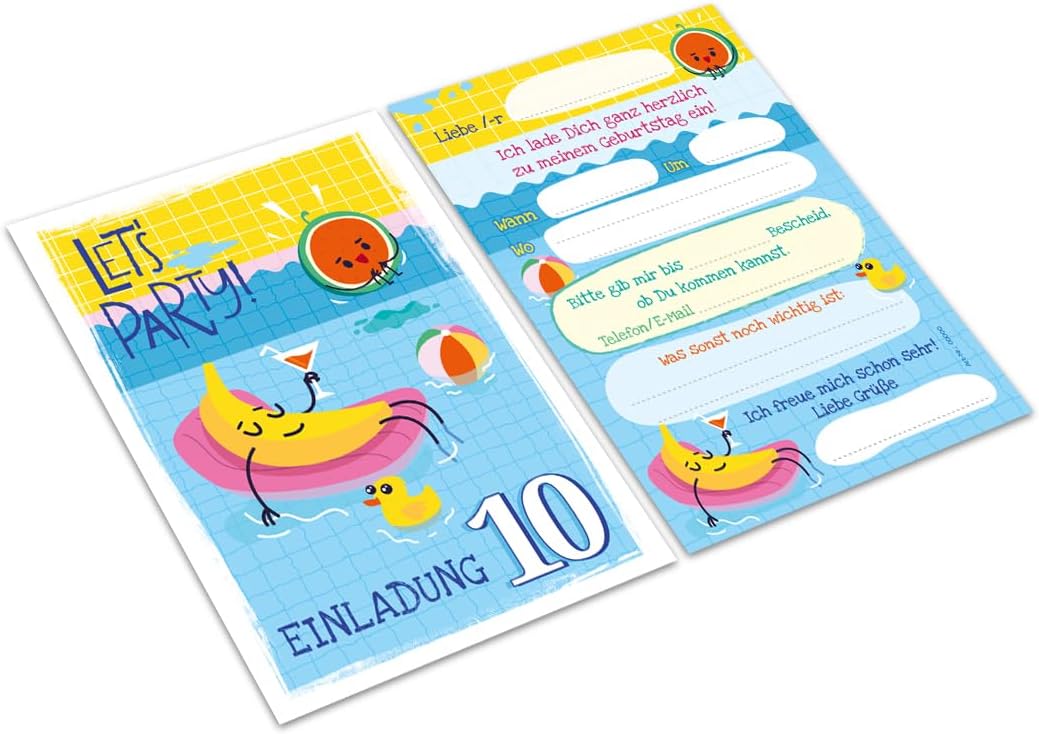 12 biglietti d'invito per il 10° compleanno per bambini, piscina, nuoto, ragazzi, ragazze, invito decimo compleanno
