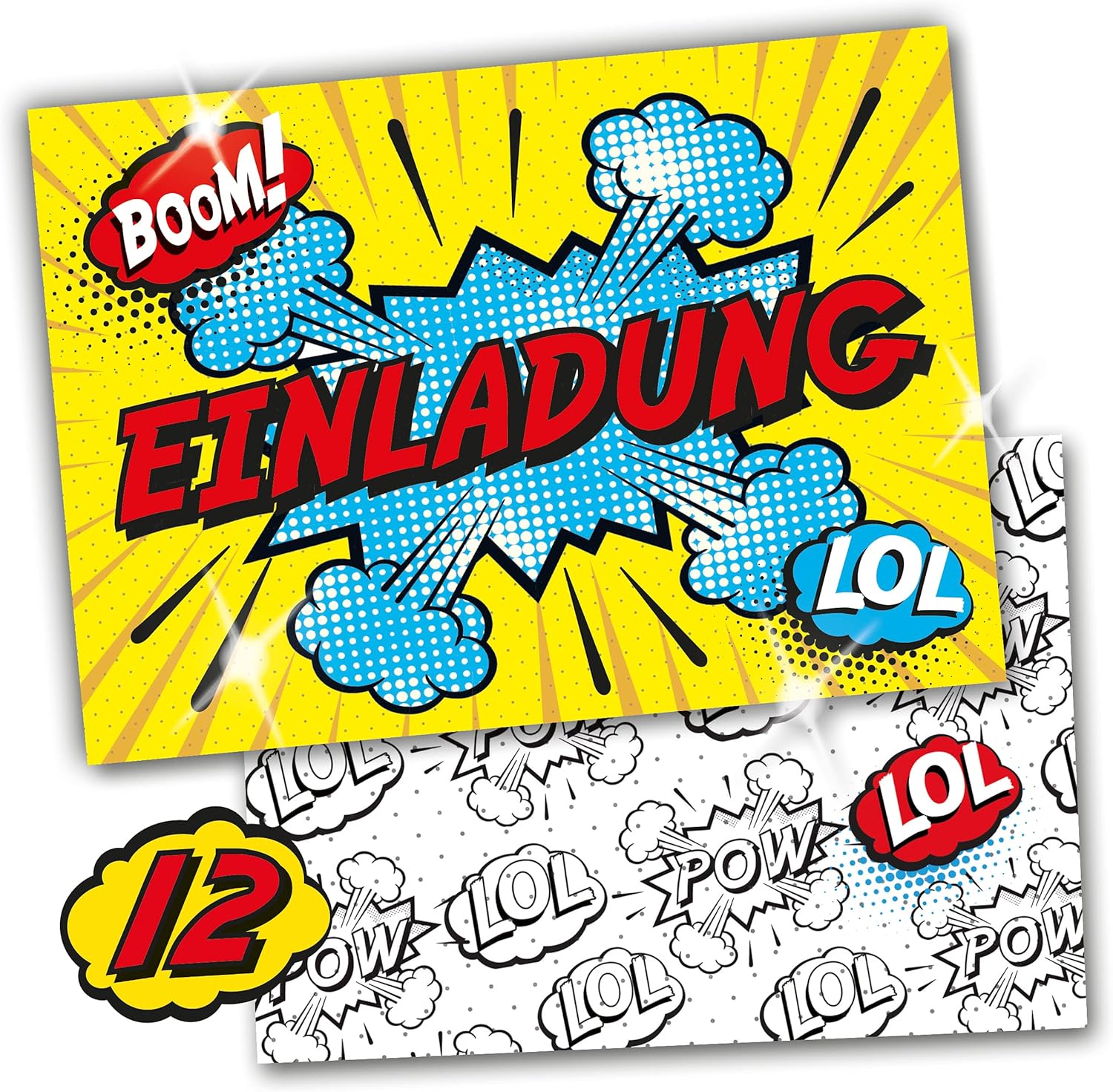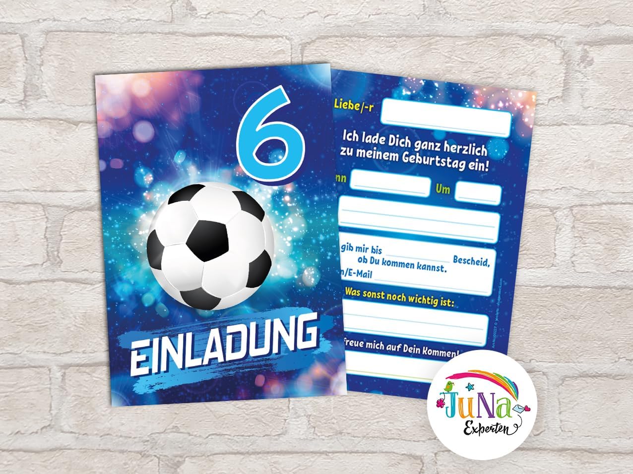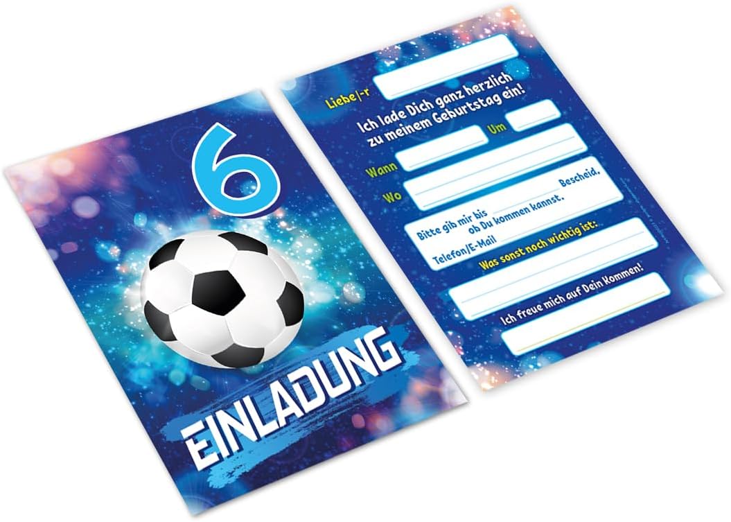 Contenuto: 12 biglietti d'invito Pratico: gli inviti sono moderni e progettati con molti dettagli. Sul retro troverete i campi prestampati da compilare. Dimensioni: i biglietti d'invito sono molto stabili, hanno formato DIN A6 (10,50 cm x 14,80 cm), stampa di alta qualità 300 g/m² e sono rivestiti con vernice UV per la finitura. Occasione: il set per feste è ideale per feste di compleanno. HAI BISOGNO DI UN ALTRO NUMERO? : da noi troverete questi graziosi inviti anche in set da 6, 8 o 10 pezzi. Altri motivi: nel nostro negozio troverete anche molti altri motivi di inviti, come lama, cavalli, calcio, cinema laser, bowling, jump. Prodotto in Germania: i biglietti sono stati prodotti in una tipografia tedesca.