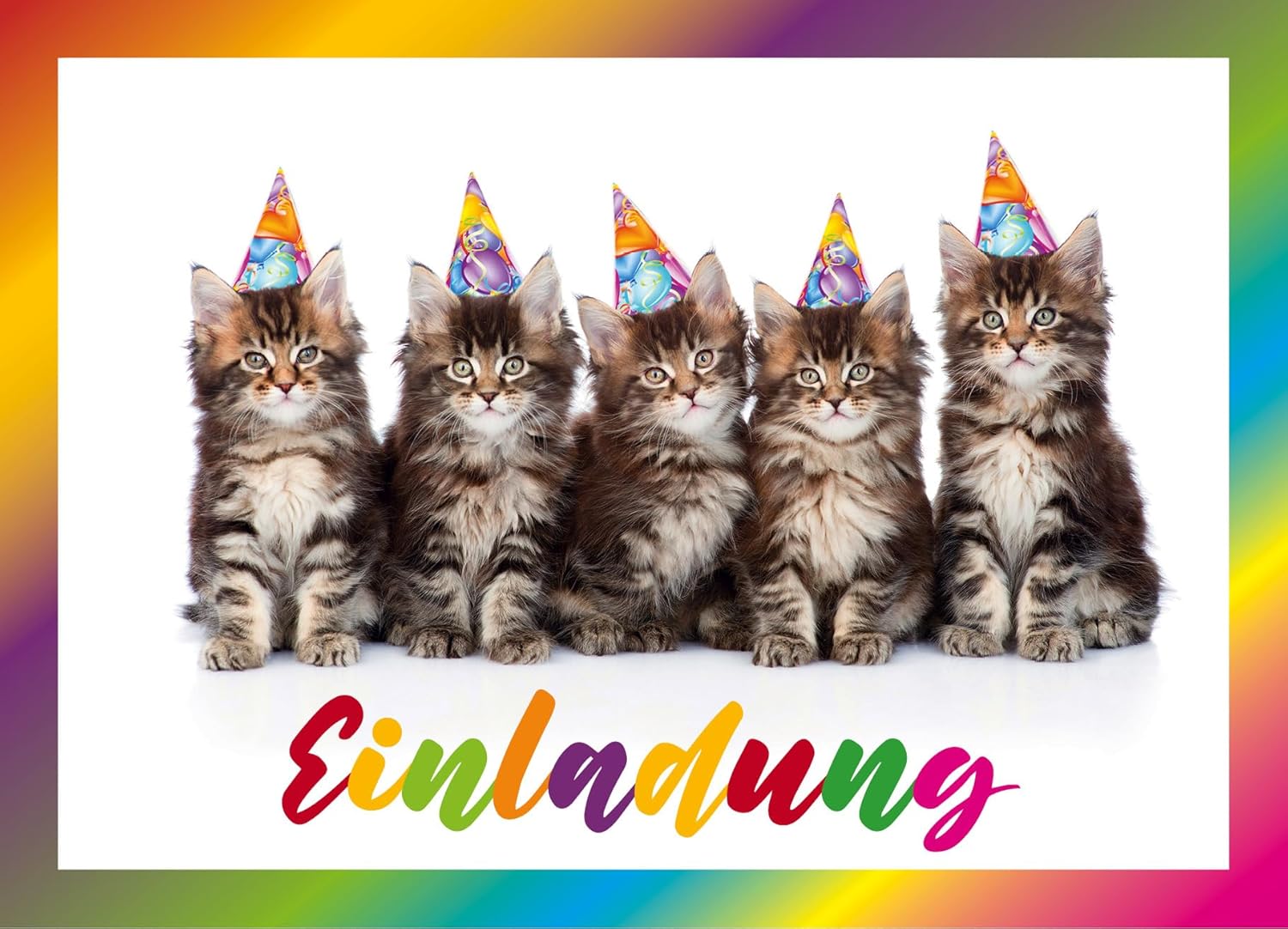 Contenuto: 12 biglietti d'invito Pratico: gli inviti sono moderni e progettati con molti dettagli. Sul retro troverete i campi prestampati da compilare. Dimensioni: i biglietti d'invito sono molto stabili, hanno formato DIN A6 (10,50 cm x 14,80 cm), stampa di alta qualità 300 g/m² e sono rivestiti con vernice UV per la finitura. Occasioni: i biglietti di invito sono molto adatti per una festa di compleanno o una festa di compleanno. È possibile utilizzare questi biglietti anche come inviti per battesimo, festa a tema, feste al cinema o feste in piscina. HAI BISOGNO DI UN ALTRO NUMERO? : da noi troverete questi graziosi inviti anche in set da 6, 8 o 10 pezzi. Altri motivi: nel nostro negozio troverete anche molti altri motivi di inviti, come lama, cavalli, calcio, cinema, piscina, bowling, salto. Prodotto in Germania: i biglietti sono stati prodotti in una tipografia tedesca.