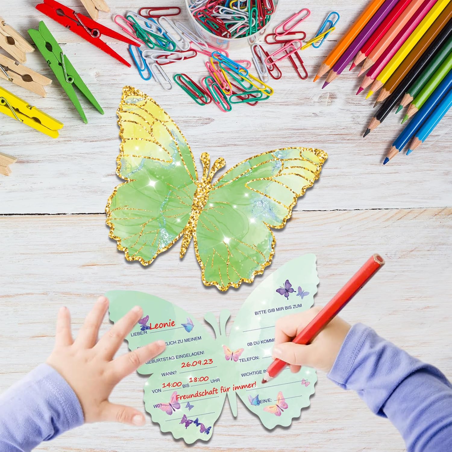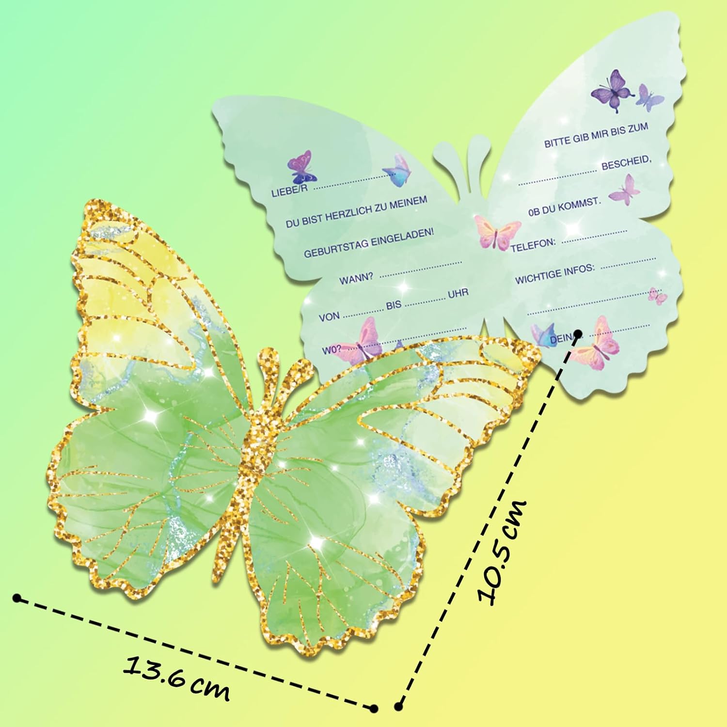 Biglietti di invito a farfalle. I nostri biglietti di invito sono composti da 12 pezzi. Può accadere che due biglietti d'invito si incollino insieme. Basta separarli. La confezione contiene 12 biglietti d'invito con farfalle in formato 13,6 x 10,5 cm. Design perfetto: i biglietti di invito sono progettati con un vivace e simpatico motivo a farfalla, che può attirare l'attenzione dei bambini e regalarli un'esperienza di festa allegra. Facile da scrivere: i biglietti d'invito sono facili e facili da compilare. Alta qualità: i biglietti d'invito sono realizzati in carta pesante da 300 g/m², piacevole al tatto, colori vivaci e non si danneggiano facilmente. Diverse occasioni: oltre alle feste a tema, questo biglietto d'invito a farfalla può essere utilizzato in una varietà di occasioni come feste di compleanno, matrimoni, scambio regalo, regali di laurea ed eventi festivi, per trasmettere ai tuoi ospiti la tua anticipazione.