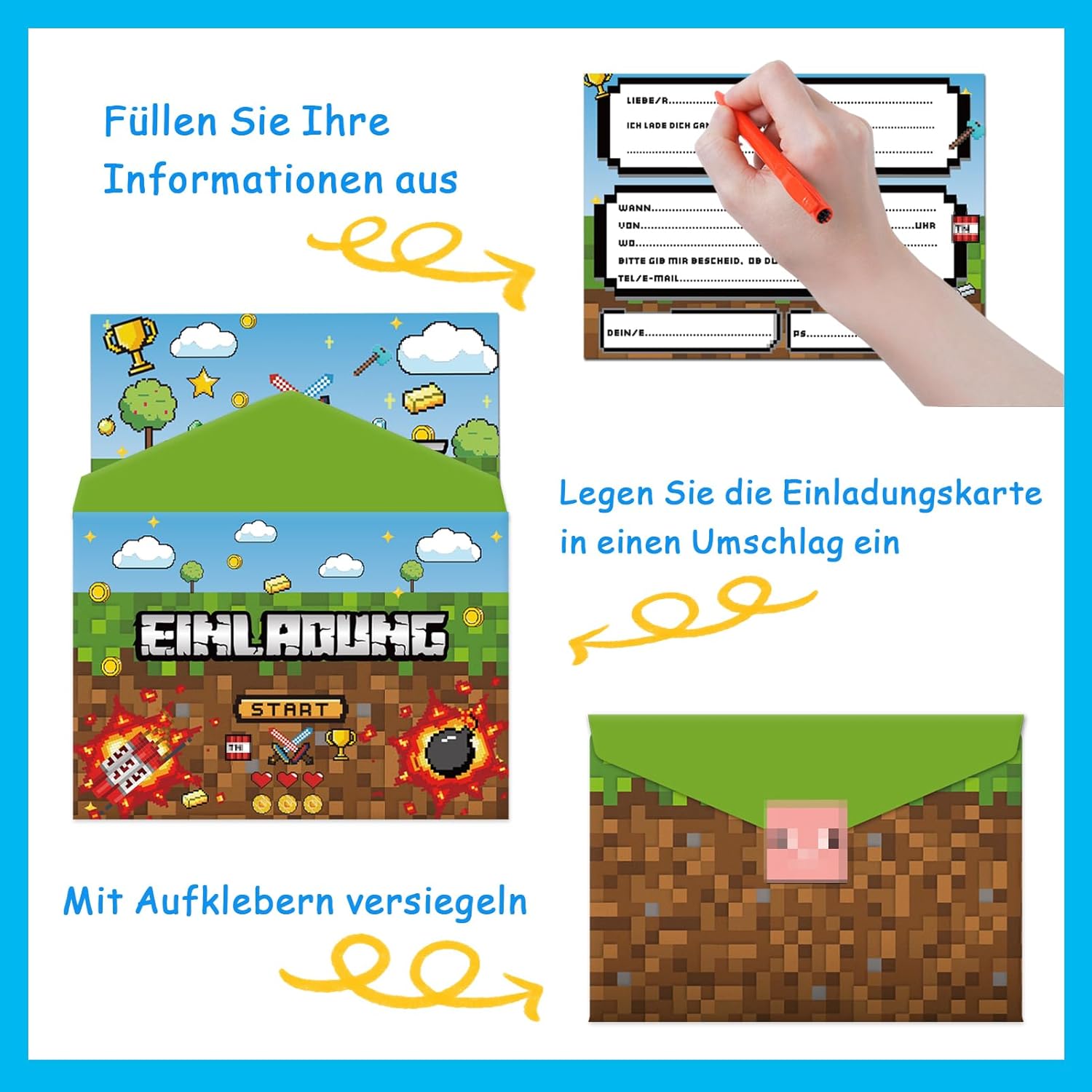 Set di biglietti di invito per bambini: contiene 12 biglietti d'invito tedeschi, 12 buste e 12 adesivi rotondi. Ci sono quantità sufficienti, vieni e invita i tuoi amici alla festa! Tema dei cartoni animati: i biglietti di invito, le buste e gli adesivi sono tutti stampati con motivi cartoni animati colorati e chiari. Le figure di questi modelli sono sempre state amate dai bambini. Credo che i bambini saranno molto felici e saranno entusiasti di partecipare alla festa. Facile da usare: basta inserire il nome dell'invitato, l'ora e il luogo della festa sul biglietto d'invito e inviare il biglietto di invito o anche indicare il tema della festa. È molto facile da usare. Carta di alta qualità: il set di biglietti d'invito di compleanno è realizzato in carta di alta qualità ed ecologica, atossica e innocua, ed è dotato di squisiti motivi stampati. Non importa se bambini o adulti, puoi usarli con fiducia. Adatto per diverse feste: i nostri biglietti d'invito a fumetti sono molto adatti per feste di compleanno, feste a tema e altre attività, per invitare familiari, amici e compagni di classe.
