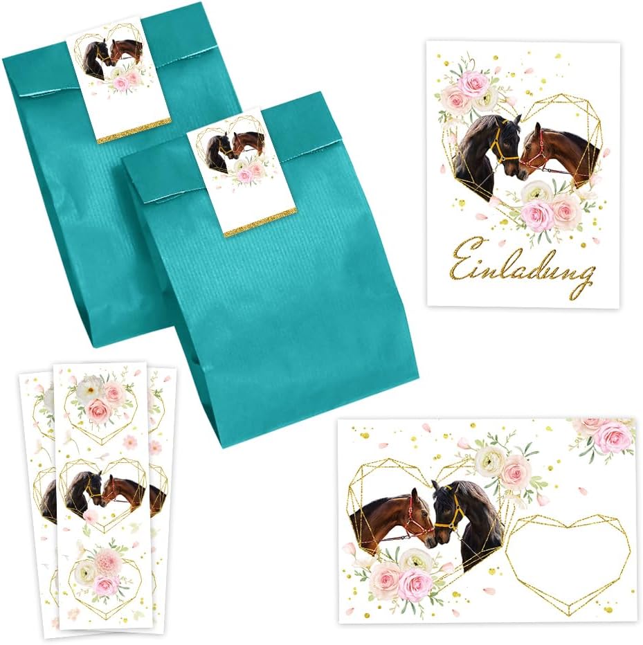 Contenuto: 12 biglietti d'invito + 12 buste + 12 sacchetti per feste/petrolio + 12 adesivi + 12 segnalibri Pratico: con questo set non solo avrete inviti con buste abbinate, sacchetti regalo per regalini e fantastici adesivi regalo da scrivere, ma anche segnalibri come bomboniere. Biglietti: gli inviti sono moderni e progettati con molti dettagli. Sul retro troverete i campi prestampati da compilare. I biglietti d'invito sono molto robusti, hanno formato A6 (10,50 cm x 14,80 cm), stampa di immagini di alta qualità da 300 g/m e sono rivestiti con vernice UV per la finitura. Buste autoadesive: la busta ha una dimensione di 11,40 cm x 16,20 cm, stampa da 80 g/m² ed è adesiva (con striscia adesiva). Sacchetti regalo e adesivi: i sacchetti di carta hanno una dimensione di 12 x 19 cm. I sacchetti per feste sono molto adatti per confezionare piccoli bomboniere o caramelle per gli ospiti. Adesivo: gli adesivi hanno una dimensione di 5,2 x 14,8 cm. Tu o il tuo bambino potete scrivere sugli adesivi "Grazie", "bello che tu aspetta!" o scrivere il nome dell'ospite. Segnalibro: il segnalibro ha una dimensione di 5,2 x 14,80 cm, stampa 300 g/m ed è rivestito con vernice UV su entrambi i lati (lucido). Occasione: il set per feste è molto adatto per una festa di compleanno o una festa di compleanno. È possibile utilizzare questi biglietti anche come inviti per battesimi, feste a tema, feste al cinema o in piscina.