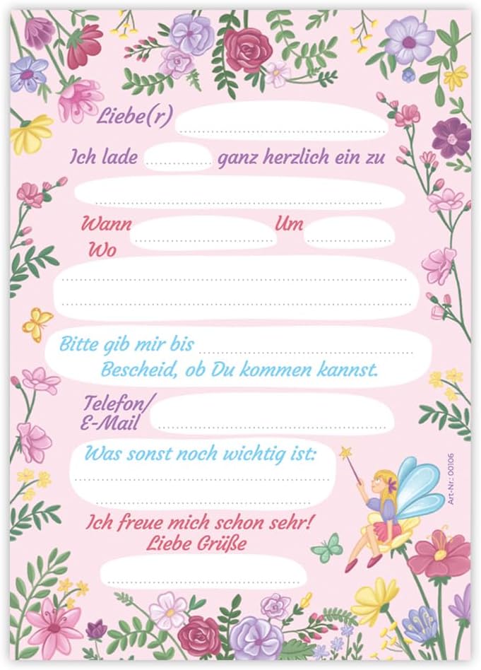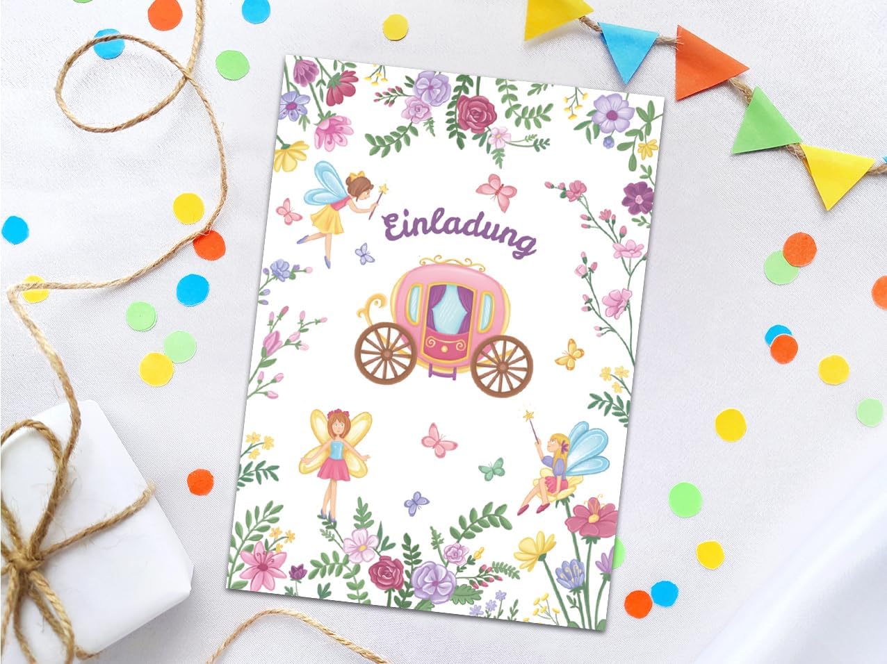 12 biglietti d'invito per il compleanno dei bambini, motivo: fate, principessa, invito, compleanno delle ragazze, inviti di compleanno