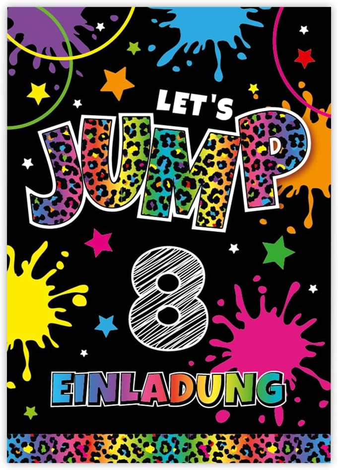 Contenuto: 12 biglietti d'invito + 12 buste + 12 sacchetti per feste/naturale + 12 adesivi Pratico: con questo set non avrete solo inviti con buste abbinate, ma anche sacchetti regalo per regalini e fantastici adesivi regalo da scrivere. Biglietti: gli inviti sono moderni e progettati con molti dettagli. Sul retro troverete i campi prestampati da compilare. I biglietti d'invito sono molto robusti, hanno formato A6 (10,50 cm x 14,80 cm), stampa di immagini di alta qualità da 300 g/m e sono rivestiti con vernice UV per la finitura. Buste autoadesive: la busta ha una dimensione di 11,40 cm x 16,20 cm, stampa da 80 g/m² ed è adesiva (con striscia adesiva). Sacchetti regalo: i sacchetti di carta hanno una dimensione di 14 x 22 x 5 cm. I sacchetti per feste (sacchetti a fondo incrociato) sono molto adatti per confezionare piccole bomboniere o caramelle per gli ospiti. Adesivo: gli adesivi hanno una dimensione di 5,2 x 14,8 cm. Tu o il tuo bambino potete scrivere sugli adesivi "Grazie", "bello che tu aspetta!" o scrivere il nome dell'ospite. Occasione: il set per feste è molto adatto per una festa di compleanno o una festa di compleanno. È possibile utilizzare questi biglietti anche come inviti per battesimi, feste a tema, feste al cinema o in piscina.