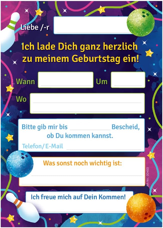 Contenuto: 12 biglietti d'invito, 12 buste, 12 navi, 12 sacchetti/naturale con 12 adesivi. Biglietti e buste: i biglietti d'invito sono moderni e progettati con molti dettagli. Sul retro troverete i campi prestampati da compilare. Il biglietto ha una dimensione di 10,50 cm x 14,80 cm (stampa 300 g/m). La busta ha una dimensione di 11,40 cm x 16,20 cm (stampa di 80 g/m) e sono adesive (con striscia adesiva). Sacchetti con adesivo: i sacchetti di carta hanno una dimensione di 14 cm x 22 cm. Gli adesivi hanno una dimensione di 5,2 x 14,8 cm. I sacchetti sono ideali da riempire con piccoli regalini per feste di compleanno per bambini. Svasare le navi: i blocchi hanno una dimensione di 14,80 x 10,5 cm (DIN A6) e 25 fogli. Prodotto in Germania: biglietti, buste, adesivi, navi e sacchetti sono prodotti in Germania.