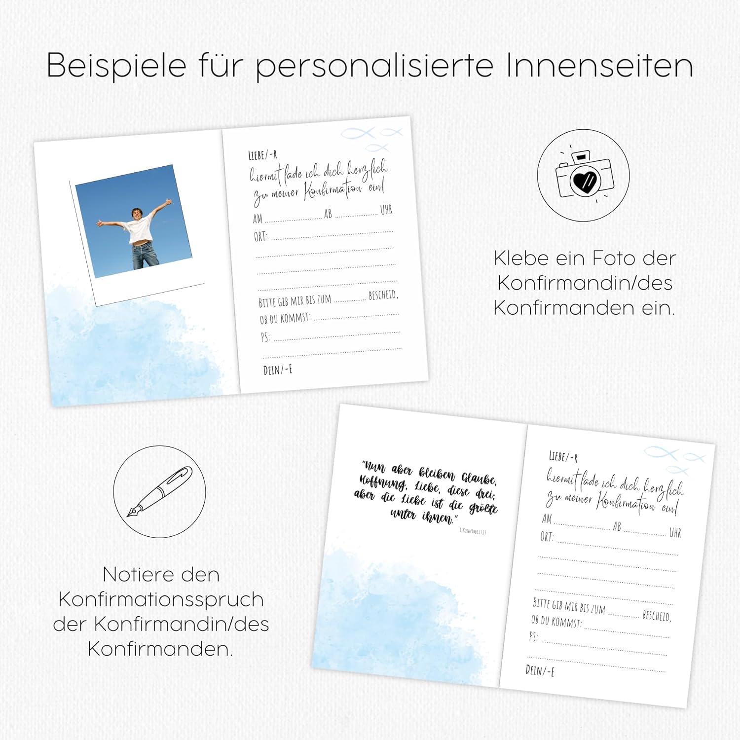 COMPILAZIONE VELOCE E INTUITIVA attraverso campi prefabbricati per tutte le informazioni pertinenti. Un campo aggiuntivo offre anche spazio per importanti informazioni aggiuntive come auguri o simili. Stampa a clima di alta qualità: i biglietti sono realizzati in Germania e sono realizzati in cartone extra forte da 300 g. I biglietti sono scrivibili con tutte le penne comuni. Il formato perfetto: gli inviti a 4 lati in formato DIN A6 (14,8 x 10,5 cm) offrono spazio per tutte le informazioni importanti. Riceverai buste abbinate: in modo che le tue carte rimangano protette e possano anche essere spedite. Contenuto della confezione: 12 biglietti d'invito + 12 buste abbinate
