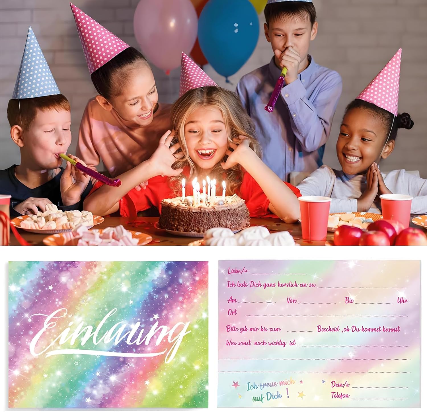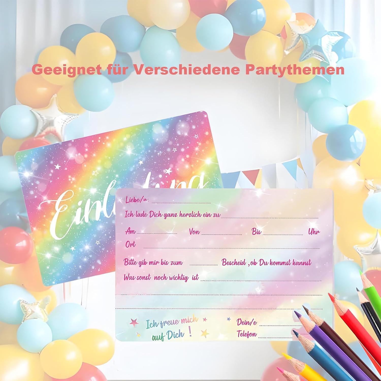 Design raffinato: i biglietti di invito sono decorati con un colorato motivo arcobaleno e grazie alla tecnica di stampa di alta qualità sono stampati con colori ricchi e vivaci che lasciano una forte impressione visiva. Materiali selezionati: i biglietti d'invito sono realizzati in cartone spesso di alta qualità, piacevole al tatto, resistente e resistente alle pieghe e dà una sensazione di alta qualità, in modo che il destinatario possa sentire la sincerità dell'invito. Facile da compilare: l'interno del biglietto d'invito è semplice e generoso e offre spazio sufficiente per scrivere, in modo da poter essere compilato sia a mano che comodamente, risparmiando tempo. Occasioni adatte: i biglietti di invito arcobaleno sono ideali per feste di compleanno, matrimoni, feste di Natale e molte altre occasioni. Il design versatile si adatta a diversi temi ed è molto pratico. Caratteristiche del prodotto: i bordi dei biglietti Rainbow Party sono tagliati con precisione e la superficie è rivestita con un rivestimento opaco, resistente allo sporco e all'abrasione, in modo che ogni biglietto d'invito rimanga impeccabile.