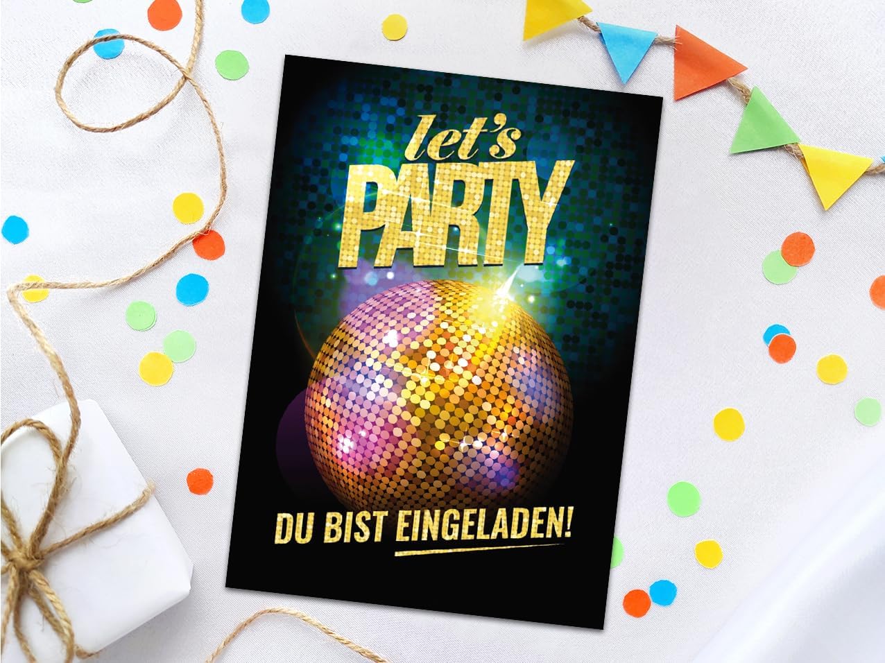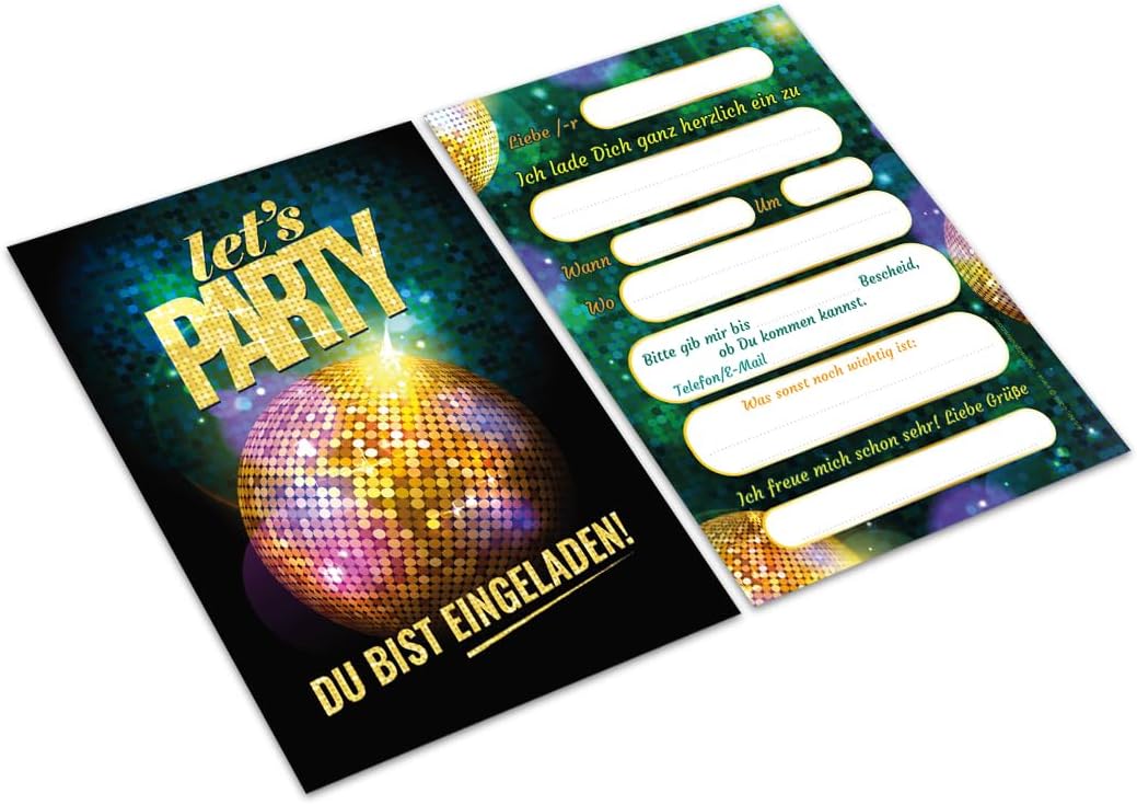 Contenuto: 12 biglietti d'invito + 12 buste Pratico: gli inviti sono moderni e progettati con molti dettagli. Sul retro troverete i campi prestampati da compilare. Biglietti: i biglietti d'invito sono molto robusti, hanno formato A6 (10,50 cm x 14,80 cm), stampa di alta qualità 300 g/m e sono rivestiti con vernice UV per la finitura. Buste autoadesive: la busta ha una dimensione di 11,40 cm x 16,20 cm, stampa da 80 g/m ed è adesiva (con striscia adesiva). Occasioni: i biglietti di invito sono molto adatti per una festa di compleanno o una festa di compleanno. È possibile utilizzare questi biglietti anche come inviti per battesimi, feste a tema, feste al cinema o feste in piscina. HAI BISOGNO DI UN ALTRO NUMERO? : da noi troverete anche biglietti e buste in set da 6, 8 o 10 pezzi. Altri motivi: nel nostro negozio troverete anche molti altri motivi di inviti, come lama, cavalli, calcio, cinema, piscina, bowling, salto. Prodotto in Germania: i biglietti e le buste sono stati prodotti in una tipografia tedesca.