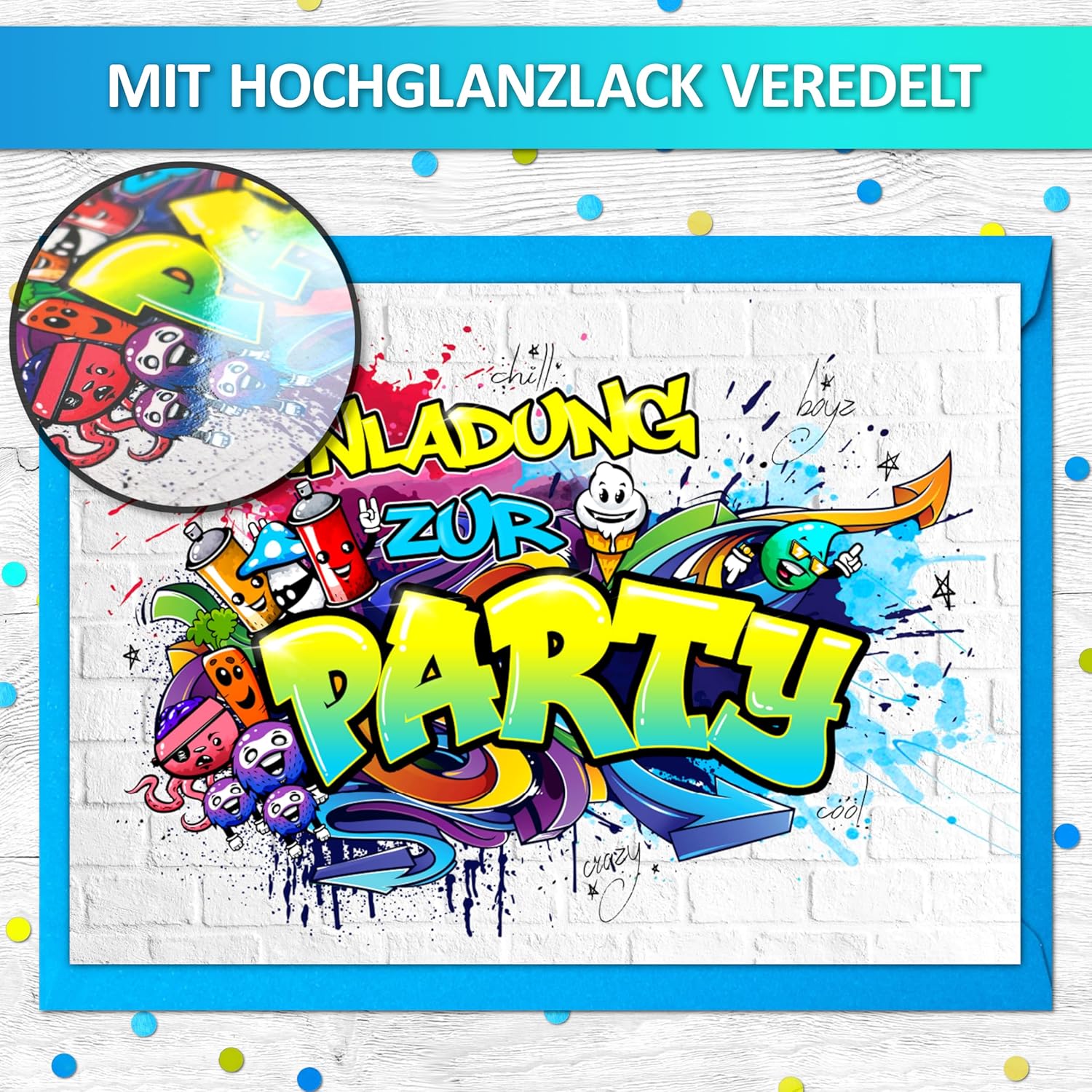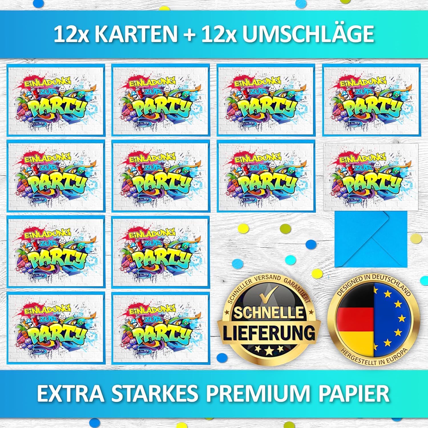 Versatile: che si tratti di feste di compleanno per bambini, feste in giardino, feste a tema, feste a tema, feste estive, inizio della scuola, feste per bambini o feste di graffiti JGA sono l'invito a una festa per ragazzi e amici Unici: i nostri biglietti di invito mostri per compleanno per bambini e bambine sono l'accessorio per ogni festa di compleanno per bambini – Facile da distribuire come pensierino nella cerchia degli amici o a scuola Vera qualità: i nostri biglietti d'invito sono realizzati in Europa – su carta premium riciclabile da 350 g e rifiniti con una stampa speciale per colori brillanti e ottima sensazione al tatto Formato ottimale: i biglietti d'invito per feste DIN A6 offrono spazio per tutte le informazioni importanti e sono scrivibili con tutte le penne comuni: sono il ricordo dell'infanzia per ogni amico Il biglietto d'invito perfetto: con i 12 divertenti inviti per feste in stile graffiti + 12 buste blu, tutti gli ospiti saranno sicuri che tutti i bambini e gli adolescenti arrivino alla festa di compleanno!