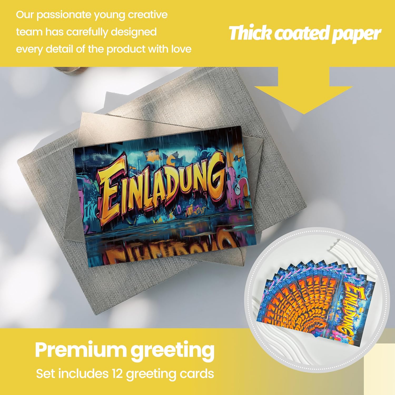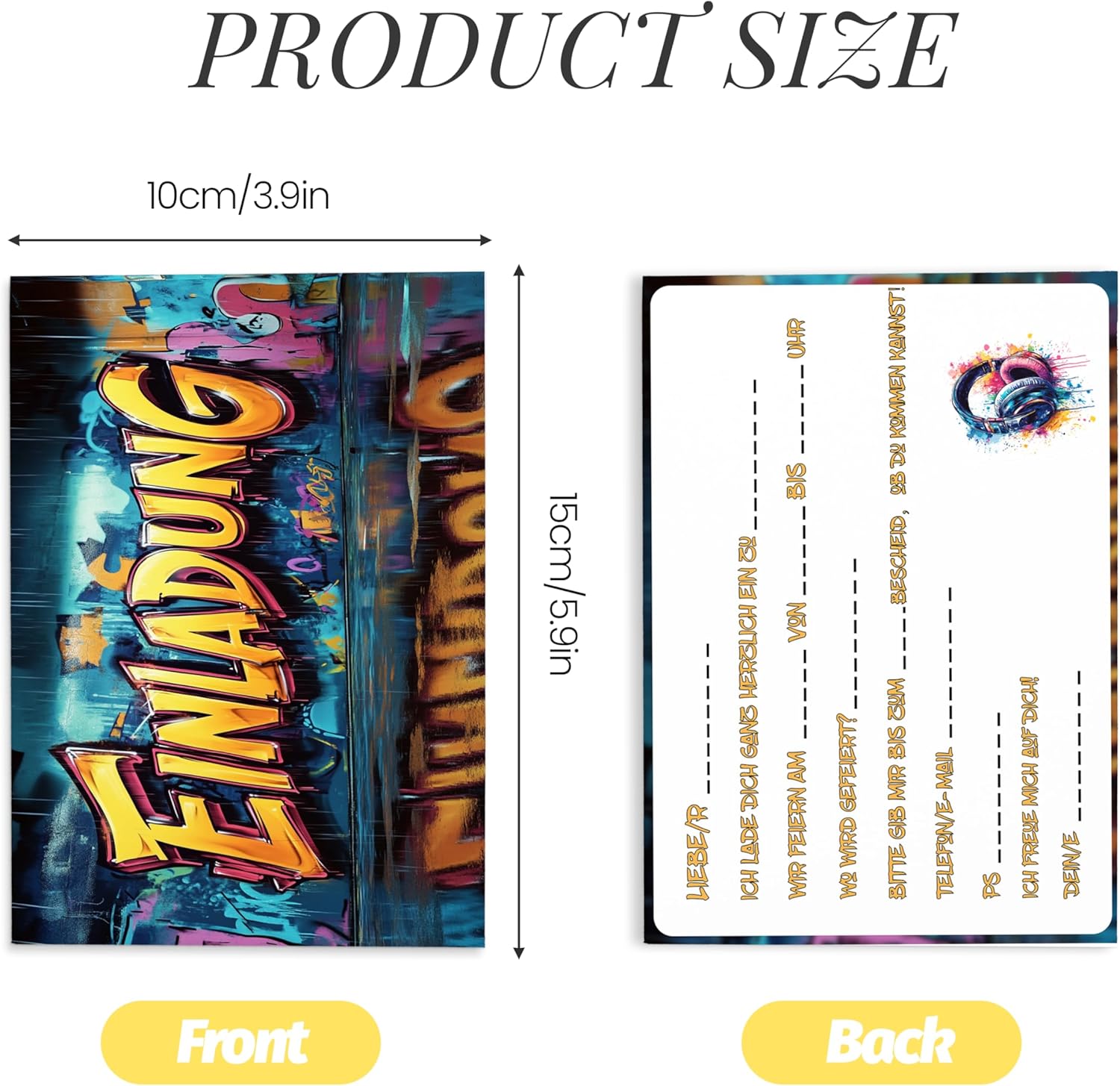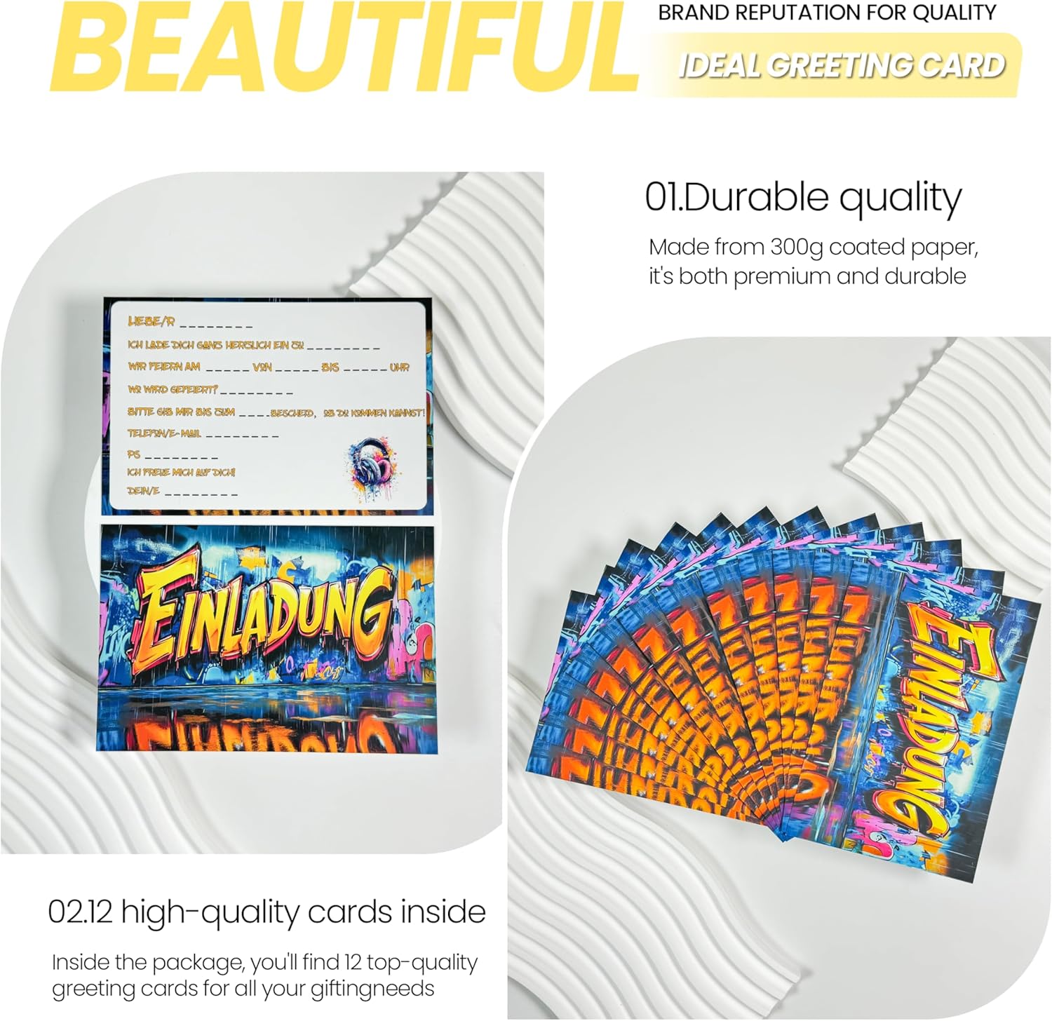 【Confezione del prodotto】: riceverete 12 biglietti d'invito di compleanno per ragazzi con disegni di graffiti da strada. Questi graziosi disegni di graffiti sono molto adatti per feste di compleanno per bambini. Invita i tuoi ospiti a una festa di compleanno. Materiale: il biglietto di invito per bambini è realizzato in carta perlata da 300 g e decorato con forme dolci. La carta perlescente non si strappa facilmente, è resistente alla corrosione, resistente alle rughe e non scolorisce facilmente. È bello e resistente, morbido, delicato e brillante e può aggiungere colore alle occasioni speciali. Spazio sufficiente: all'interno dei biglietti d'invito per il compleanno dei bambini c'è abbastanza spazio per registrare messaggi di invito personali e dettagli delle feste. Con esso, puoi riempire i dettagli raffinati ed evitare di perdere qualcosa. 【Multifunzione】: che si tratti di compleanno per bambini, feste in giardino, feste a tema, feste estive, inizi a scuola, feste per bambini o pigiama party, i biglietti di invito per il compleanno dei bambini sono inviti per ragazzi e amici. Idea regalo: questi biglietti di invito per bambini di compleanno non sono solo un invito, ma anche un regalo magico per bambini. Fanno brillare gli occhi e fare anticipazione per la festa imminente.