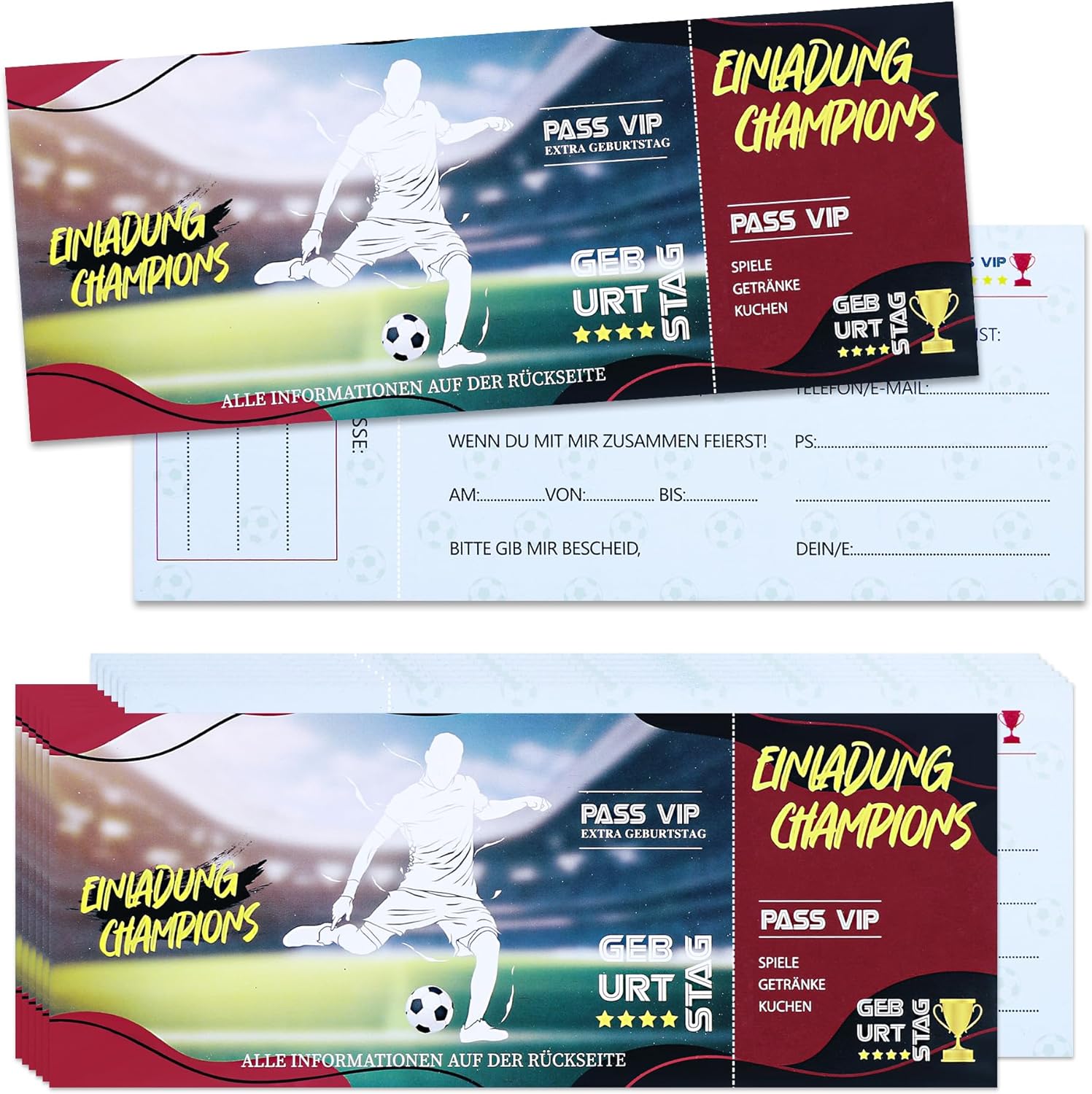 Contenuto: 12 biglietti d'invito + 12 buste + 12 sacchetti per feste/naturale + 12 adesivi Pratico: con questo set non avrete solo inviti con buste abbinate, ma anche sacchetti regalo per regalini e fantastici adesivi regalo da scrivere. Biglietti: gli inviti sono moderni e progettati con molti dettagli. Sul retro troverete i campi prestampati da compilare. I biglietti d'invito sono molto robusti, hanno formato A6 (10,50 cm x 14,80 cm), stampa di immagini di alta qualità da 300 g/m e sono rivestiti con vernice UV per la finitura. Buste autoadesive: la busta ha una dimensione di 11,40 cm x 16,20 cm, stampa da 80 g/m² ed è adesiva (con striscia adesiva). Sacchetti regalo: i sacchetti di carta hanno una dimensione di 14 x 22 x 5 cm. I sacchetti per feste (sacchetti a fondo incrociato) sono molto adatti per confezionare piccole bomboniere o caramelle per gli ospiti. Adesivo: gli adesivi hanno una dimensione di 5,2 x 14,8 cm. Tu o il tuo bambino potete scrivere sugli adesivi "Grazie", "bello che tu aspetta!" o scrivere il nome dell'ospite. Occasione: il set per feste è molto adatto per una festa di compleanno o una festa di compleanno. È possibile utilizzare questi biglietti anche come inviti per battesimi, feste a tema, feste al cinema o in piscina.