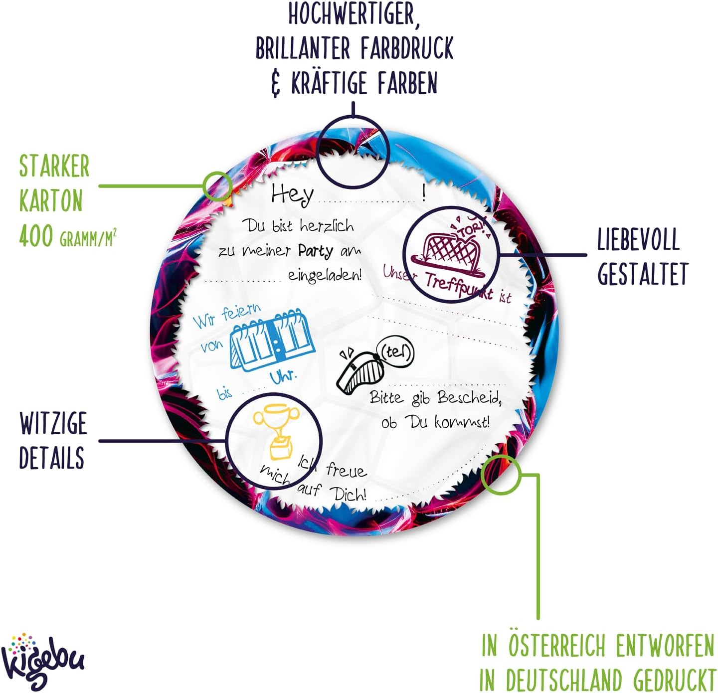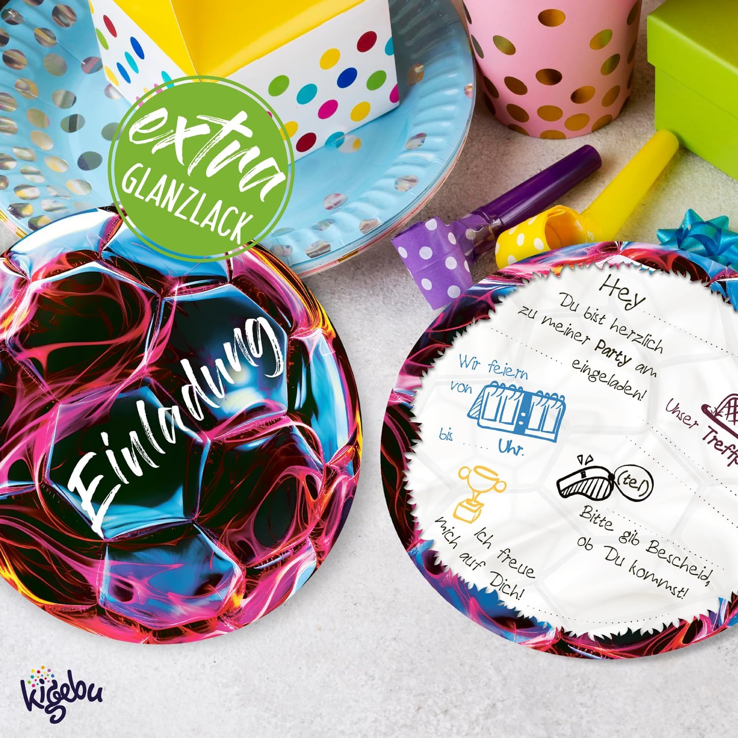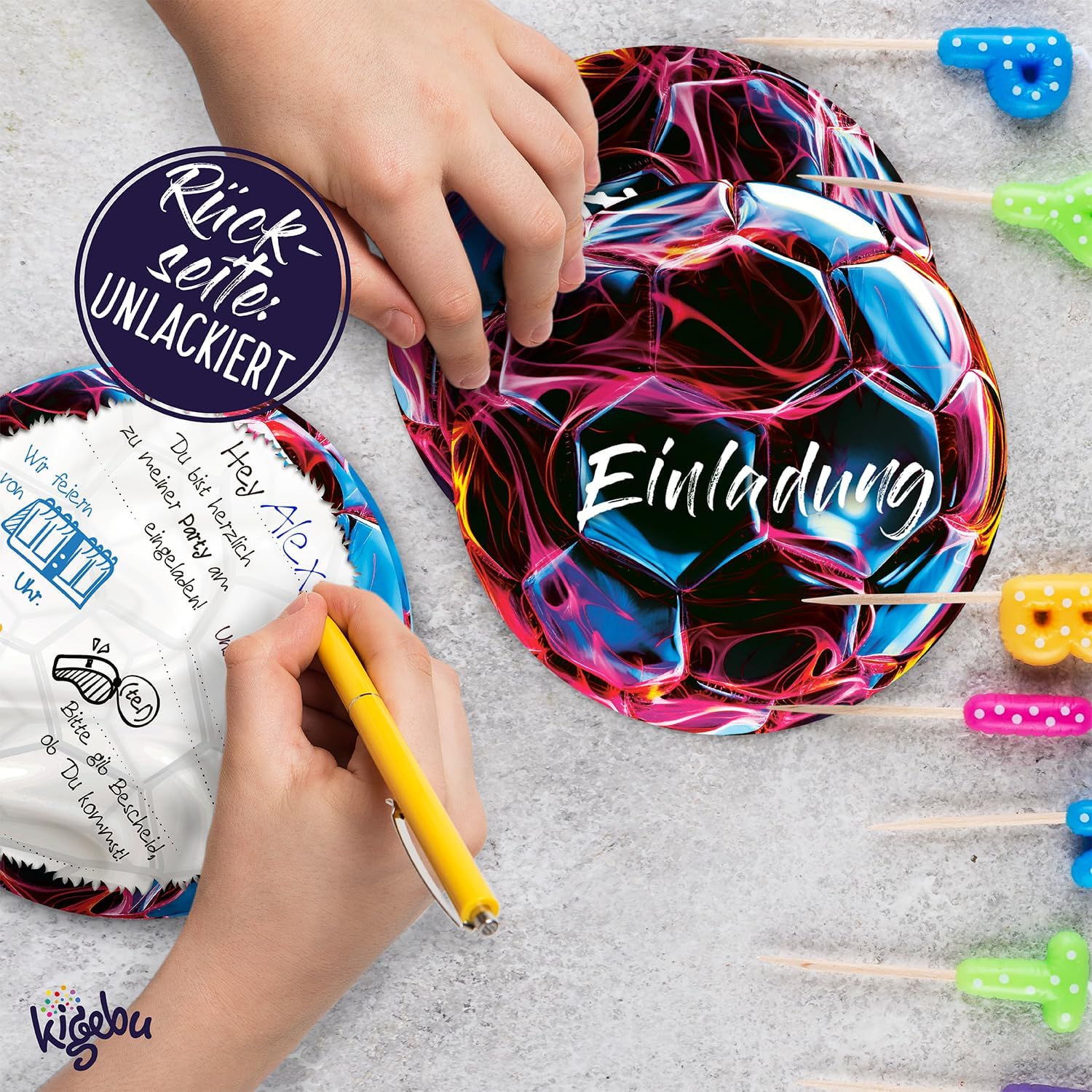 DIMENSIONI E QUANTITÀ! Gli inviti di compleanno per bambini sono rotondi e hanno un diametro di 14,8 cm. La confezione contiene 12 pezzi. Quindi la festa di compleanno può anche essere più grande. Utilizzo: Gli inviti sono destinati a essere distribuiti ai bambini. Sul retro, tutte le informazioni sulla celebrazione del compleanno possono essere ulteriormente fornite ai bambini e ai loro genitori. Motivo! Il motivo è appositamente progettato per tutte le ragazze e ragazzi appassionati di calcio. Sulla parte anteriore scrivi chi è invitato, quindi non hai bisogno di una busta. Sul retro si trova il testo dell'invito, che può essere compilato con qualsiasi penna comune anche dal bambino. Alta qualità. I biglietti di compleanno sono realizzati con carta da 300 g/m³. La parte anteriore è rivestita opaca. Questo assicura che gli inviti resistano anche a diverse mani dei bambini. Ecologico. I nostri biglietti di invito vengono commissionati esclusivamente da tipografie con produzione ecologica. Il biglietto di invito di compleanno è stampato in Germania.