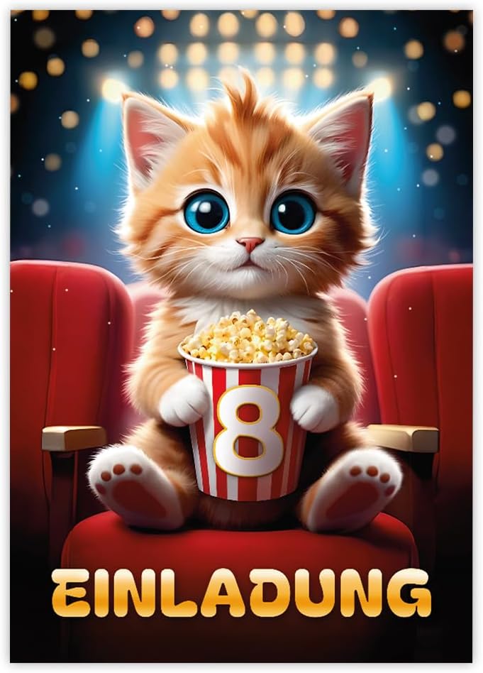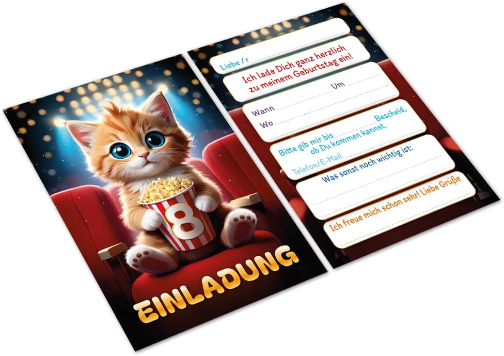 12 biglietti di invito per l'8° compleanno dei bambini, ragazzi e ragazze, cinema, fantastici inviti colorati per l'ottavo compleanno, per bambini, feste di compleanno cinema