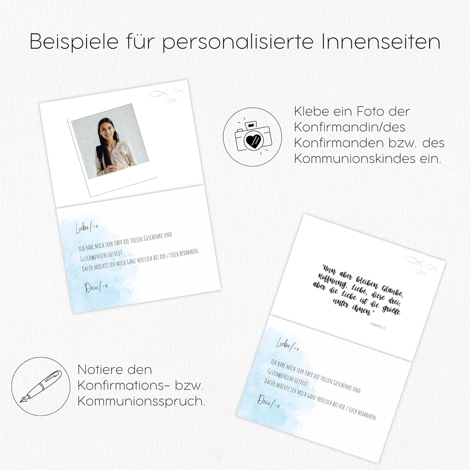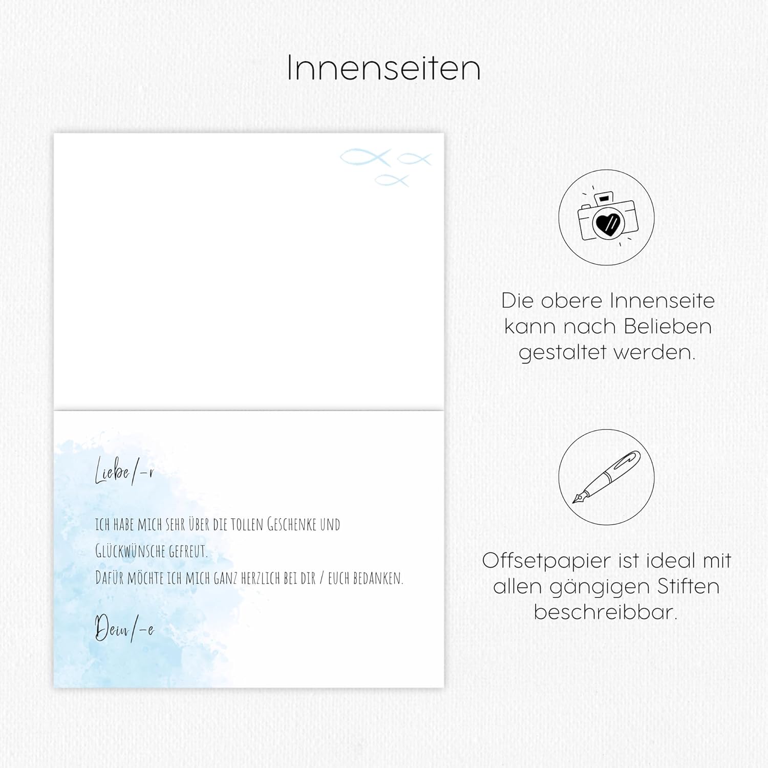 ✒ PROGETTAZIONE VELOCE grazie al testo già scritto e allo spazio per la progettazione individuale. 🍃 STAMPA DI ALTA QUALITÀ E CLIMA NEUTRO: le carte sono prodotte in Germania e sono realizzate in cartone extra resistente da 300 g. Le carte possono essere scritte con tutte le penne più comuni. 💌 IL FORMATO PERFETTO: biglietti di ringraziamento a 4 facciate in formato DIN A6 (14,8 x 10,5 cm). Riceverai anche buste abbinate, così le tue carte rimangono protette e possono anche essere spedite. 📦 AMBITO DI CONSEGNA: 12 biglietti di ringraziamento + 12 buste abbinate