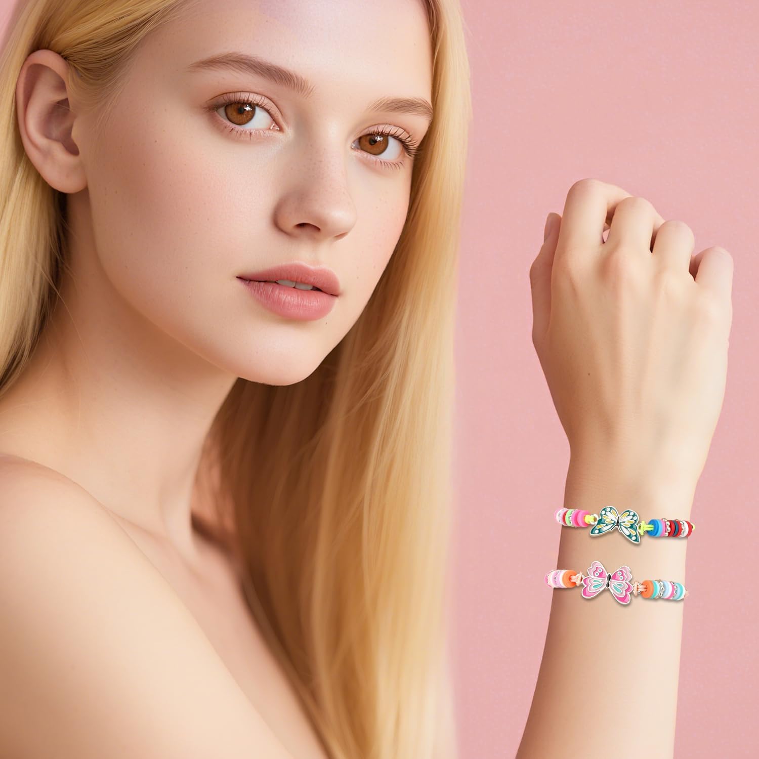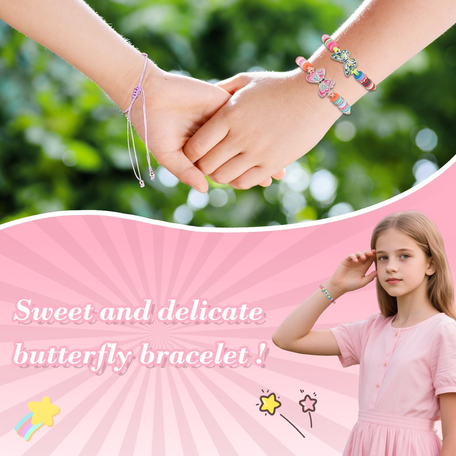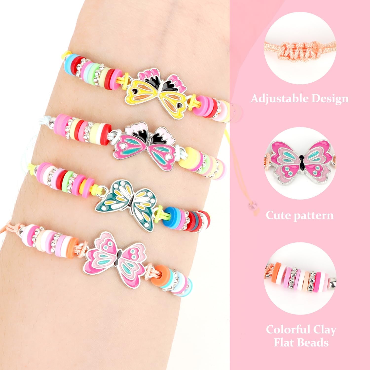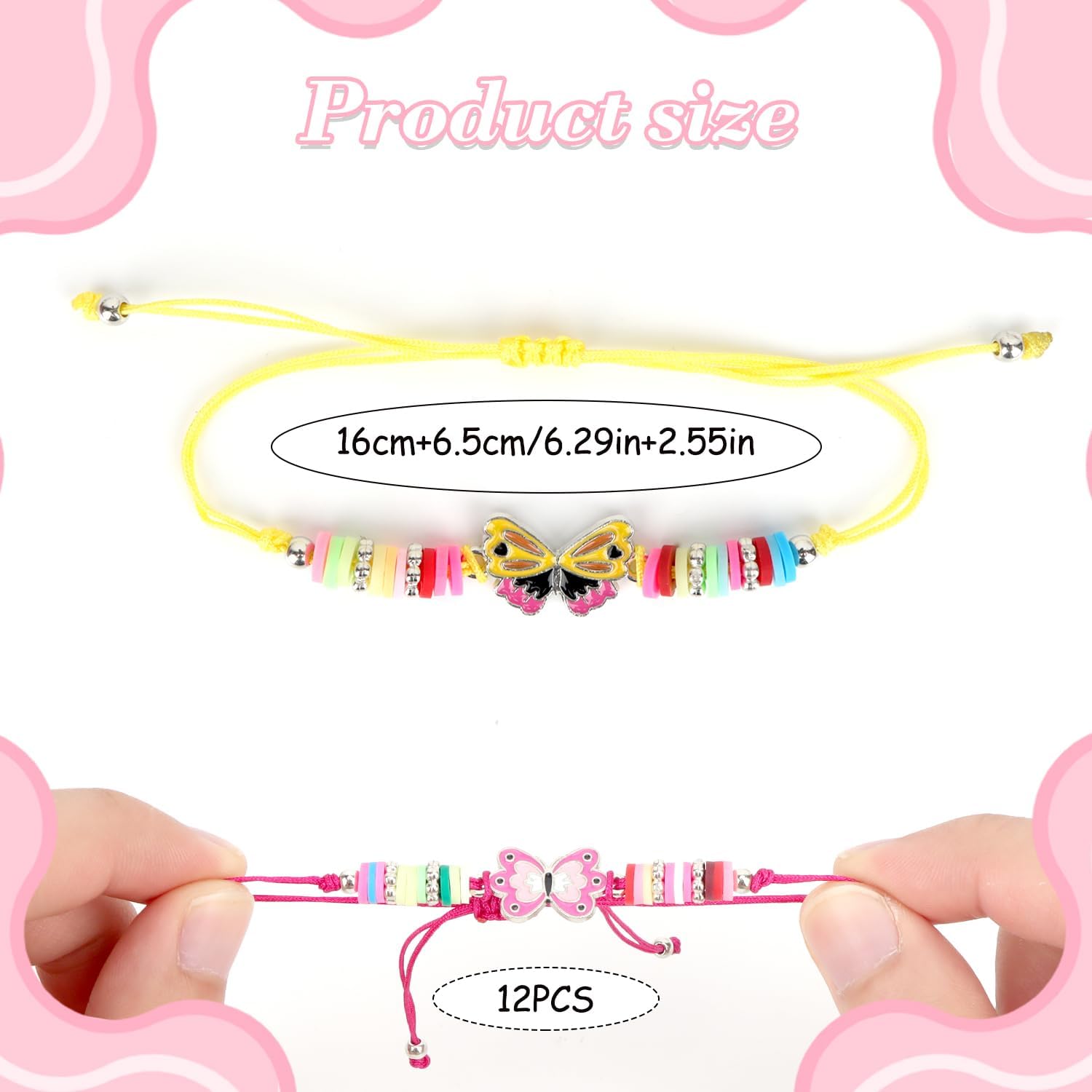 Descrizione prodotto Immergiti in un mondo pieno di colori e ali con il nostro set di 12 bracciali per bambine! Questo set di bracciali per bambini unisce design a farfalla con perline colorate, in modo che ogni bracciale da ragazza sia un'opera d'arte unica, perfetto per scambiare braccialetti di amicizia o come timbro di stile personale. Grazie al design del bracciale regolabile, i braccialetti si adattano in modo flessibile ai polsi dei bambini e dei ragazzi (16 cm + 6,5 cm di estensione), comodi per la scuola, il gioco o i momenti di festa. Questi braccialetti colorati sono ideali come regalo per feste o per feste di compleanno. Un braccialetto colorato: 12 diversi motivi garantiscono varietà, ideali per feste o piccole sorprese in cerchie di amici. Realizzato in materiale plastico sicuro e adatto ai bambini (senza odori sgradevoli), resiste anche alle avventure selvatiche e non perde mai la sua luminosità. Regalo per bambini che fa sciogliere il cuore, sia come regalo di amicizia tra ragazze o come regalo per ragazze con amore per i dettagli. Sia per gli appassionati di gioielli o come primo tesoro di gioielli, questo set combina divertimento, colore e amicizia in modo affascinante. Un must per ogni selezione di gioielli e un compagno fedele per le piccole avventuriere Avviso di sicurezza Contiene piccole parti che possono essere ingerite – rischio di soffocamento. Non adatto a bambini di età inferiore a 3 anni. Utilizzare il prodotto sotto la supervisione di un adulto per evitare grovigli o ingestione. In caso di parti danneggiate (ad es. ad esempio perline sciolte o corde strappate) immediatamente non riutilizzare.