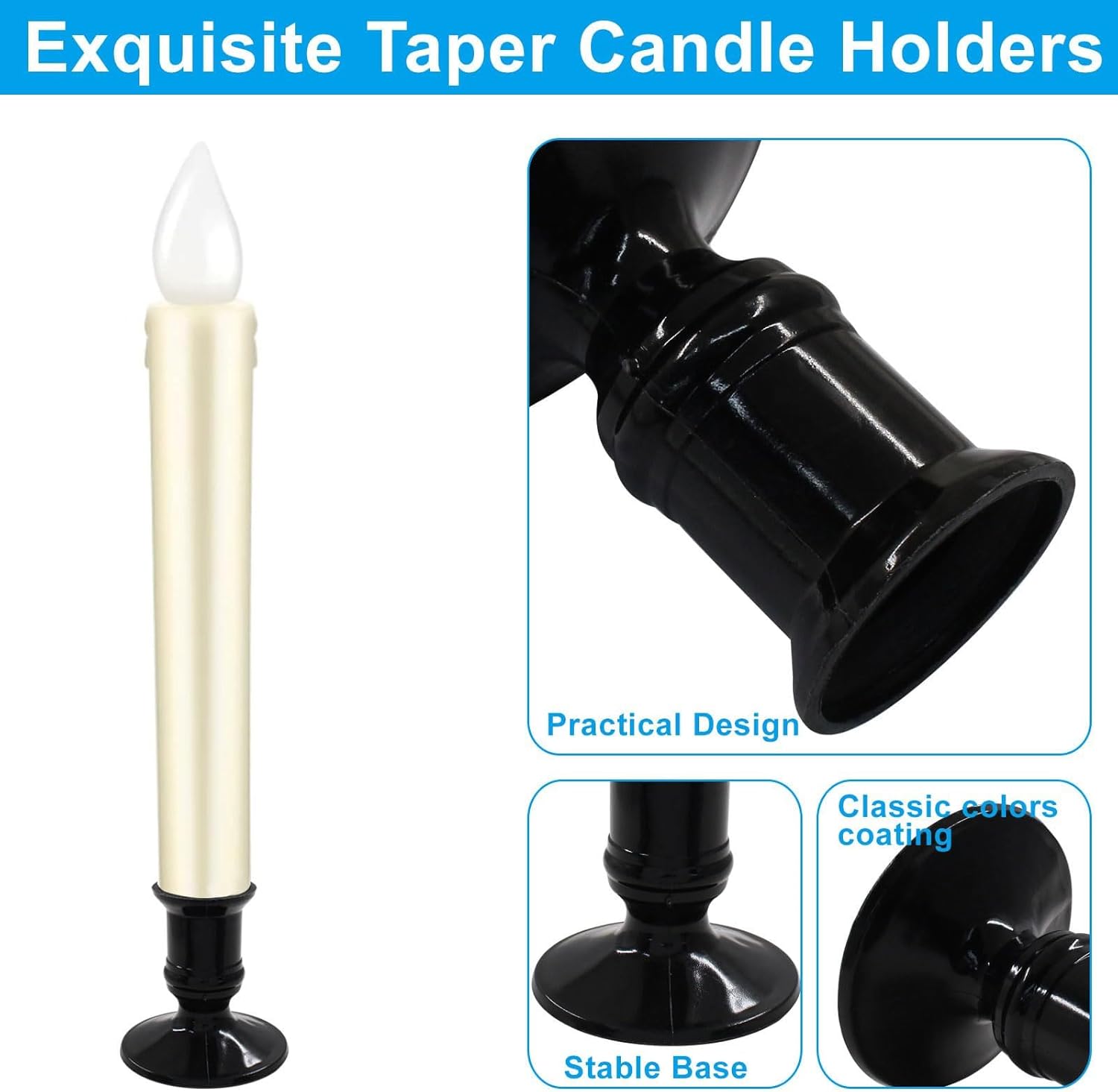 Migliora i tuoi decori con i titolari candele a cono progetta appositamente per candela a LED senza fiamma per creare ambiance elegante e in qualsiasi ambiente Ottimo per proprietario abitazione più esigenti, interior e organizzatori eventi che cercano elevare loro spazio con sofisticati candelabri decorativi Craft from qualità in plastica, questi titolari candele vantano finitura nera che vari stili interni garantendo a lungo senza arrugginitura Ottimo per arrangiamenti da tavolo da pranzo, le decorazioni per matrimoni, celebrazione delle feste e le cene romantiche, questi titolari aggiungono tocco eleganza a ogni occasione Con progetti base stabili, questi titolari candele forniscono ottimo supporto per tua candela a LED, aggiunta multiuso alla collezione decori domestici