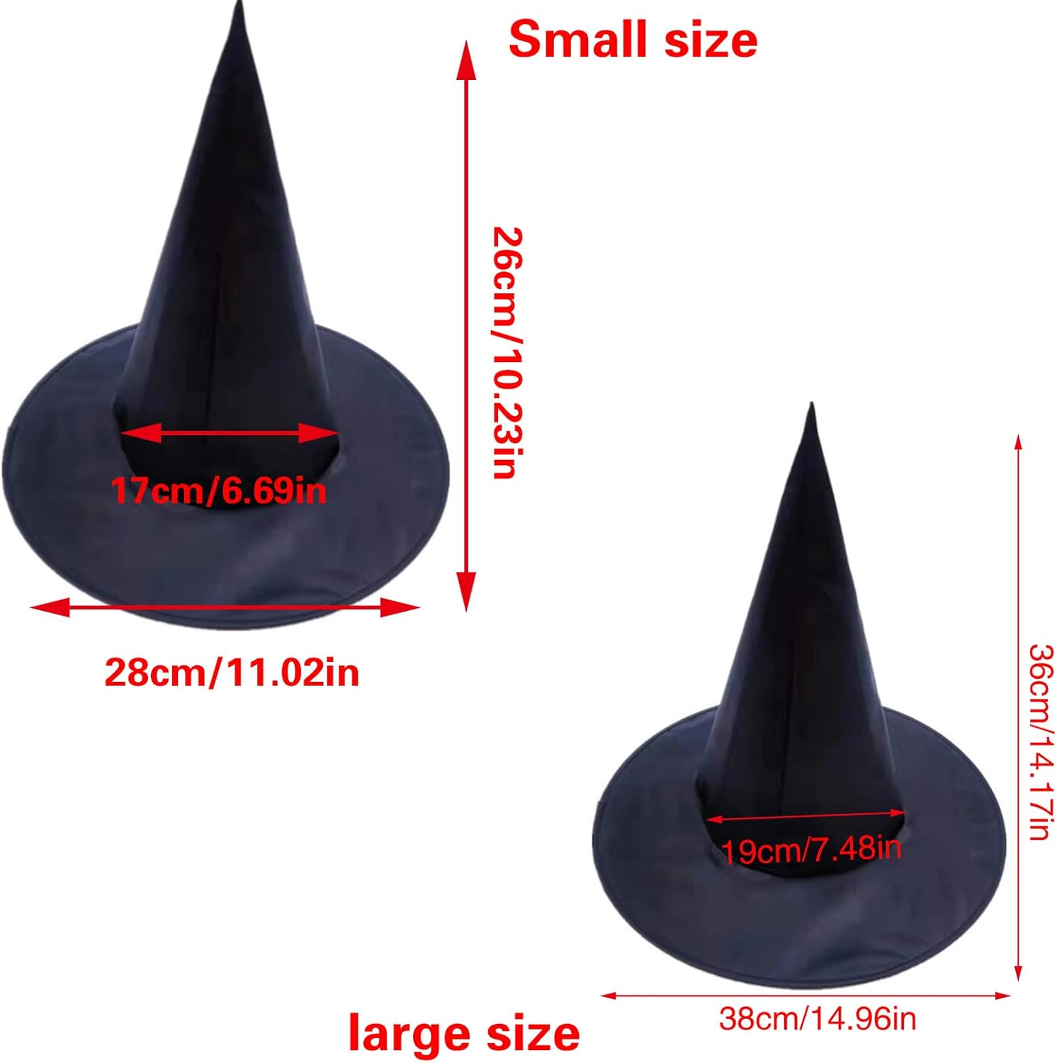 12 cappelli da strega di Halloween con corda da appendere da 30,9 m per donne, cappello da strega, costume da strega, cappello per feste di Halloween Caratteristiche: Questo cappello da strega di Halloween con tessuto, leggero, morbido e comodo da indossare, e può tenerlo a lungo. Molto buono in grado di resistere alla prova di vento e pioggia. Questo cappello da strega è adatto per Halloween, feste cosplay, feste in costume, feste a tema e altre occasioni. È possibile ruotare il cappello per rendere il cappello piccolo e piegarlo per risparmiare spazio e riporre e trasportare. Cappello da strega piegato durante la spedizione, è necessario aprire e le tesa del cappello si apriranno e otterrai un bel cappello da strega. Usa le nostre decorazioni di Halloween per cappello da strega, rendi il tuo cappello da strega unico con questo cappello, rendendolo asetico. Specifiche tecniche: Colore: nero. Componente: Panno Lunghezza della corda: circa 32 metri. Misura piccola: circa 27 x 28 cm. Dimensioni grandi: circa 36 x 38 cm. Peso: circa 26-312 g. La confezione include: Opzione pacchetto Pacchetto 1: 1 cappello da strega per Halloween. Pacchetto 1: 1 cappello da strega per Halloween. Pacchetto 1: 12 pezzi cappello da strega di Halloween con corda appesa Nota: Si prega di considerare un margine di errore di 0-1 cm a causa della misurazione manuale. 2. L'immagine potrebbe non rispecchiare il colore reale a causa delle diverse impostazioni dei monitor