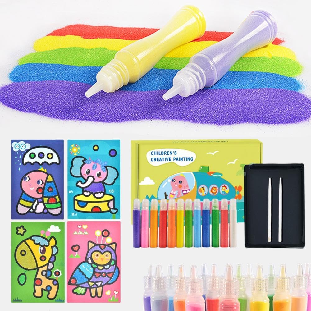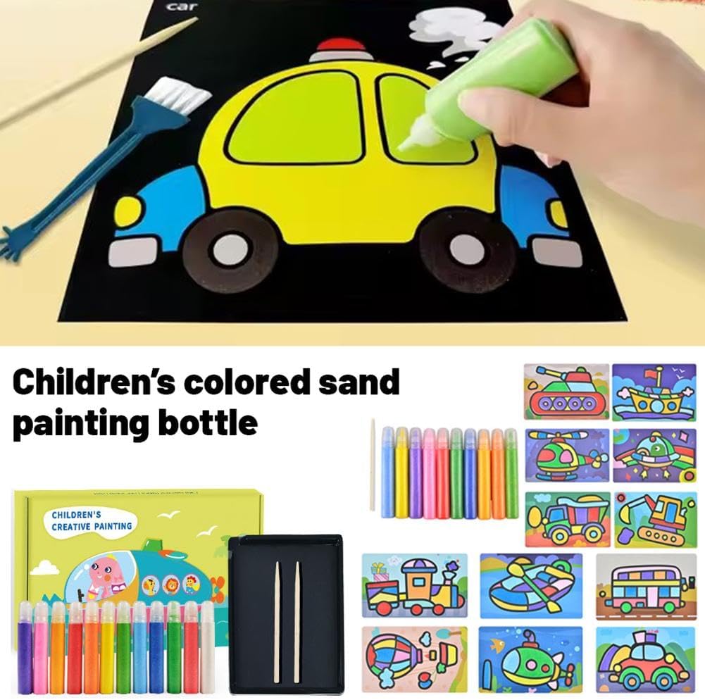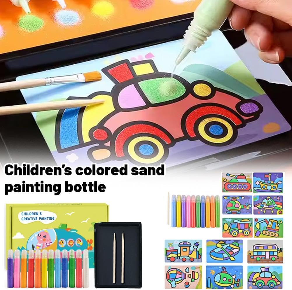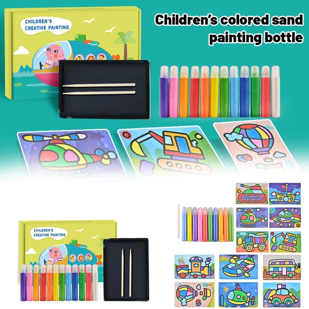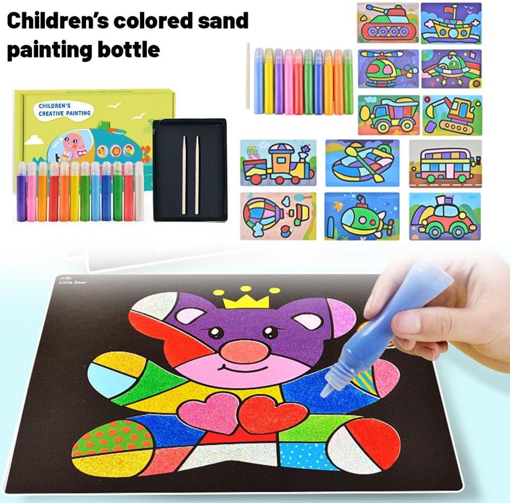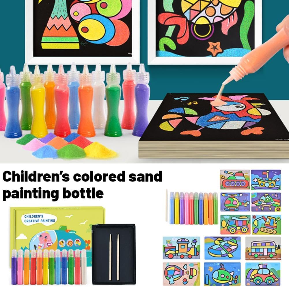 Ispira la creatività: con una varietà di sabbia colorata, i bambini possono mescolare e abbinare liberamente i colori per creare opere d'arte uniche. Questo processo creativo aperto favorisce l'immaginazione e migliora l'espressione artistica. Materiali ecologici: realizzato con materiali ecologici, questo kit di pittura con sabbia per bambini garantisce un'esperienza di artigianato sicura per i bambini. Ogni colore di sabbia è stato sottoposto a rigorosi test di sicurezza, dando ai genitori tranquillità. Migliora la coordinazione occhio-mano: la creazione di dipinti con sabbia richiede movimenti precisi della mano per diffondere e controllare la sabbia, aiutando i bambini a sviluppare le capacità motorie fini e migliorare significativamente la coordinazione occhio-mano. Facili da usare e pulire: progettate per essere comode, le bottiglie di sabbia sono facili da riporre e utilizzare. Una leggera agitazione distribuisce la sabbia in modo uniforme e le piastre di base adesive rendono la sabbia in eccesso facile da rimuovere, semplificando la pulizia. Promuove l'interazione genitore-figlio: la pittura con sabbia non è solo un'attività da solista per i bambini, è una meravigliosa opportunità per il legame familiare. Genitori e figli possono lavorare insieme, promuovendo connessioni emotive e condividendo momenti gioiosi.