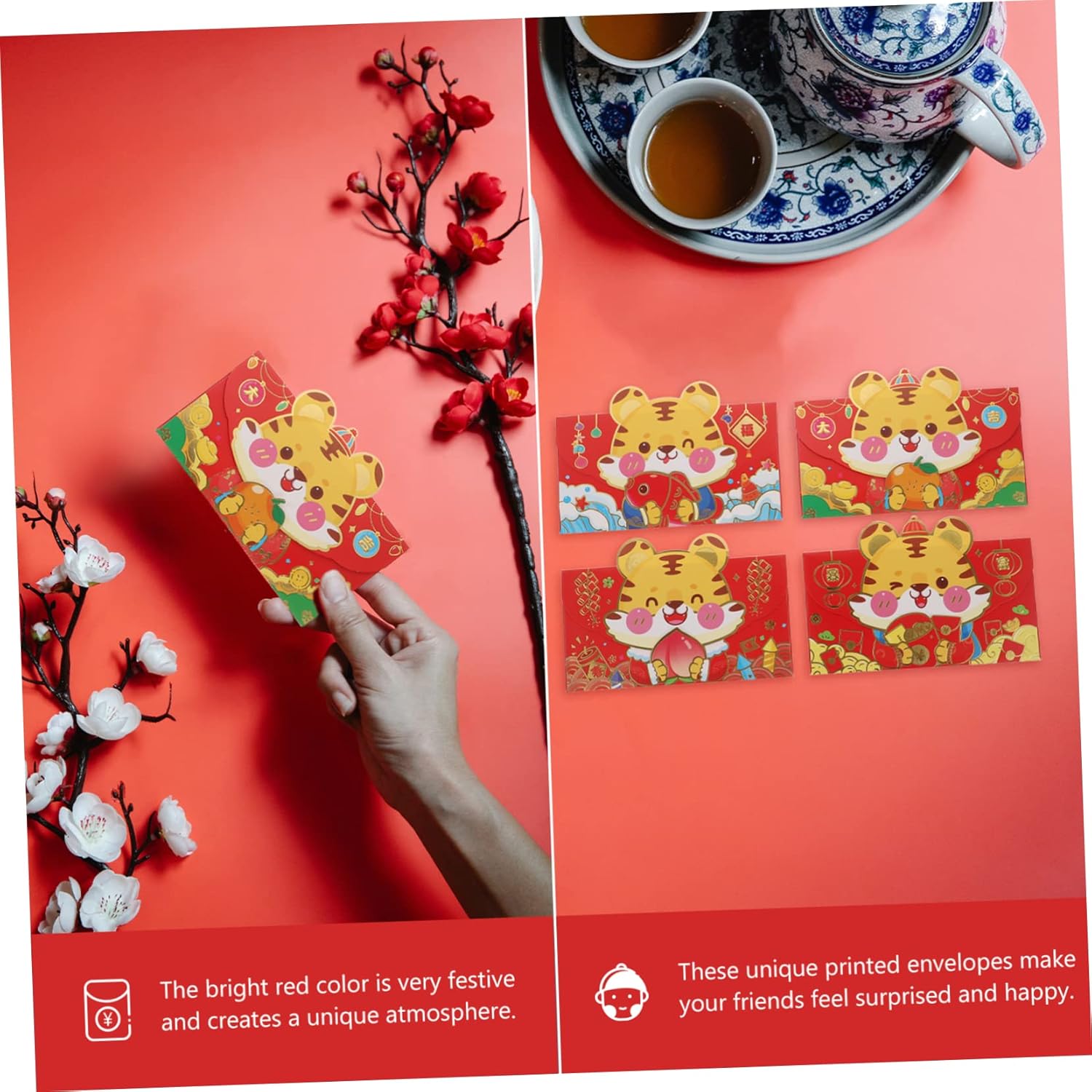 Borsa rossa in stile cinese, realizzata in materiale cartaceo con lavorazione squisita e raffinata, pacchetti rossi per il anno Busta rossa per il anno: grazioso motivo a cartoni animati, creativo e delicato, pieno di atmosfera di capodanno, pacchetto cerimoniale Pacchetti in rosso: buste con un delicato motivo unico che eredita la cultura tradizionale cinese, busta rossa creativa Tasca rossa - è dotata di caratteri cinesi di buon auspicio e motivi di cartoni animati per aggiungere un'atmosfera festosa, tasca rossa tradizionale Cartone animato hongbao - fatto di carta, robusto e non facile da rompere, con superfici lisce, pacchetto di soldi