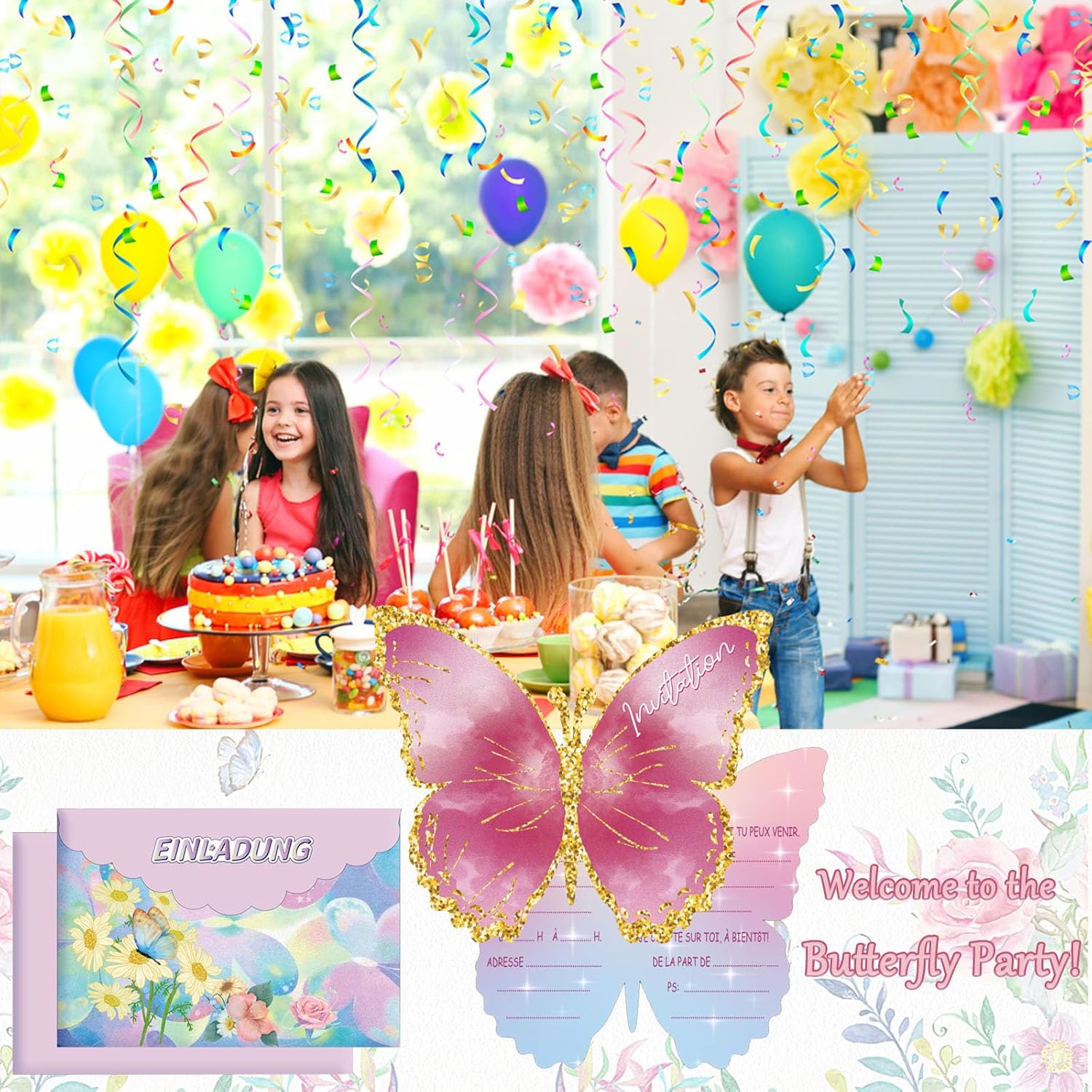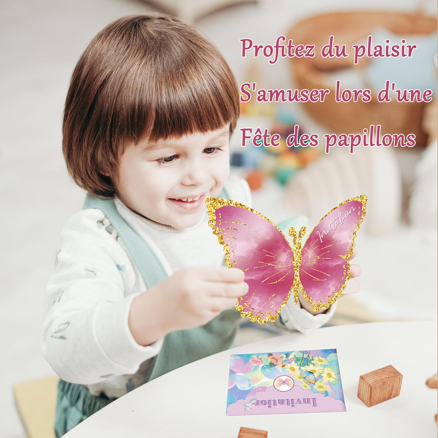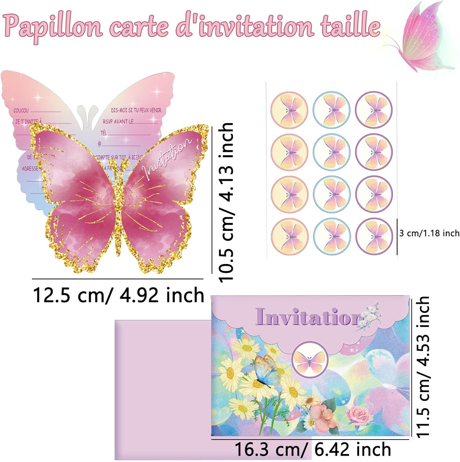 Set di biglietti d'invito a farfalla 12 biglietti d'invito a farfalla, 12 buste d'invito a farfalla, 12 adesivi per sigilli a farfalla Biglietti d'invito 12,5 x 10,5 cm/4,92 x 4,13 pollici, buste: 16,3 x 11,5 cm/6,42 x 4,56 pollici, diametro degli adesivi: 3 cm/1,18 pollici. I biglietti d'invito a farfalla sono realizzati in carta di alta qualità, atossica e inodore, con stampa chiara e facile da scrivere. Il biglietto di invito al compleanno con farfalla è stampato su entrambi i lati, con un simpatico disegno di farfalla sul fronte e un'area per le informazioni sul retro. È sufficiente inserire le informazioni necessarie per inviare l'invito. Gli inviti per feste a farfalla sono adatti per feste di compleanno, feste a tema, compleanni di bambini e altre occasioni.