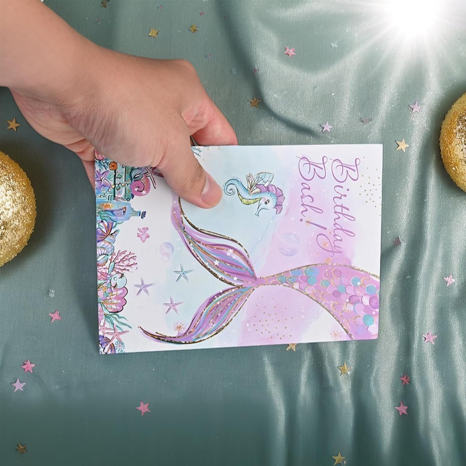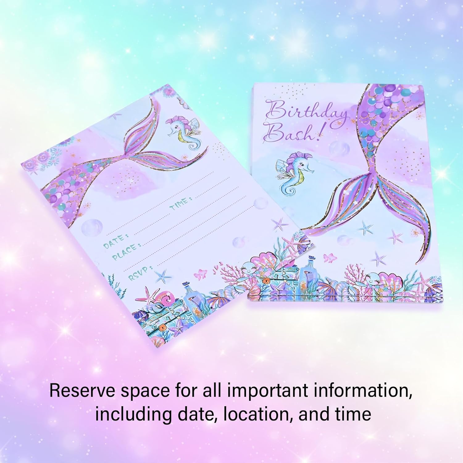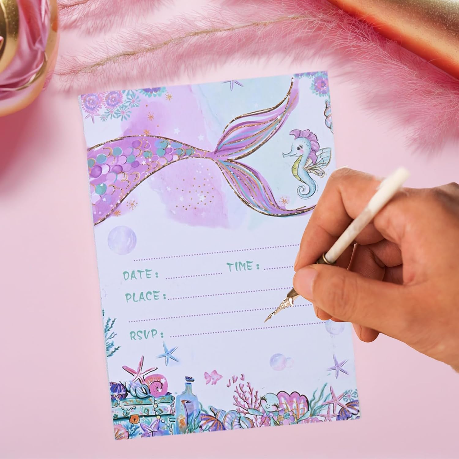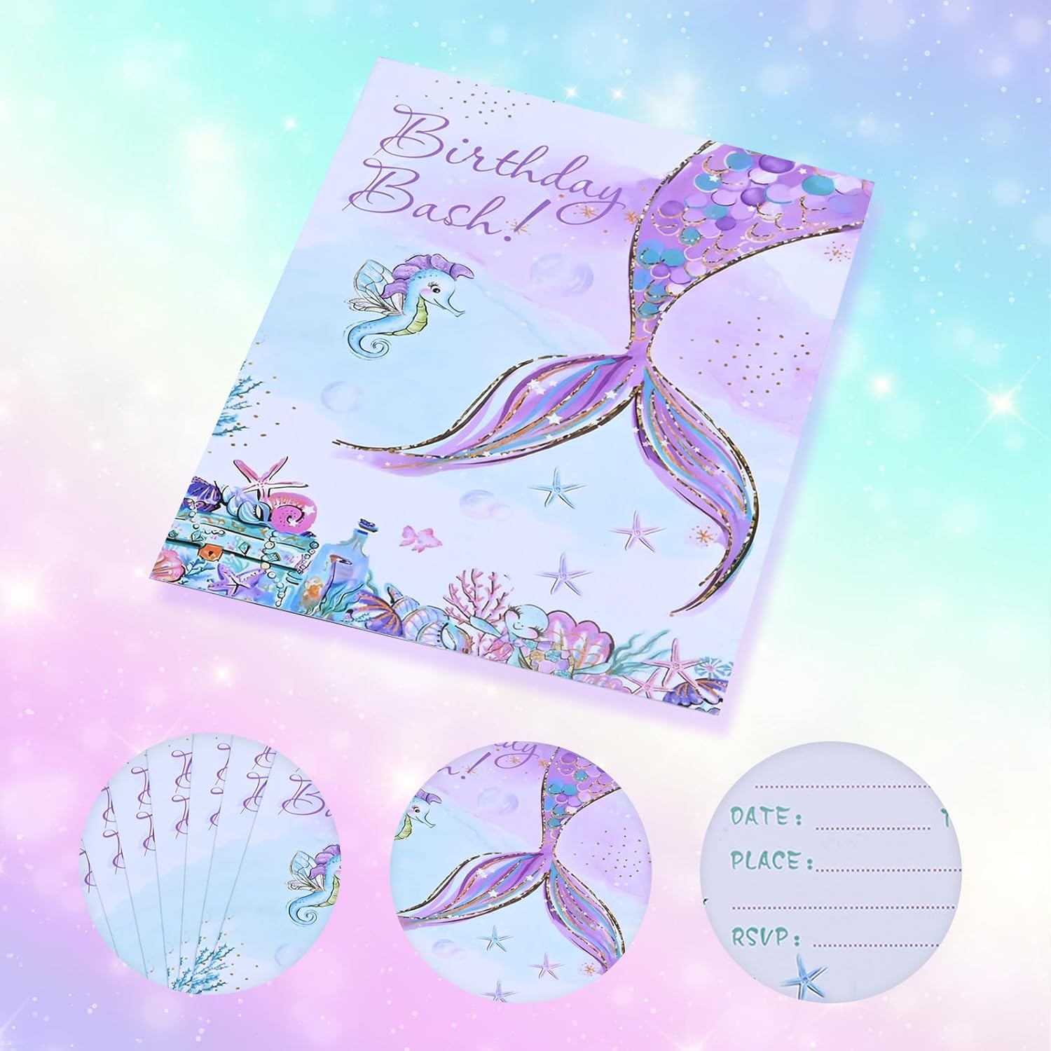 Set squisito: Contiene 12 carte di invito a tema della sirena fantasy, adottando dimensioni di cartoline Din A6 standard, stampa a doppia faccia ad alta precisione, motivi chiari e colori vivaci, portando un'esperienza visiva sognante del mondo sottomarino immersivo. Materiale di alta qualità: Ogni scheda di invito è realizzato con materiale da cartolina di alta qualità, resistente e resistente alla pressione pieghevole. Il trasporto non è soggetto a deformazioni e danni, garantendo che ogni carta di invito rimanga in uno stato bellissimo quando consegnato. Tema dei sogni: Ispirato agli elementi oceanici da sogno, alla splendida sirena coda e al paesaggio del fondo del mare si intrecciano, con colori vivaci e divertimento infantile, che possono essere applicati sia a ragazzi che a ragazze, creando in anticipo un'atmosfera misteriosa e gioiosa per le feste di compleanno. Conveniente riempimento: C'è un'area di scrittura sul retro e fornisce un prompt della colonna di riempimento (data, ora, luogo, ecc.), Che supporta la scrittura regolare di vari strumenti a penna come penne da fontane, penne di fontane, marcatori, ecc., Salvando tempo e sforzi, per consentire ai bambini o ai genitori di completare facilmente l'invito. Ampiamente applicabile: Non solo per feste di compleanno, ma anche ampiamente utilizzate nelle attività dell'asilo, incontri di compagni di classe, celebrazioni del giardino e celebrazioni di altri bambini. È una scelta ideale per trasmettere felicità e emozioni di invito, permettendo ai bambini di socializzare e trasmettere un'atmosfera felice.
