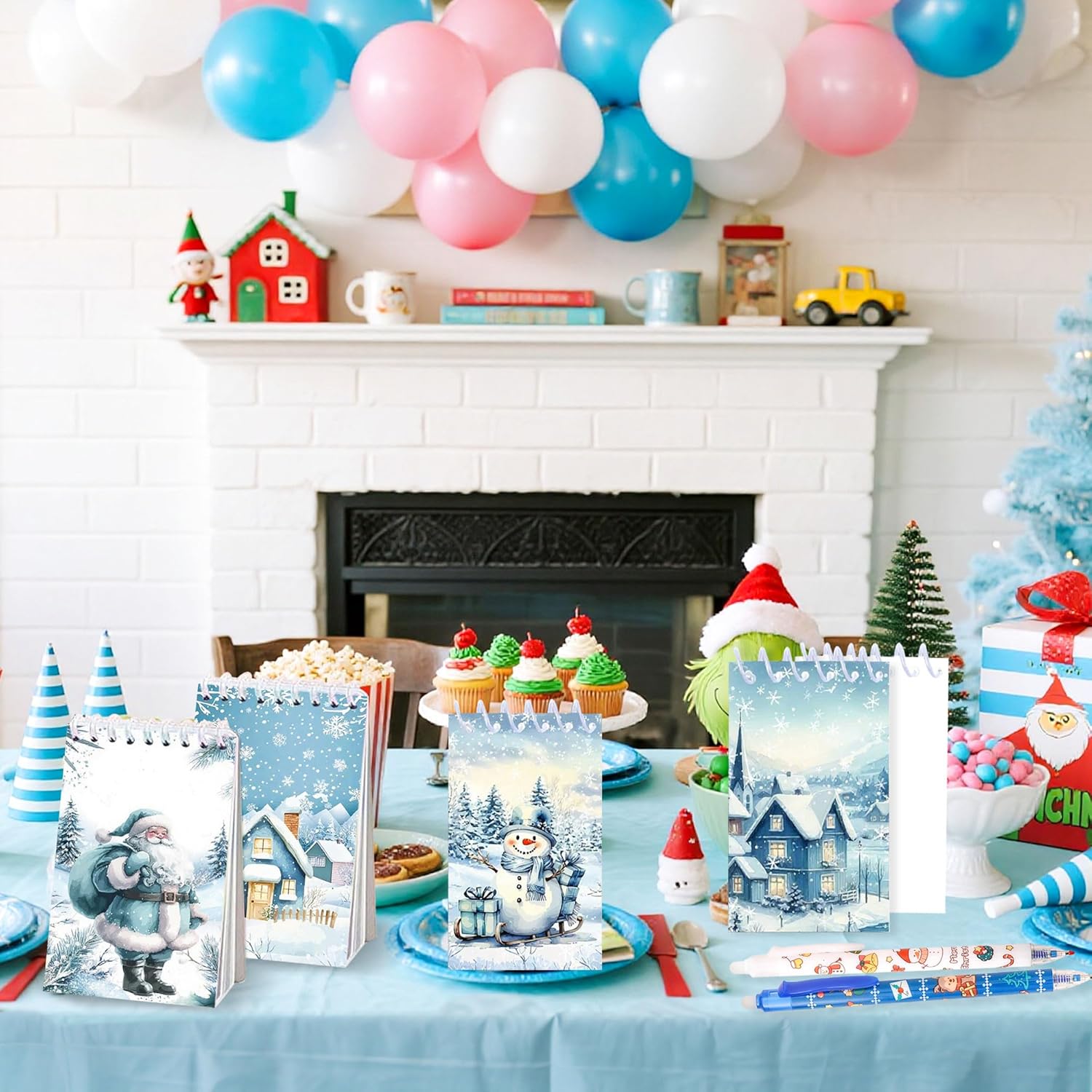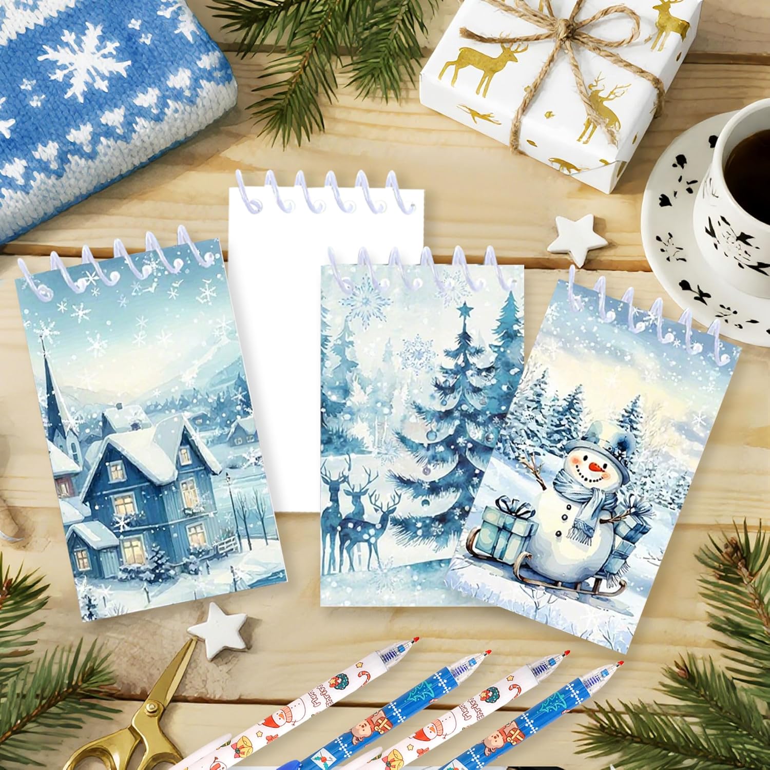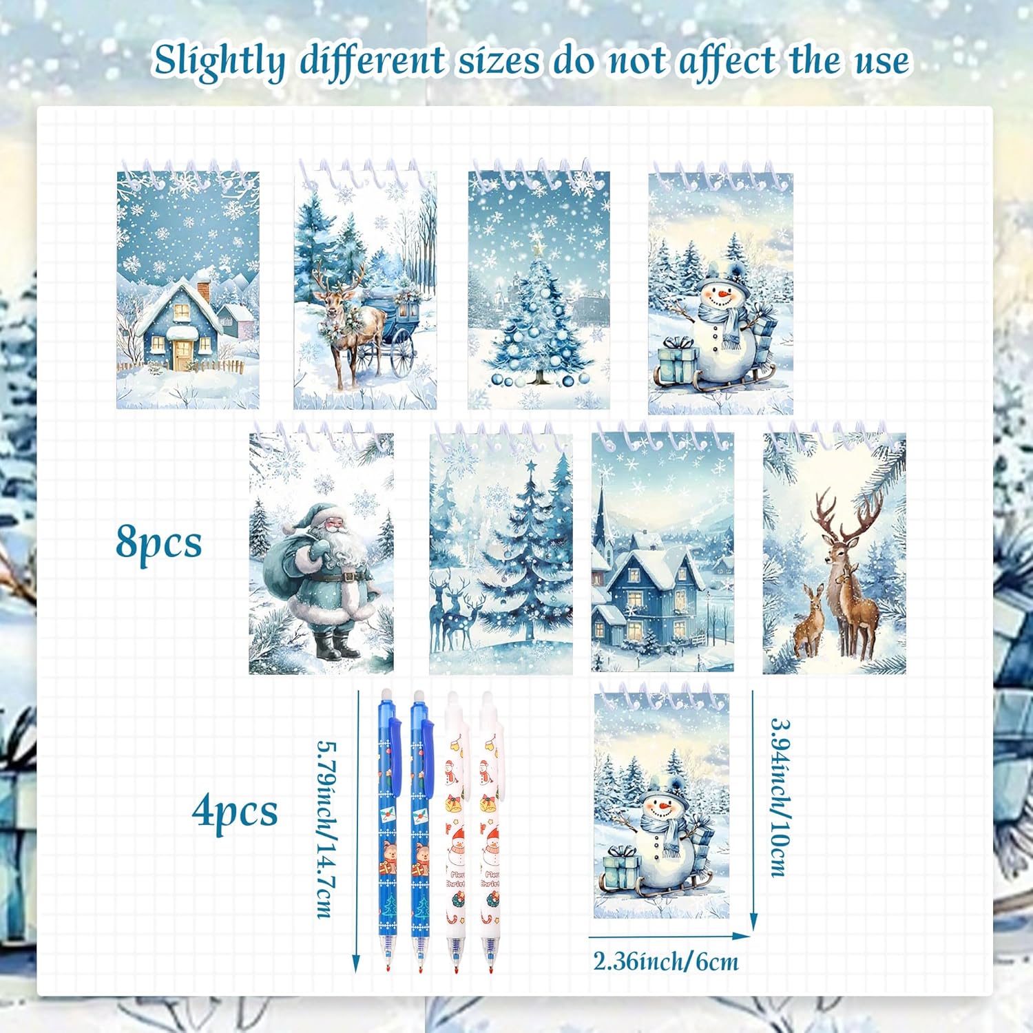 Porta un'atmosfera festiva in classe o in ufficio con questi incantevoli mini blocchi notes in 8 adorabili design natalizi con tonalità classiche blu e bianche, Il formato compatto si inserisce facilmente in calzini natalizi, sacchetti regalo o astucci, aggiungendo un fascino stagionale alla scrittura quotidiana, Riceverai 8 mini blocchi notes natalizi insieme a 4 penne a sfera, che insieme creano un set di scrittura perfetto per il periodo delle feste, Questi set sono ideali per feste di Natale, premi in classe o incentivi sul posto di lavoro, rappresentando un bel pensiero per ragazzi e ragazze, Adatto a insegnanti, organizzatori di eventi o genitori che cercano carta da lettere allegra per diffondere lo spirito natalizio